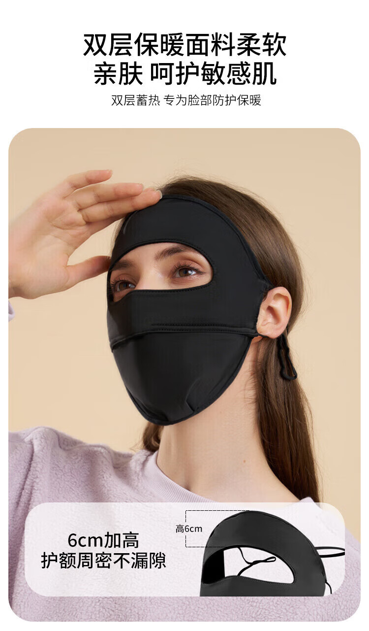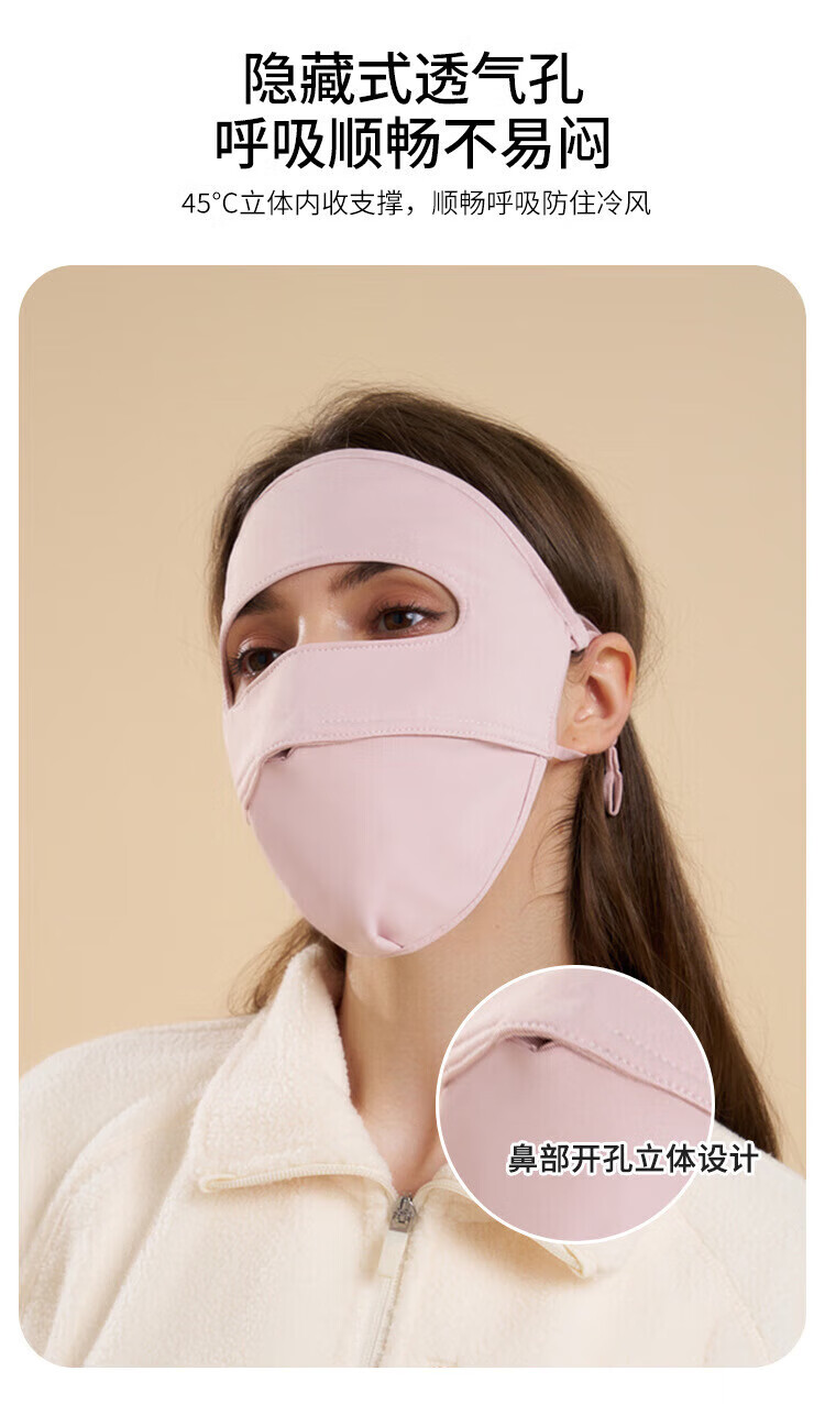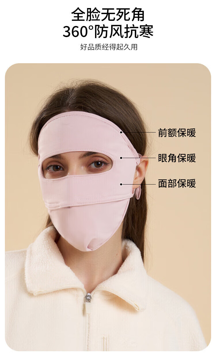 成楷科技(CK-Tech)冬季加绒保暖全脸面罩女口罩脸基尼加厚透气全脸骑车防风防寒2025 冬季加绒【粉色】