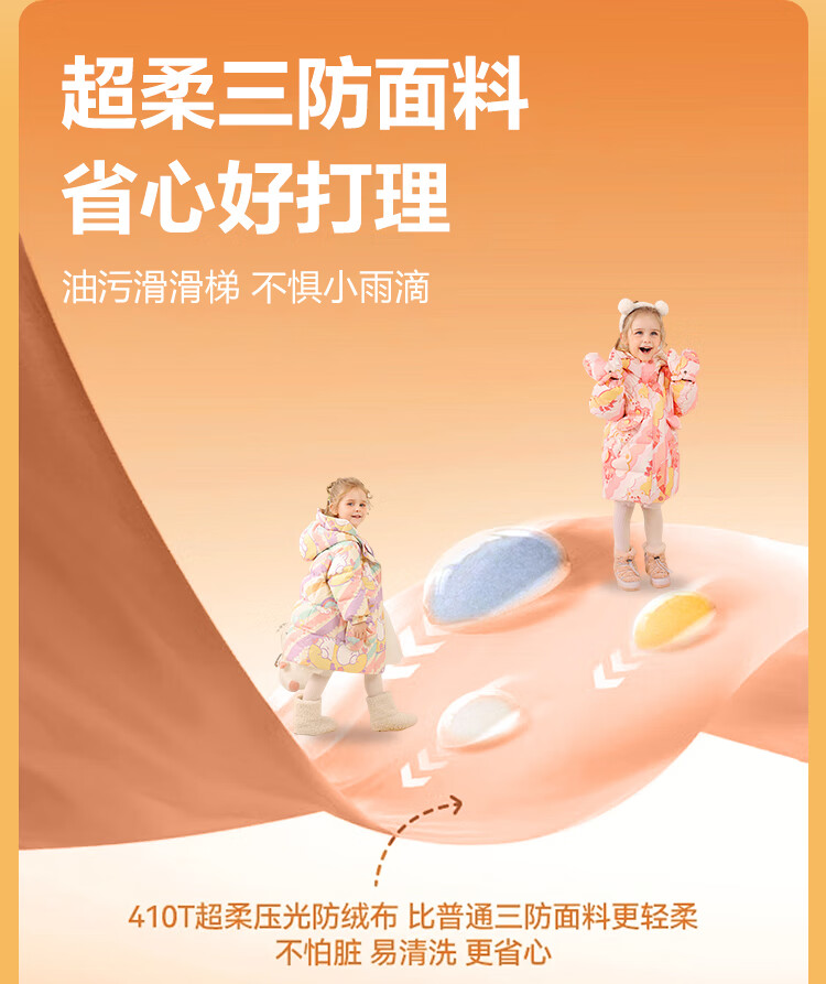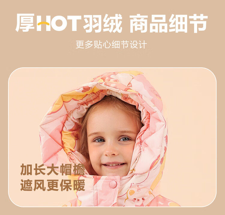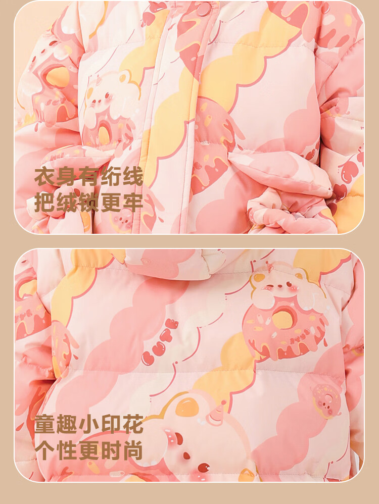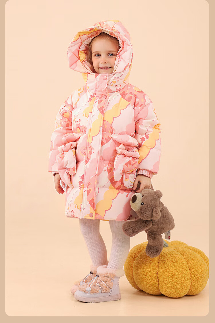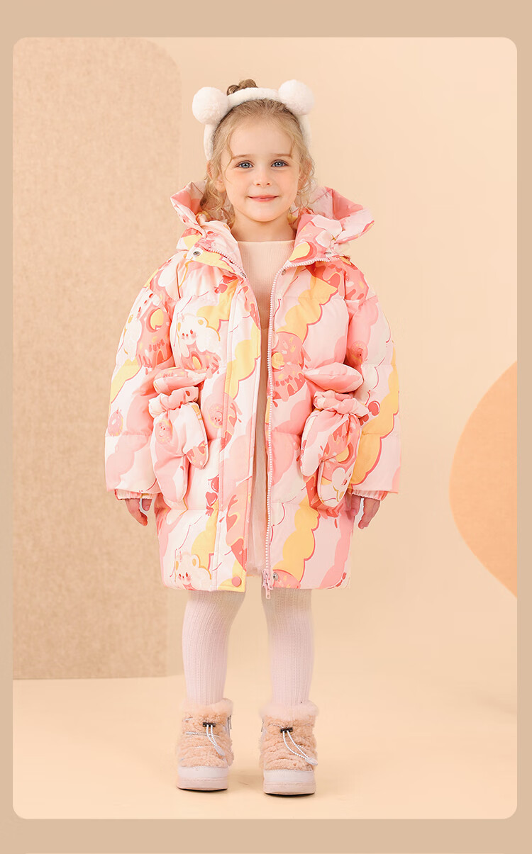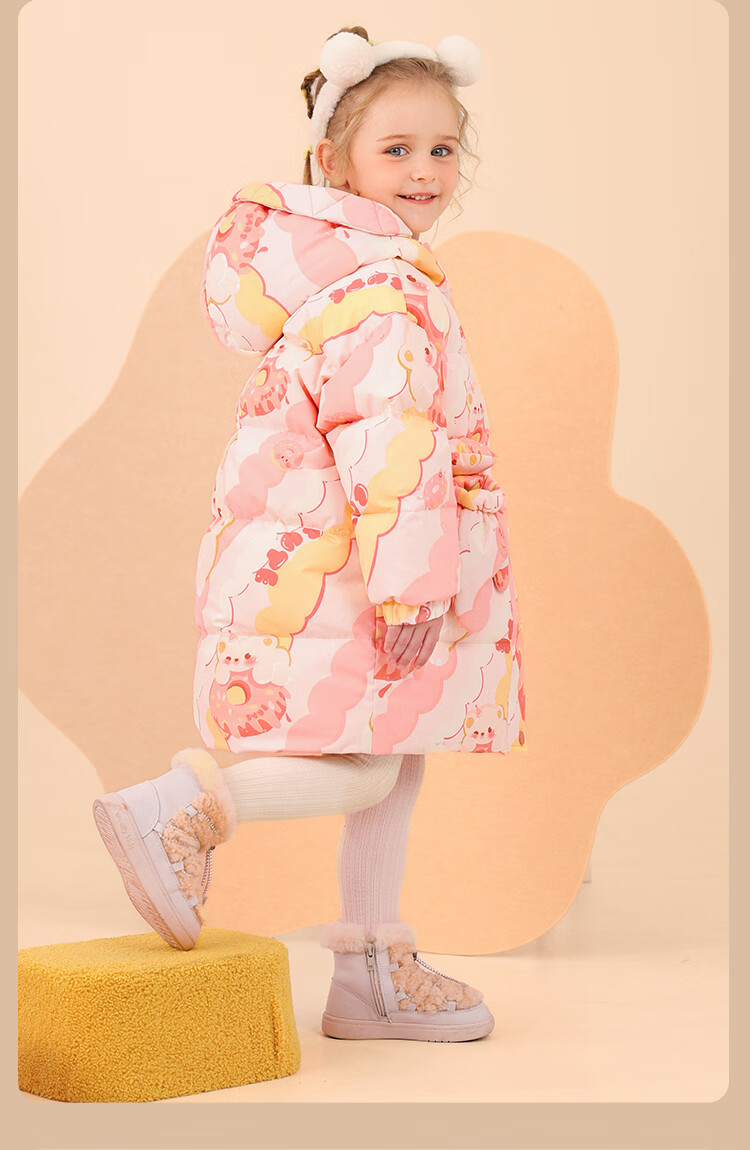 康博儿童羽绒服女童中长款冬季新款女小童宝宝可爱加厚连帽小童装外套 紫色条纹 130