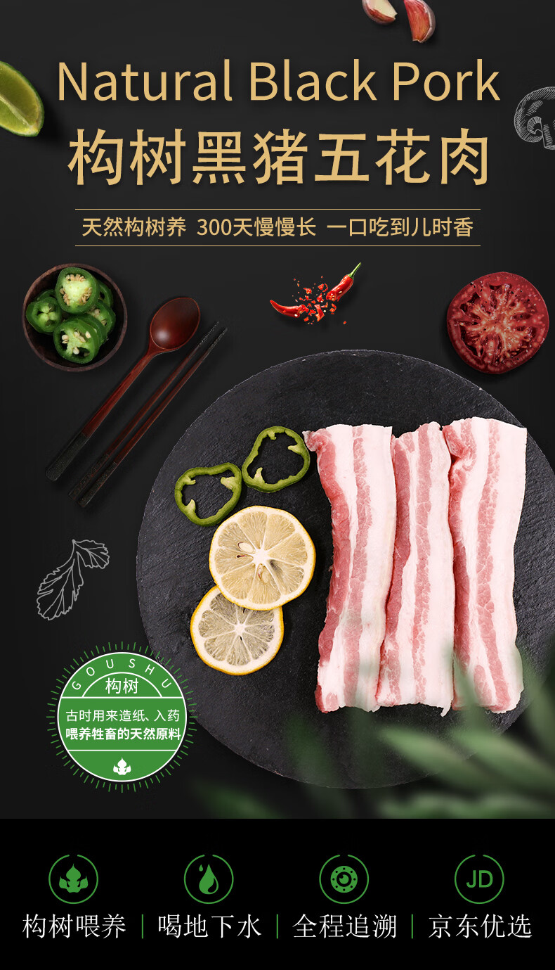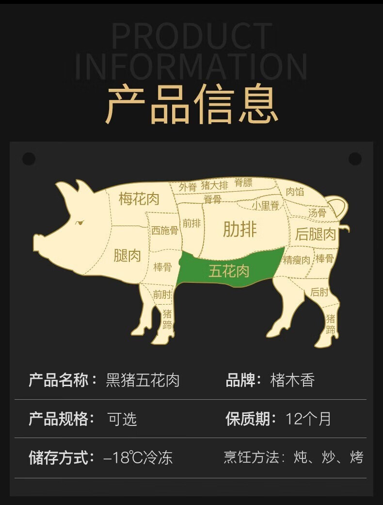 楮木香黑猪五花肉精品 国产排酸构树土猪肉 烤肉烧烤食材猪肉 生鲜 构树黑猪五花肉4斤