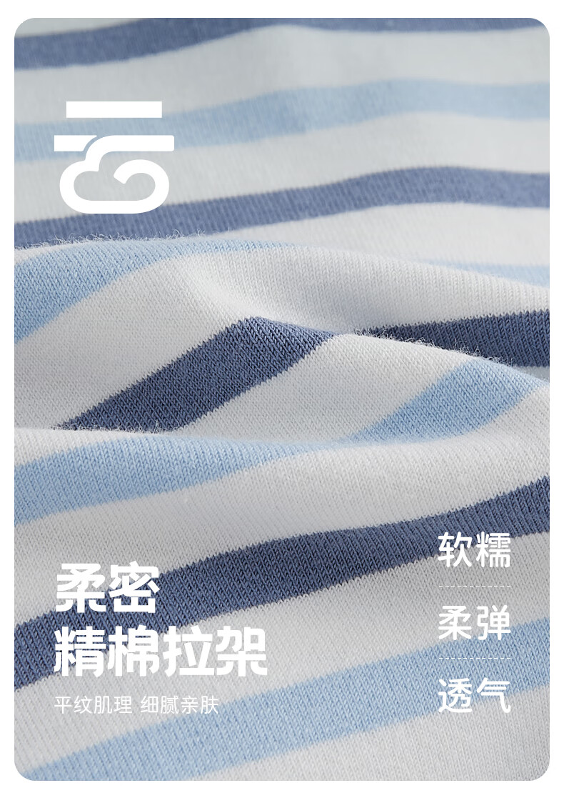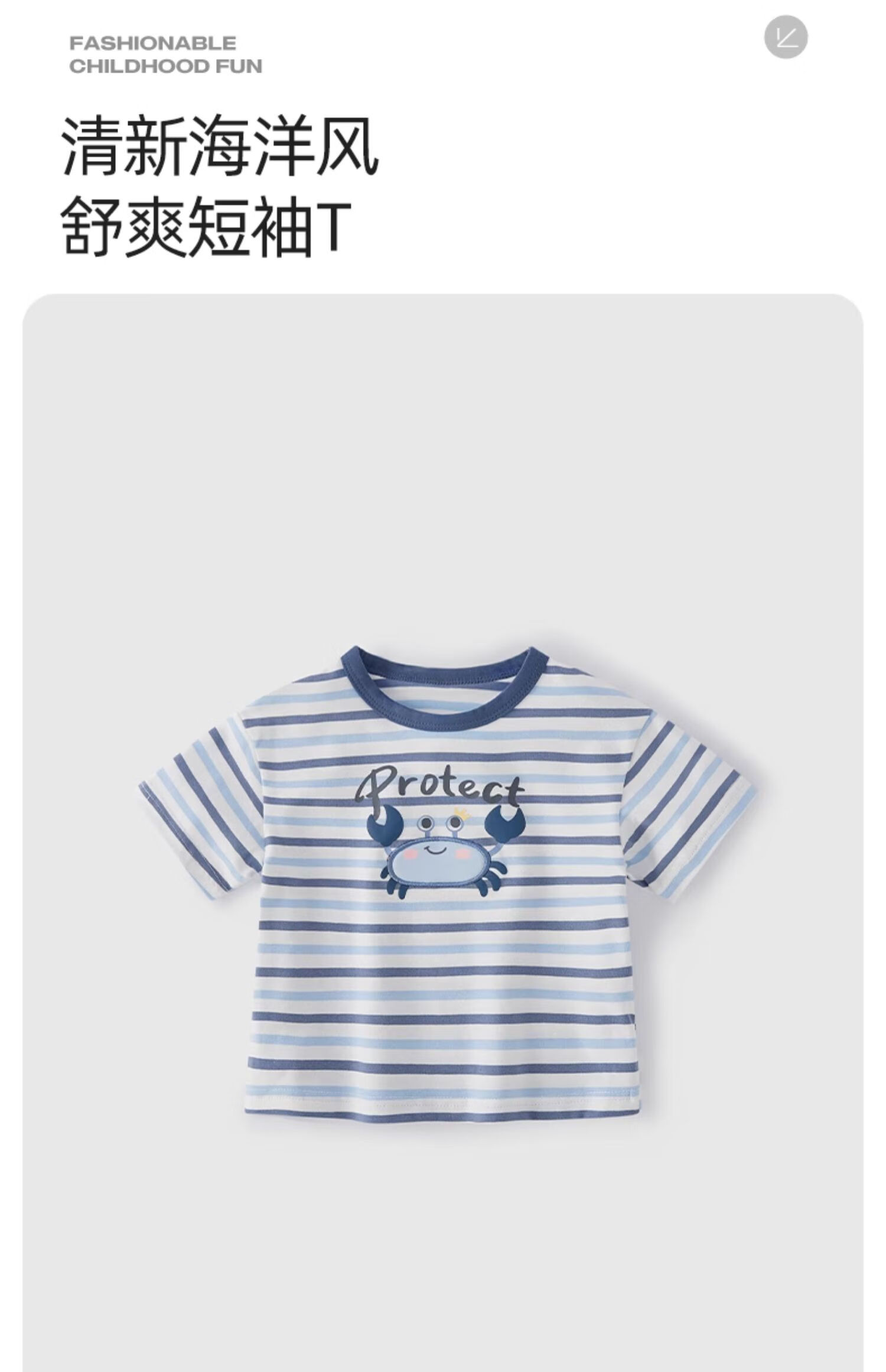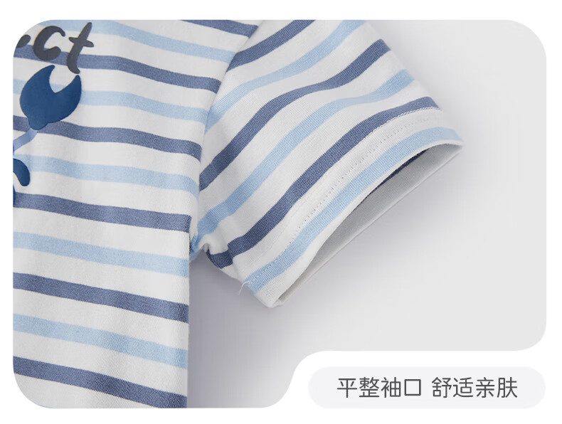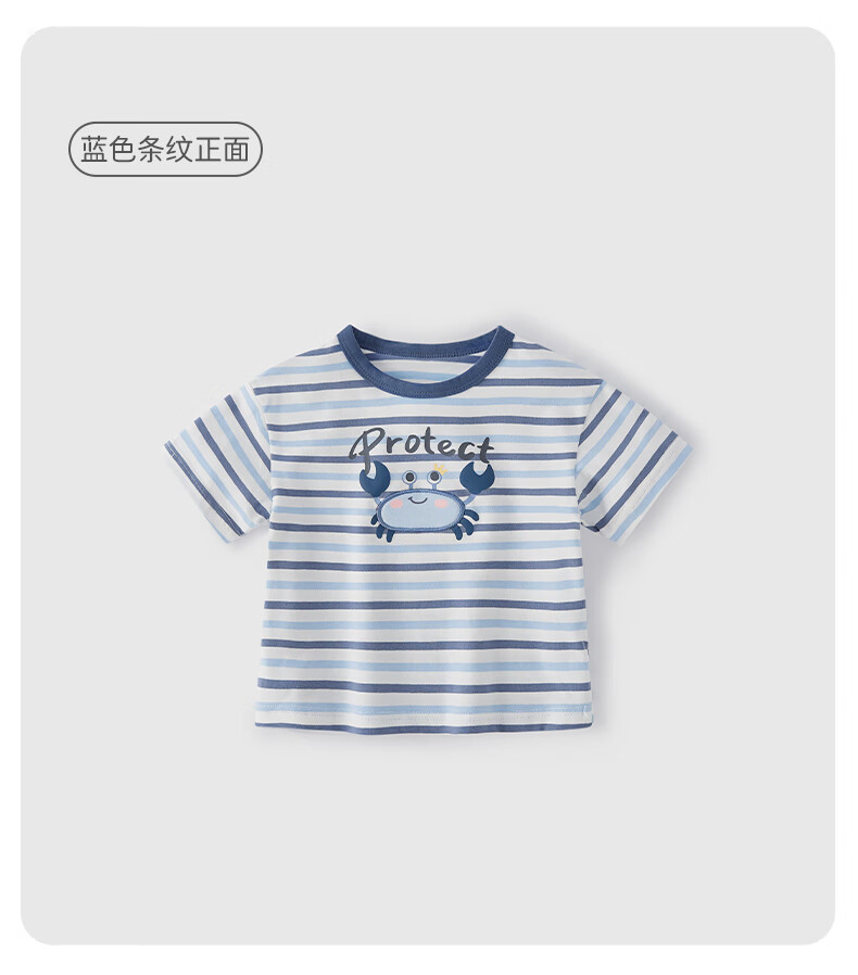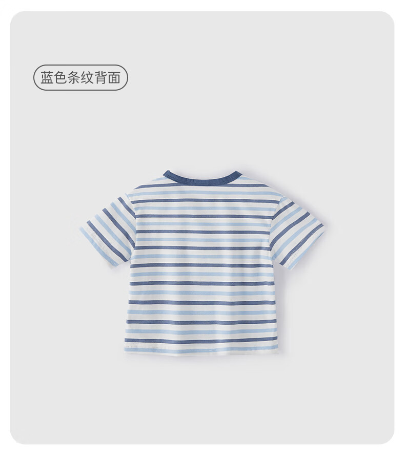 JELLYBABY[7A抗菌]男童短袖t恤新款宝宝夏季条纹上衣小童可爱夏装儿童衣服 蓝色条纹 【7A抗菌】 120 CM