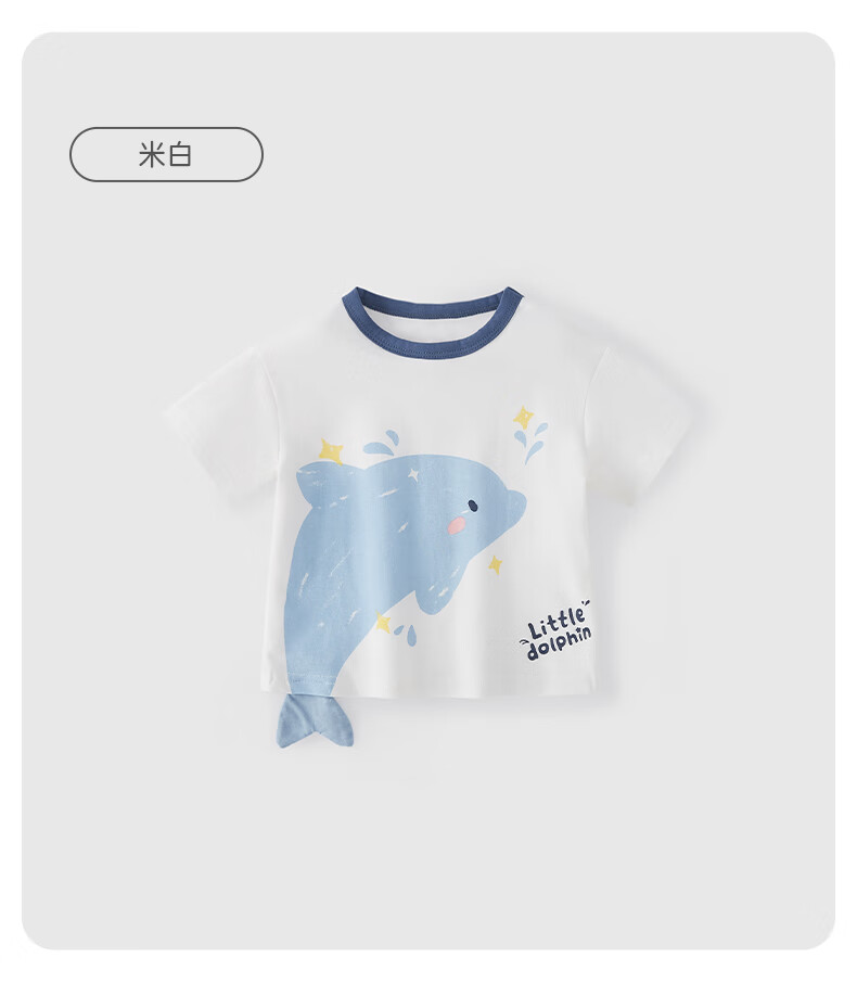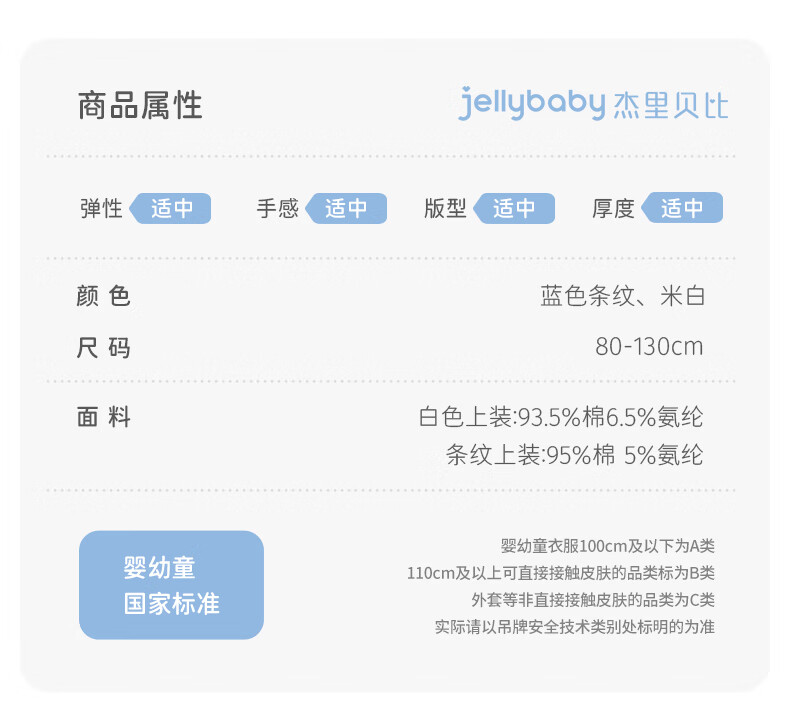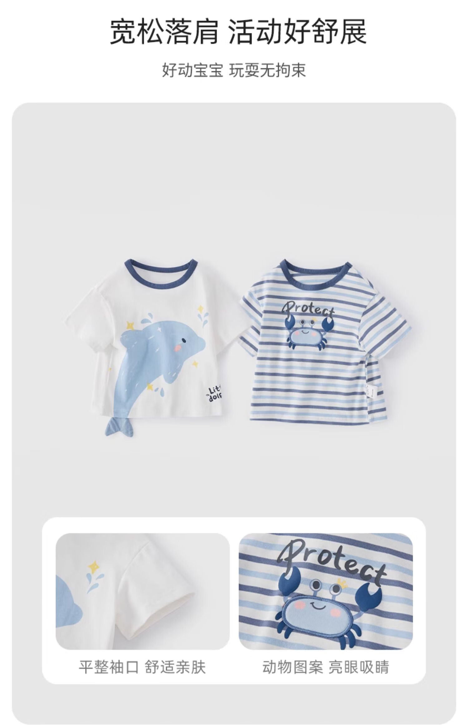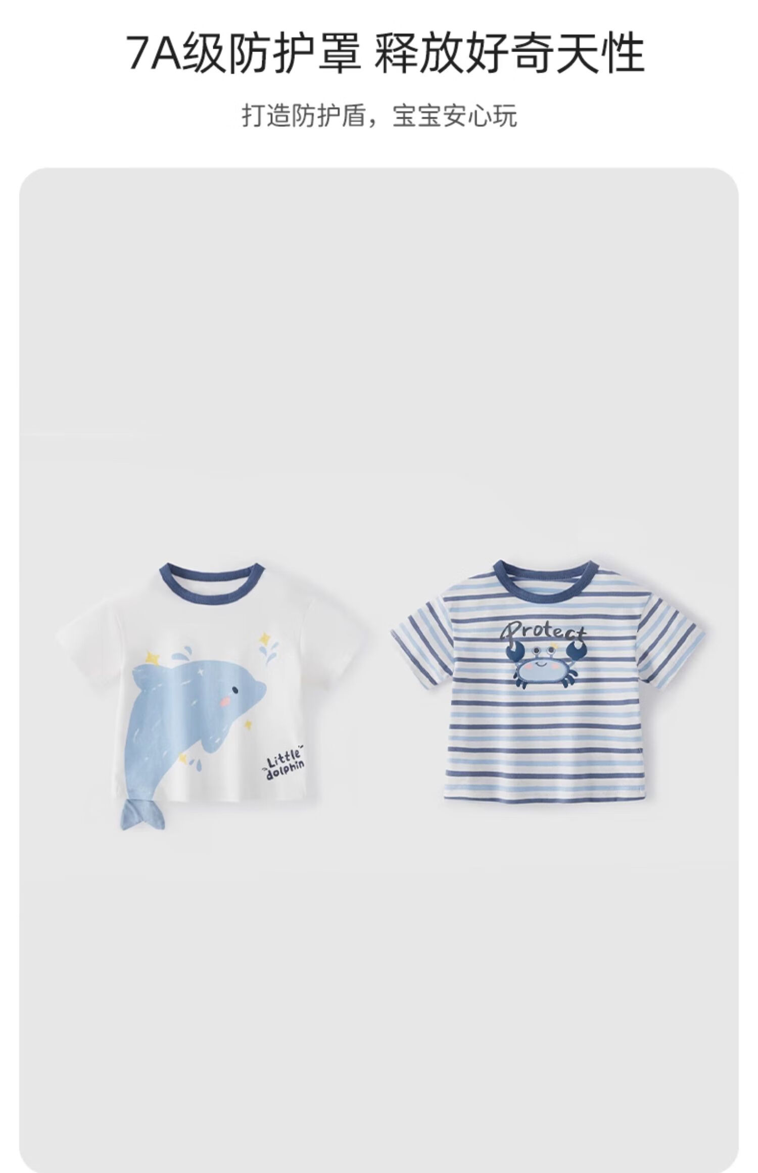 JELLYBABY[7A抗菌]男童短袖t恤新款宝宝夏季条纹上衣小童可爱夏装儿童衣服 蓝色条纹 【7A抗菌】 120 CM