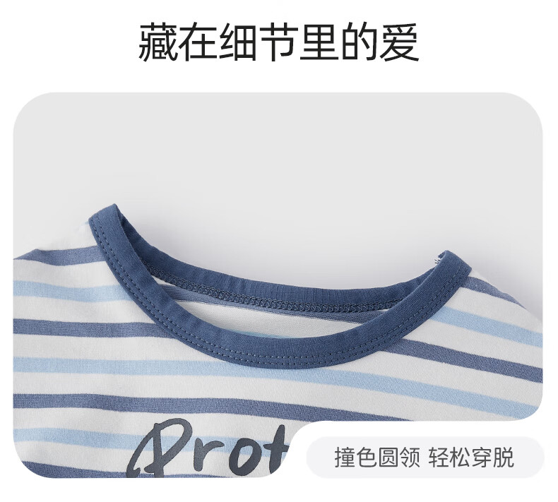 英博伦男童空调服全棉家居服10A抑菌儿童睡衣春夏季薄款短袖套装 20999兰色 160