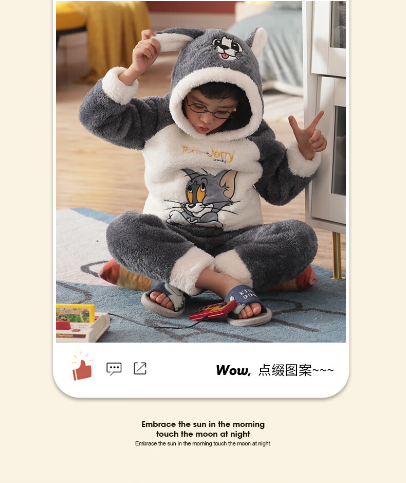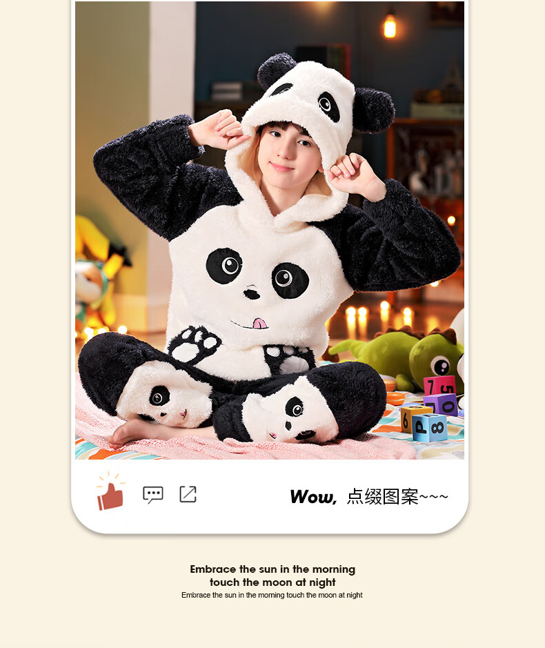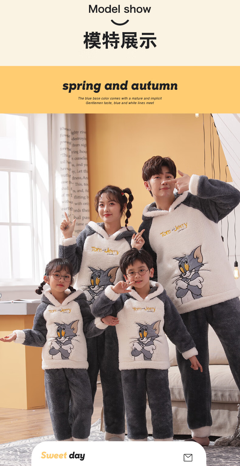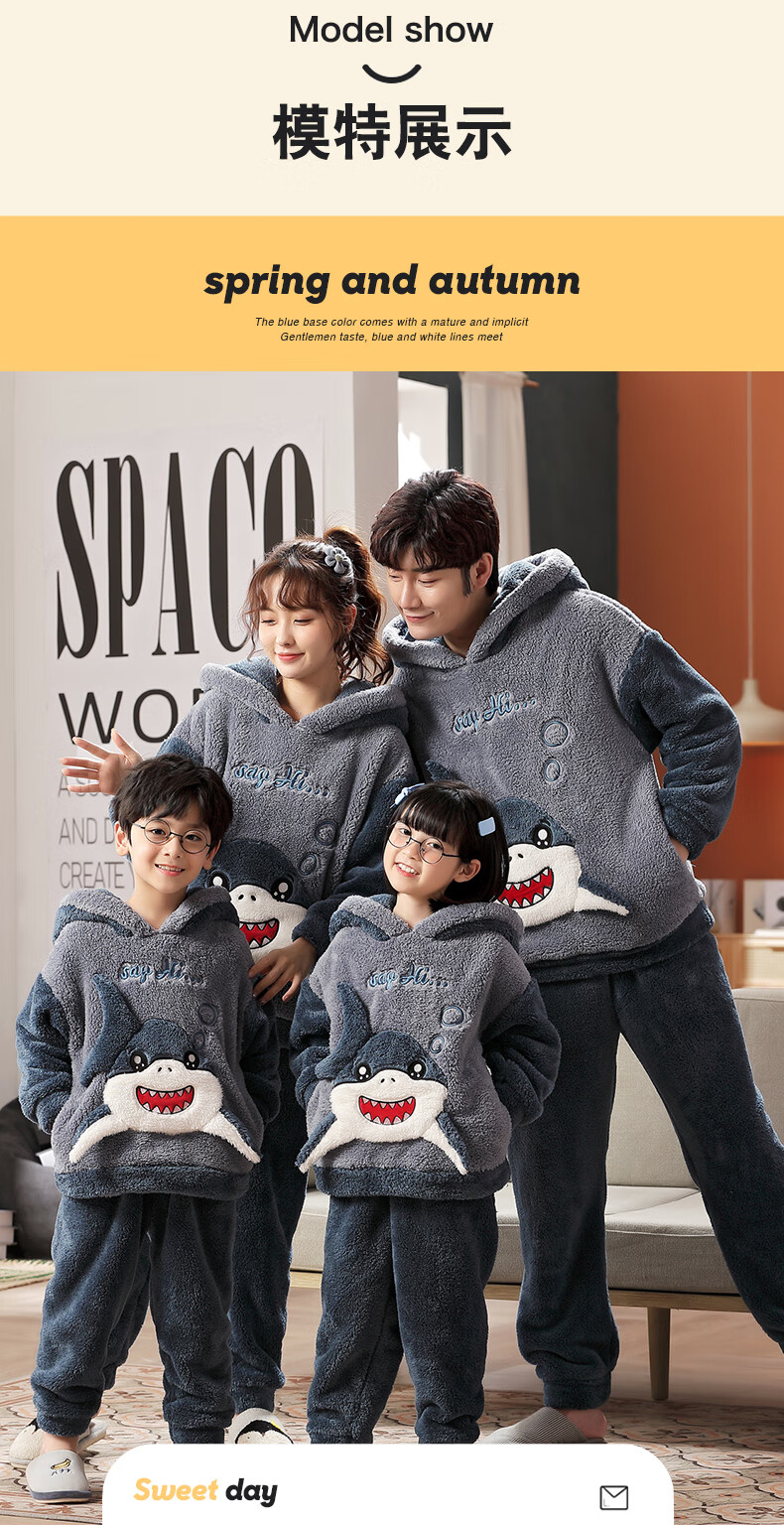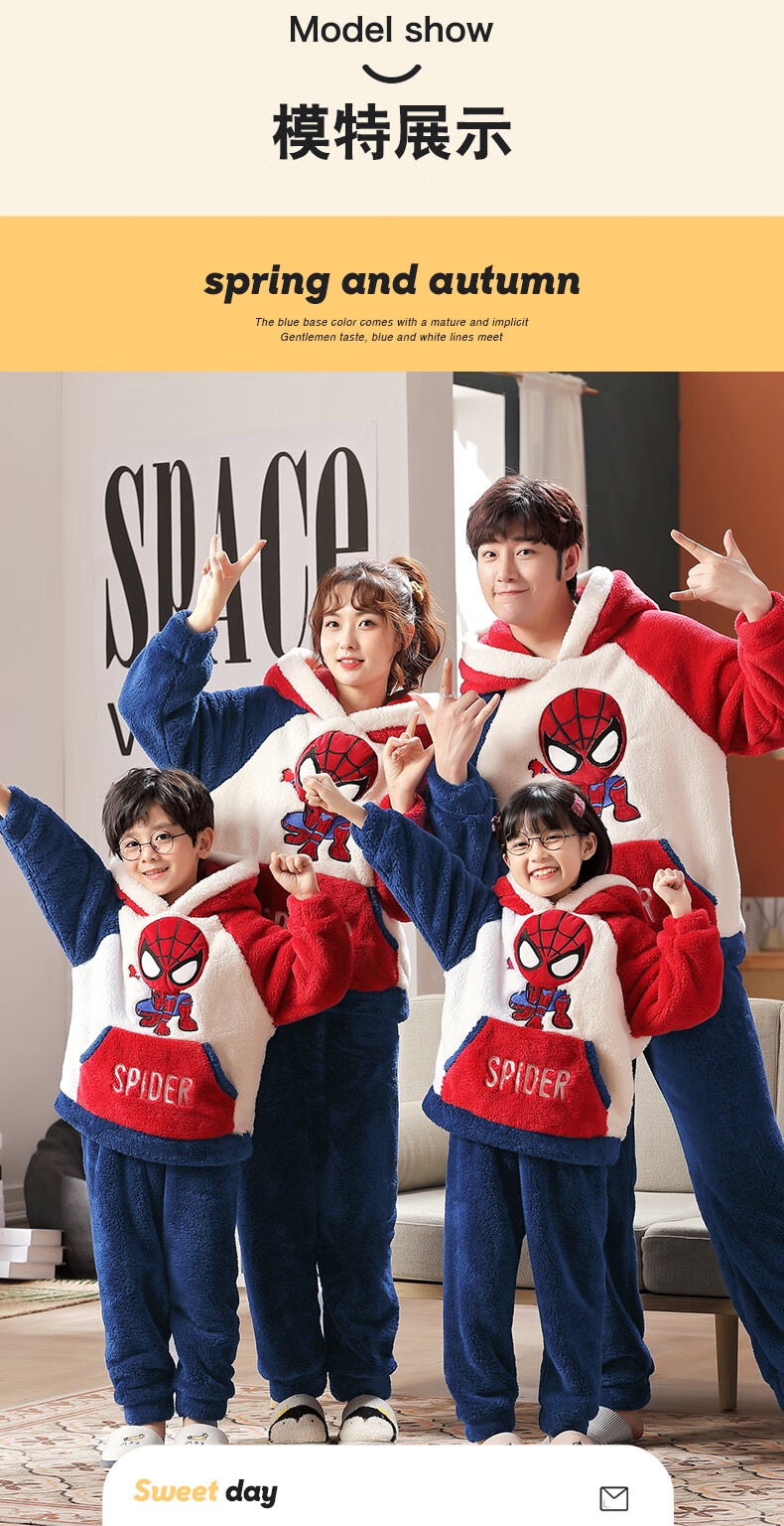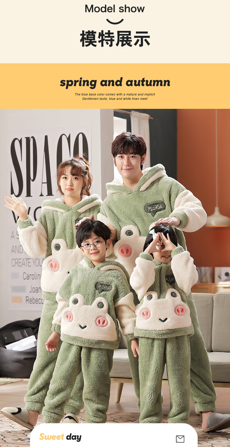萧淑妃冬季卡通法兰绒儿童睡衣加厚保暖珊瑚绒一家四口亲子家居服套装 皮卡丘 女童12码 100-120CM/48斤左右