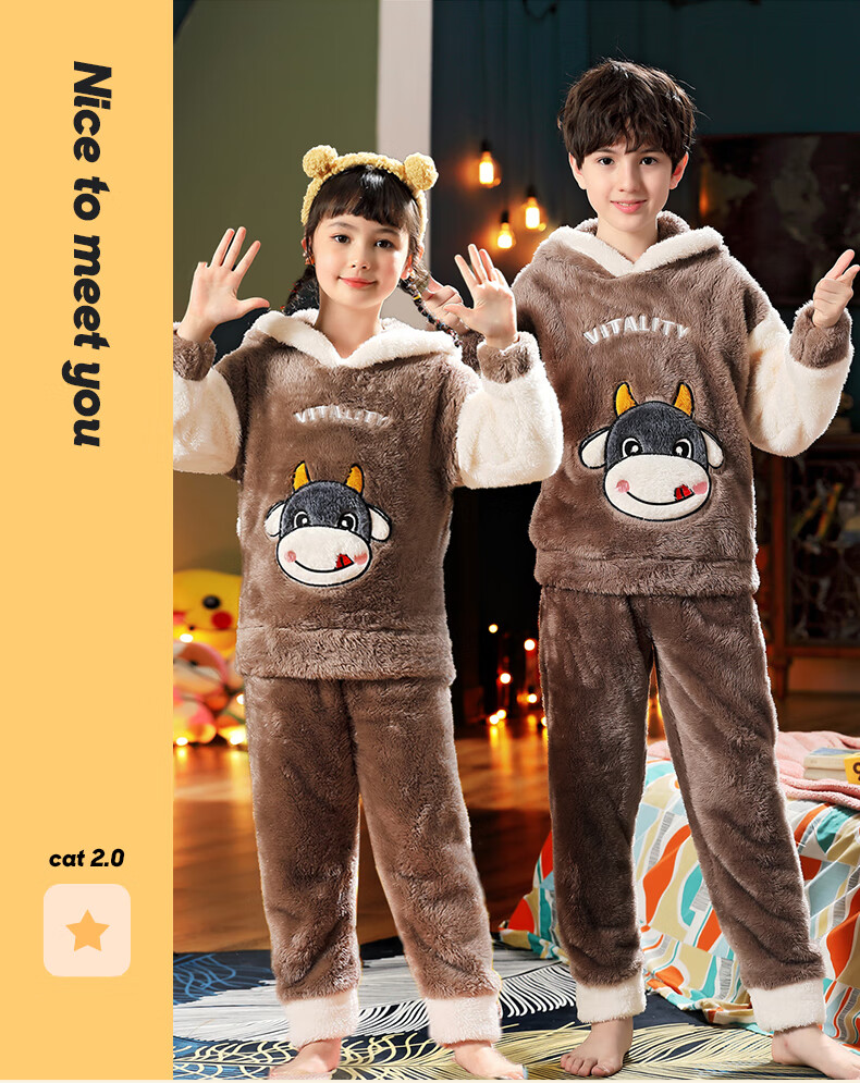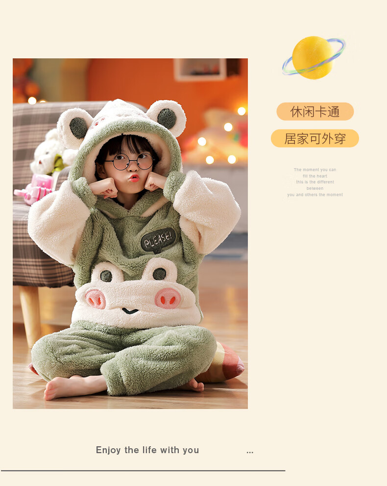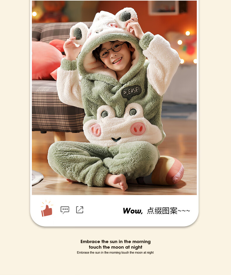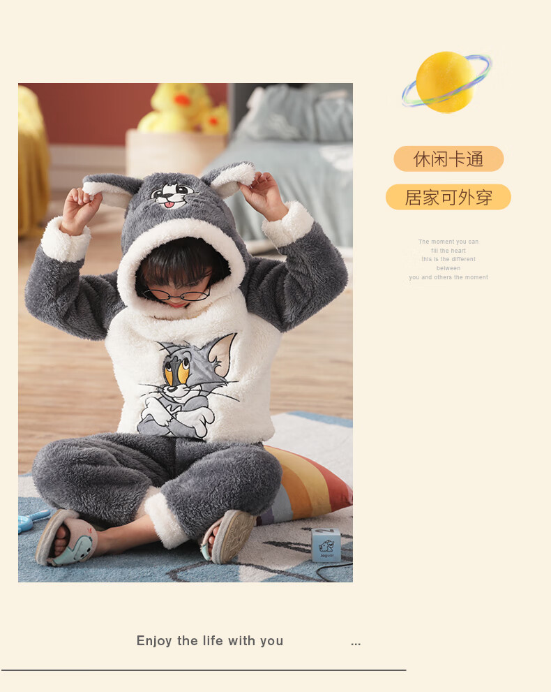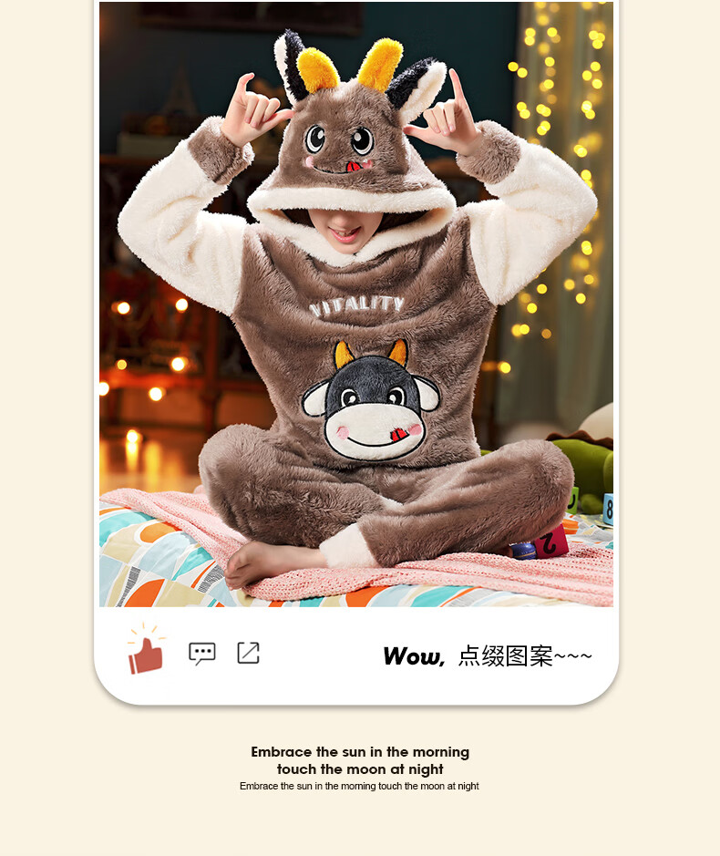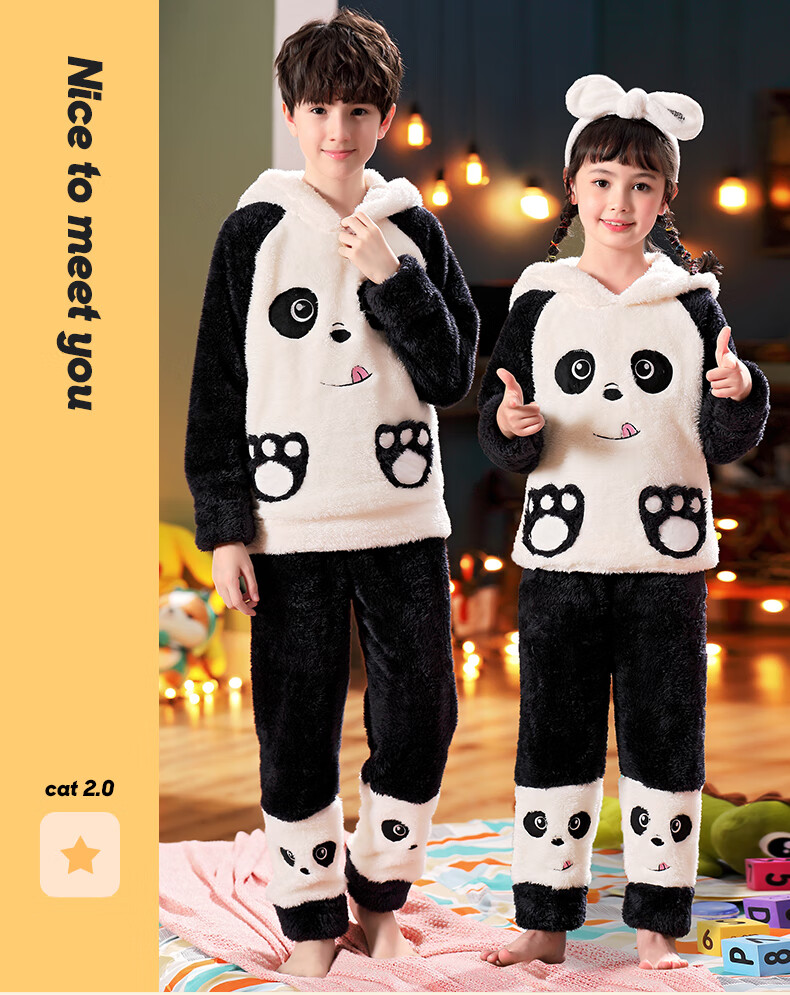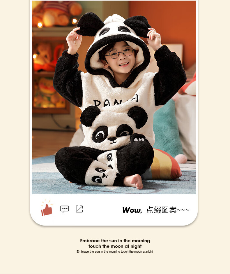 萧淑妃冬季卡通法兰绒儿童睡衣加厚保暖珊瑚绒一家四口亲子家居服套装 皮卡丘 女童12码 100-120CM/48斤左右
