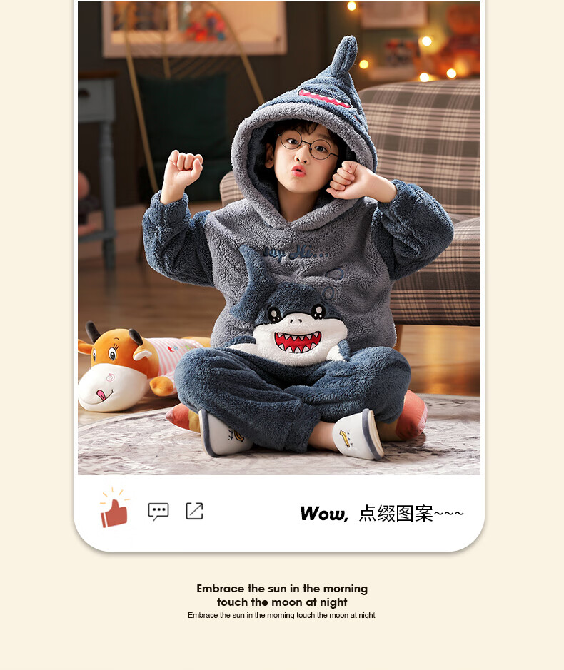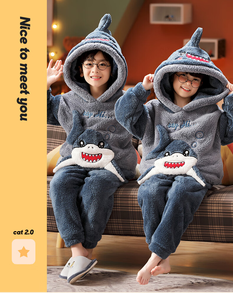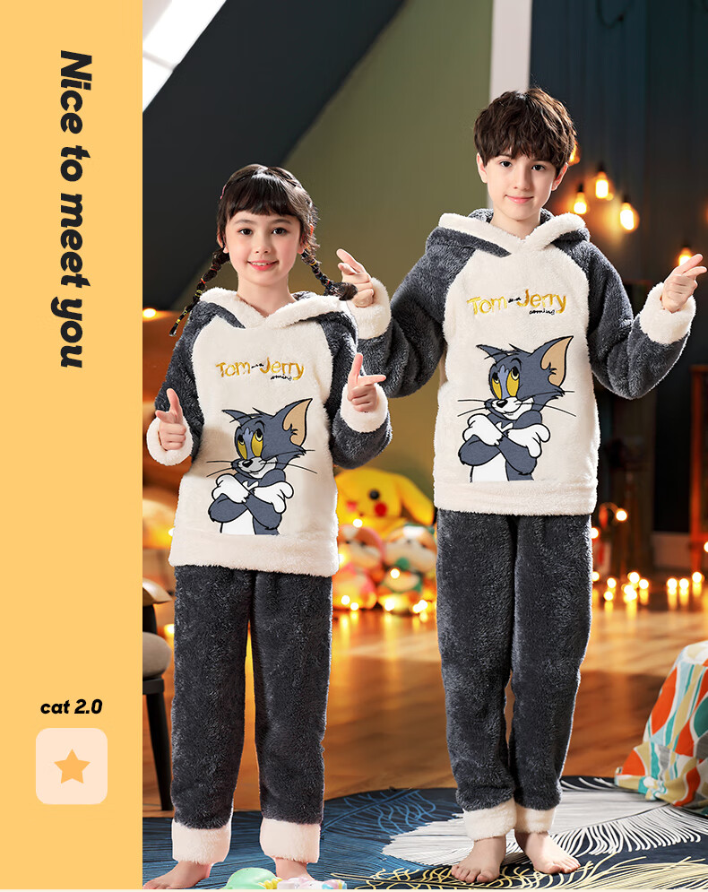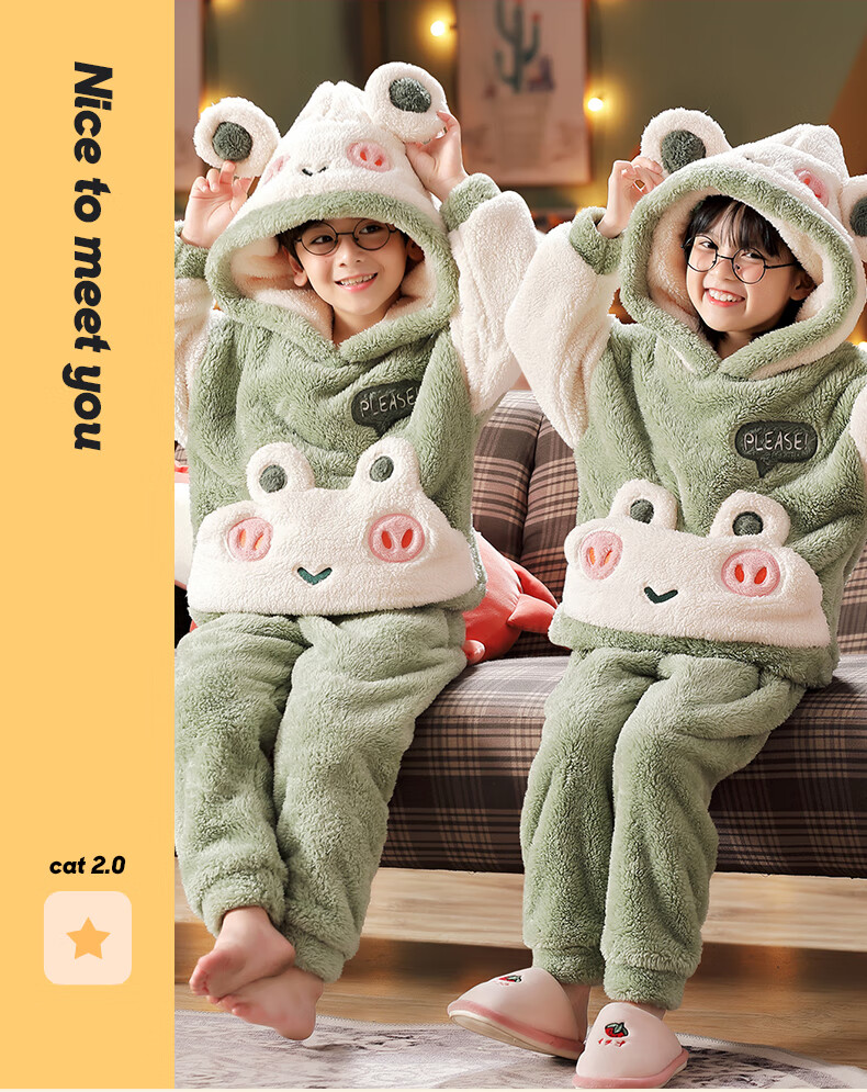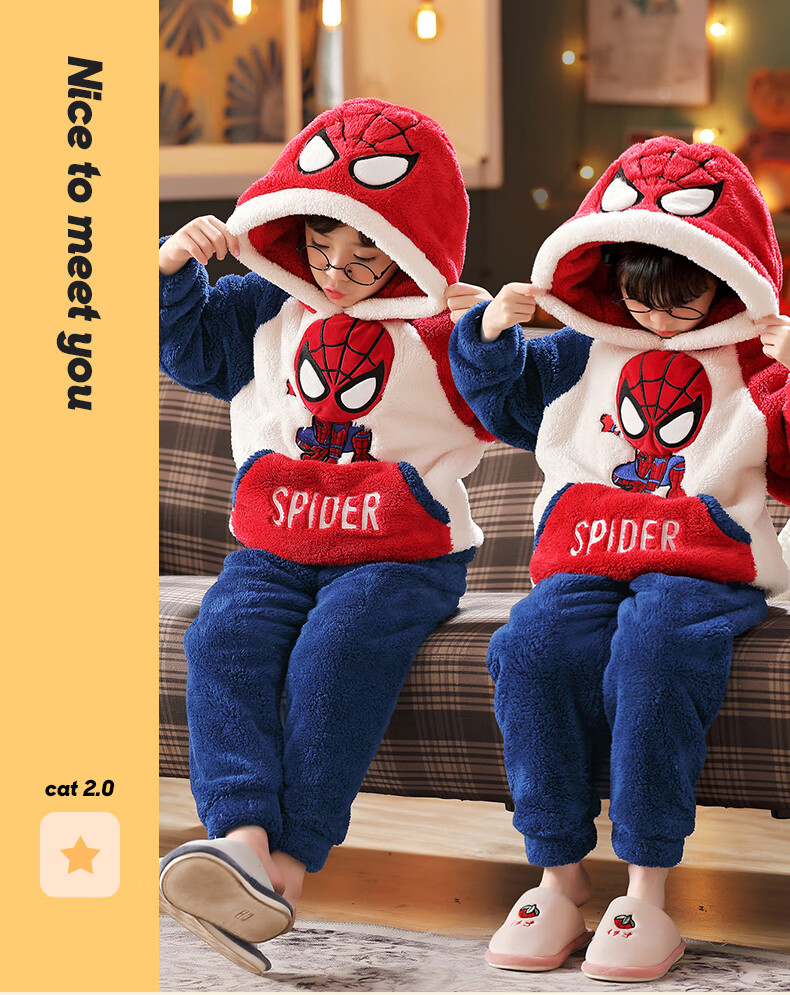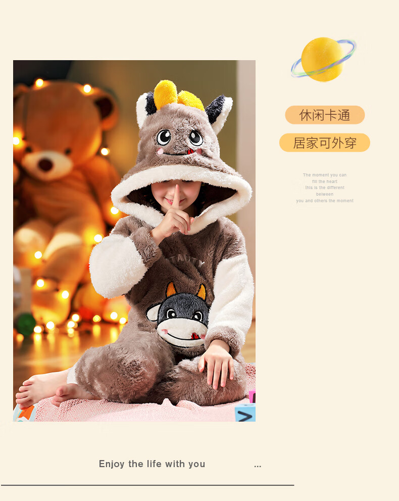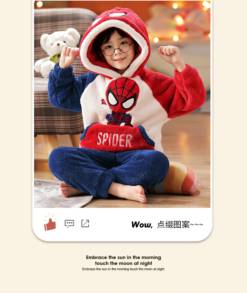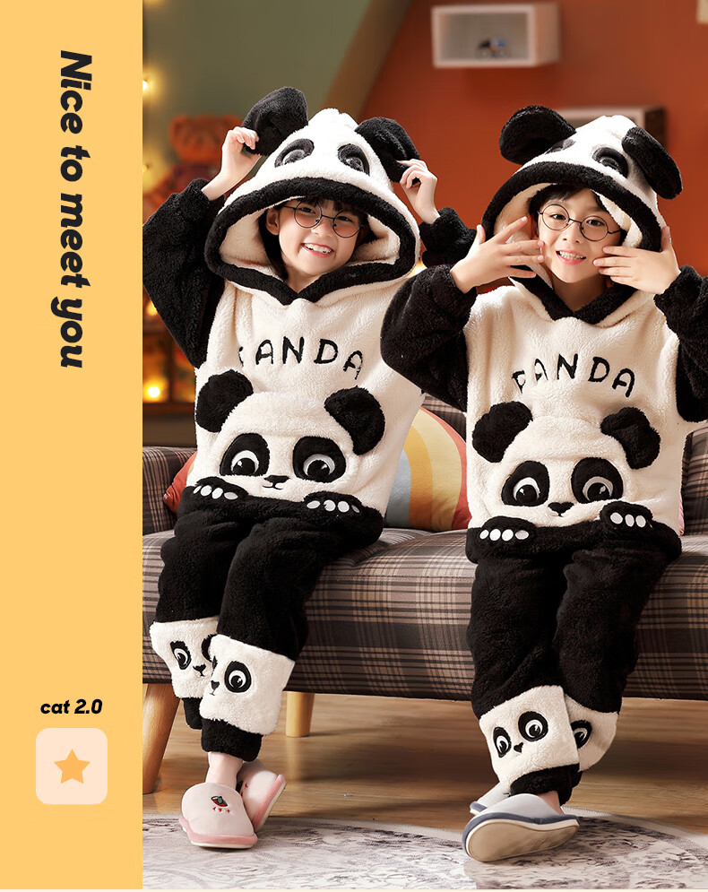 萧淑妃冬季卡通法兰绒儿童睡衣加厚保暖珊瑚绒一家四口亲子家居服套装 皮卡丘 女童12码 100-120CM/48斤左右