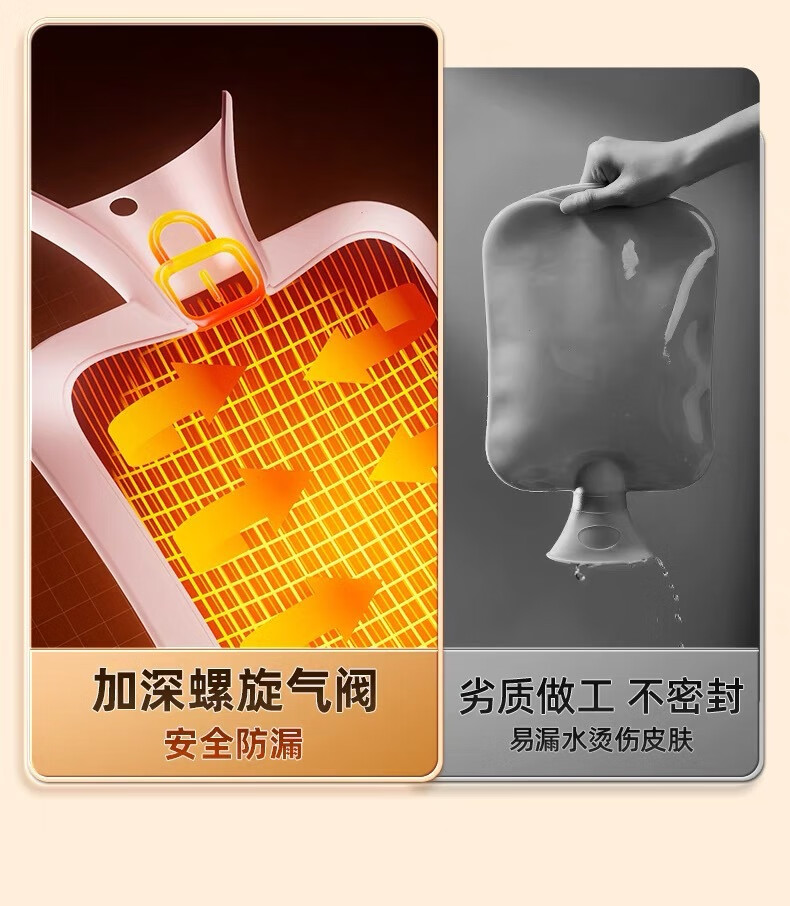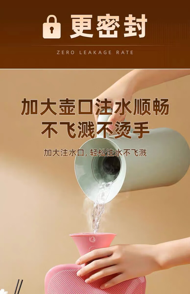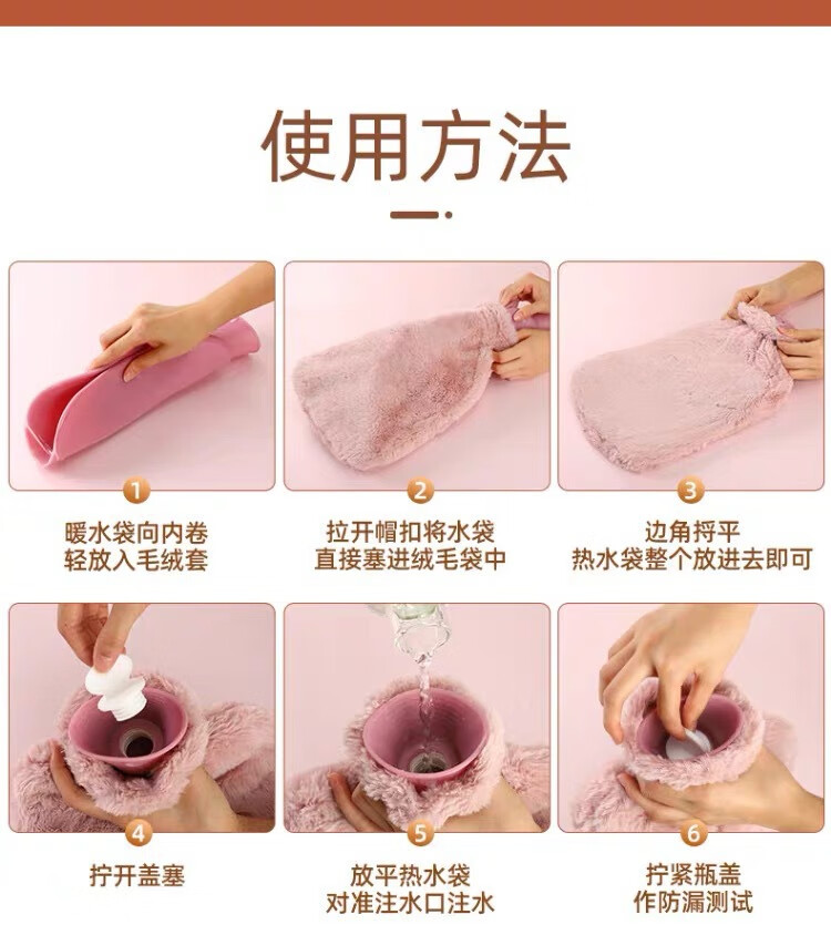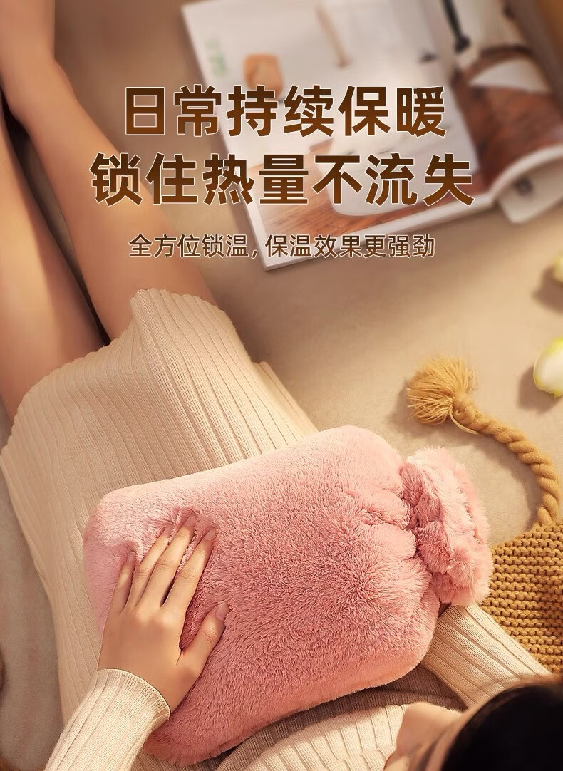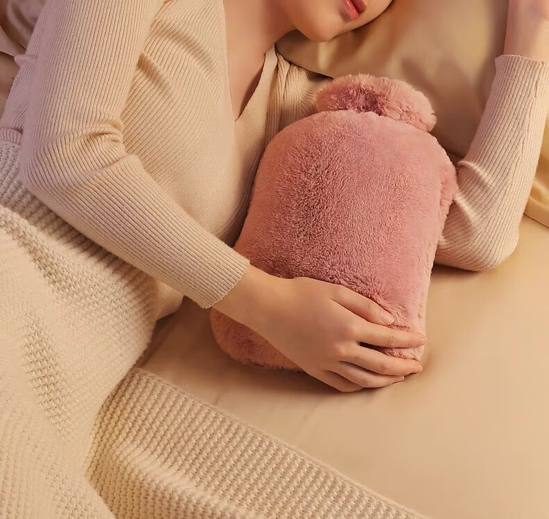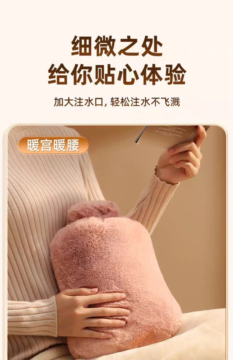 洋臣冬季热水袋灌水暖手袋防爆暖脚学生宿舍PVC暖水袋注水毛绒暖手宝 pvc内胆+毛绒布套 【粉色灰色随机发货】 1000毫升
