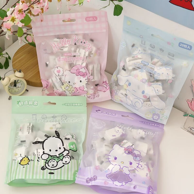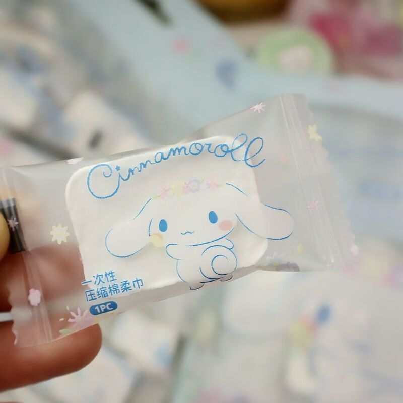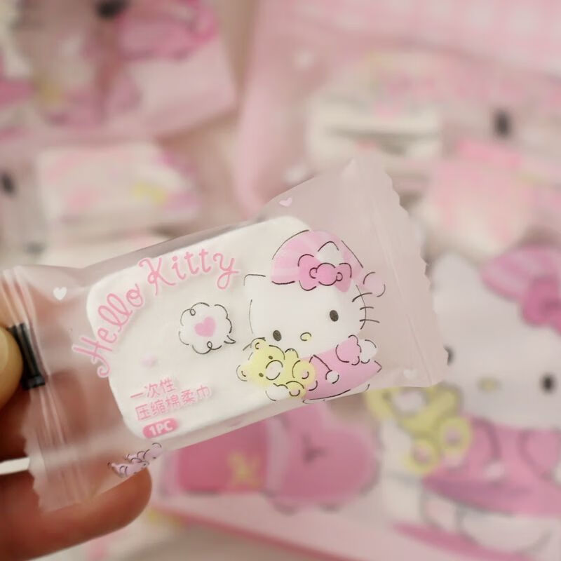 宰搂三丽鸥KT猫压缩毛巾旅行外出便携式可爱卡通学生厚洗脸巾 主图款 1粒体验装不是一袋哦贵在运