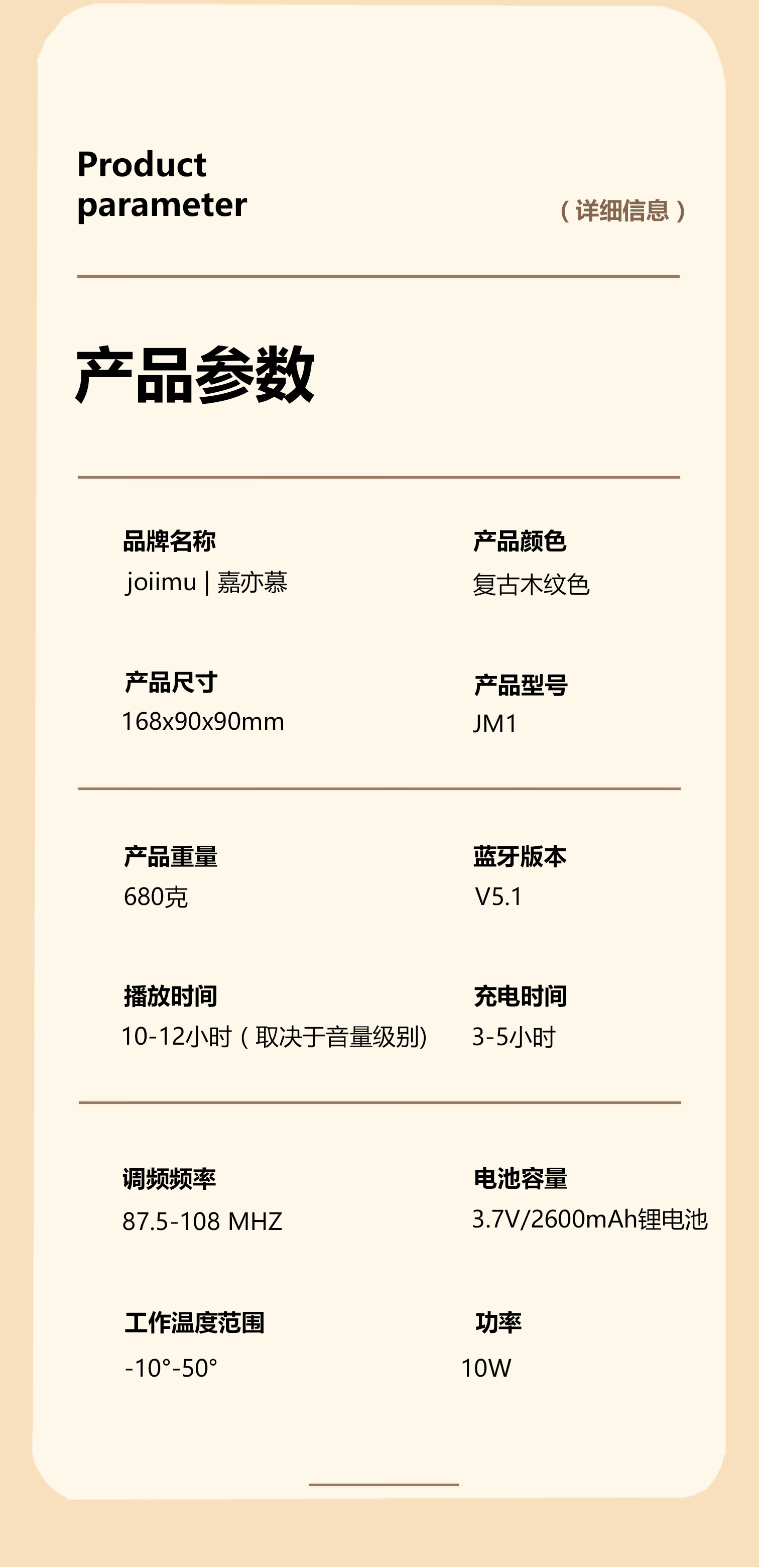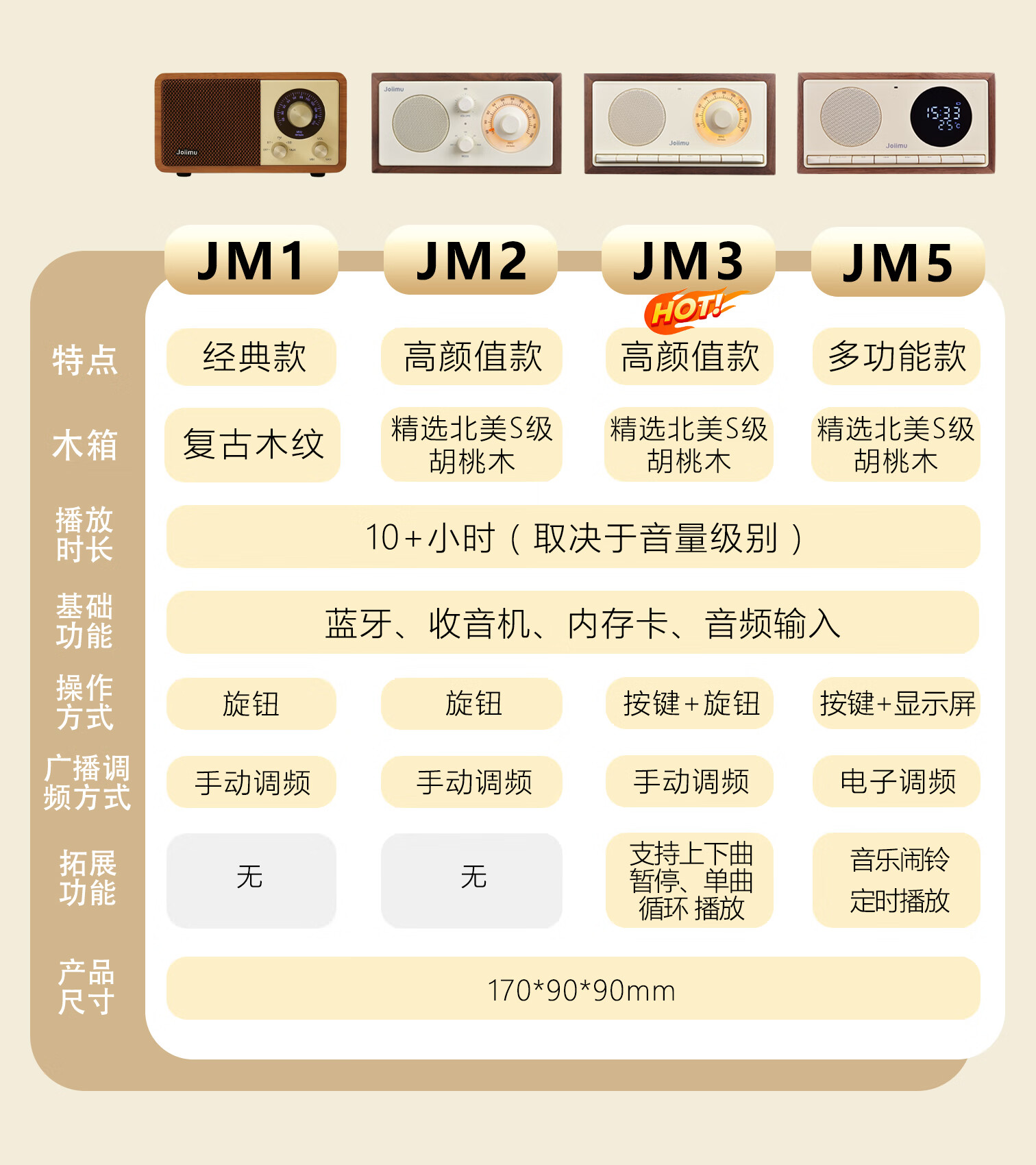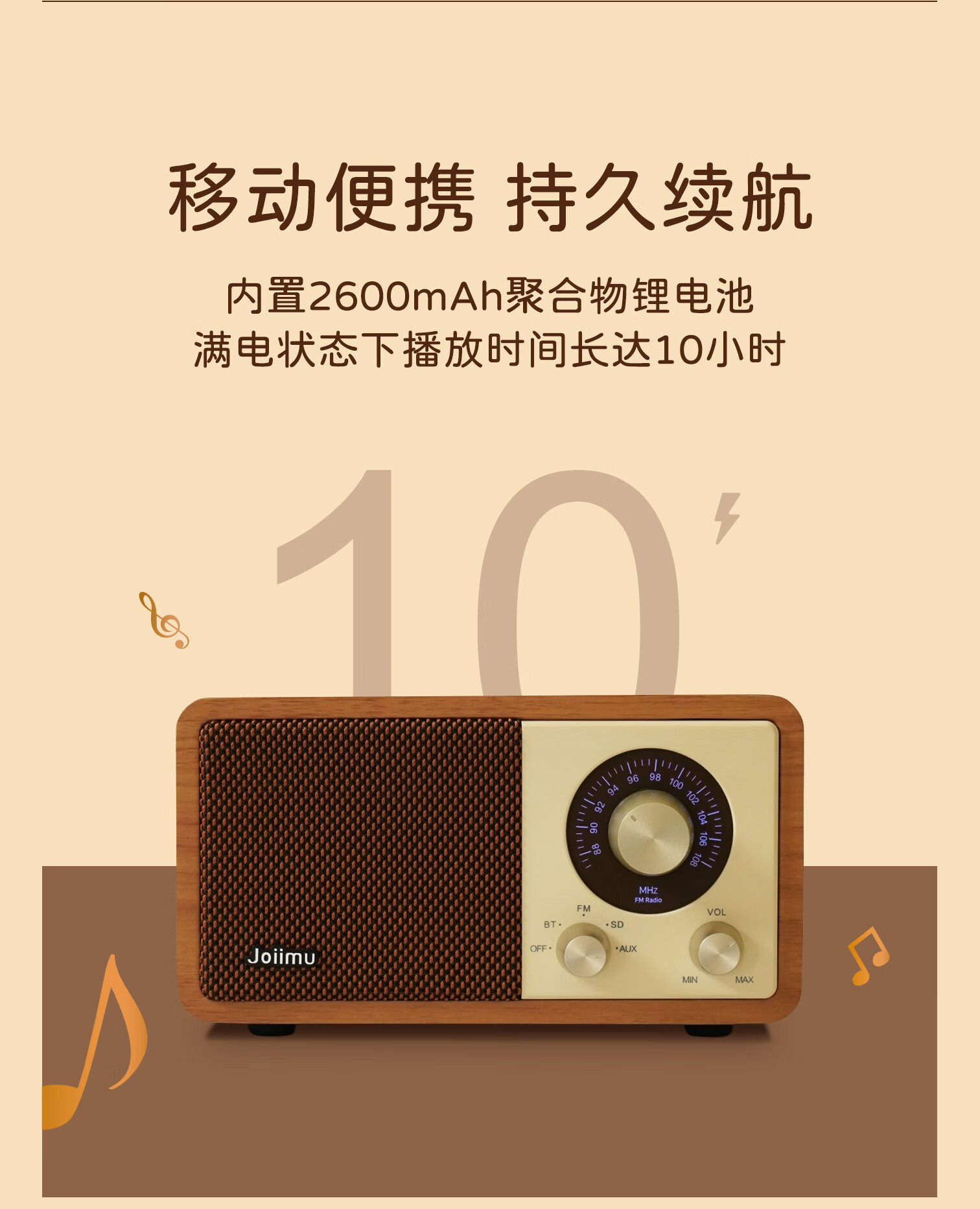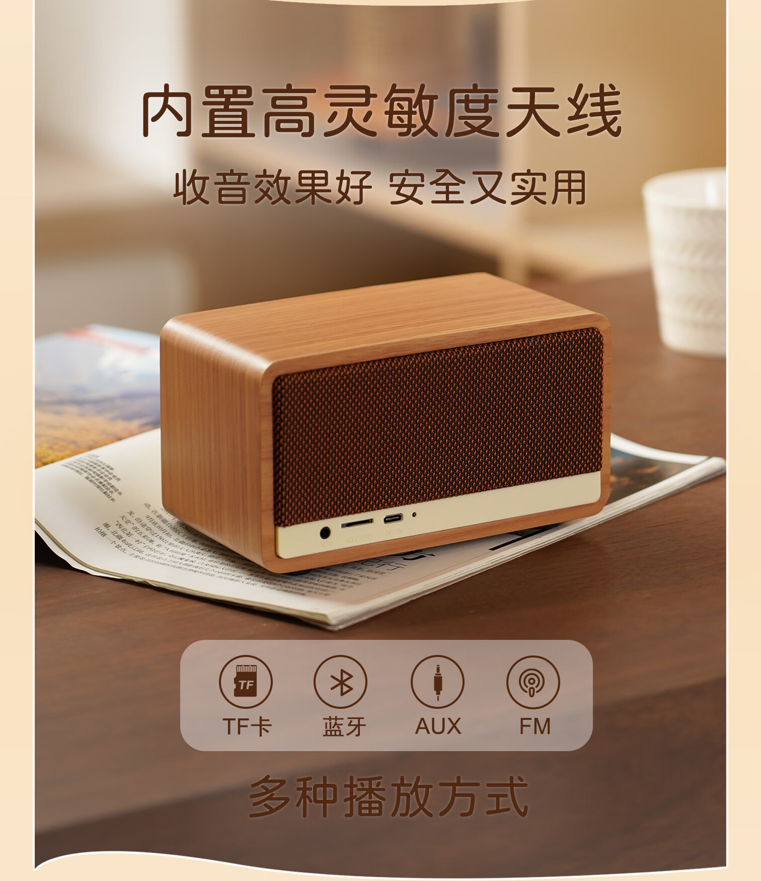JOIIMU 嘉慕之声 JM1复古收音机音响家用桌面蓝牙音箱礼物 JM1复古木纹色