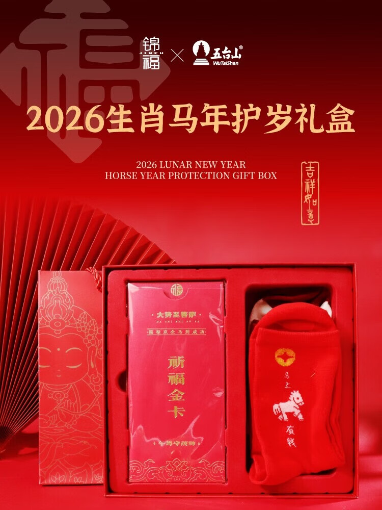 锦福五台山本命年红袜礼盒 本命年转运珠马年手绳红绳 御守护身符平安符礼盒 生肖守岁礼盒