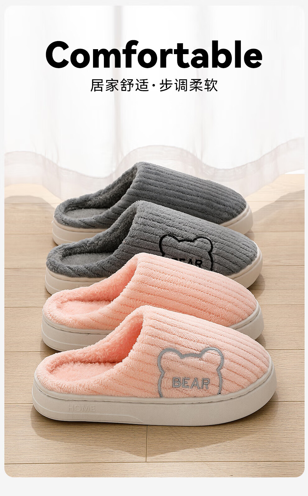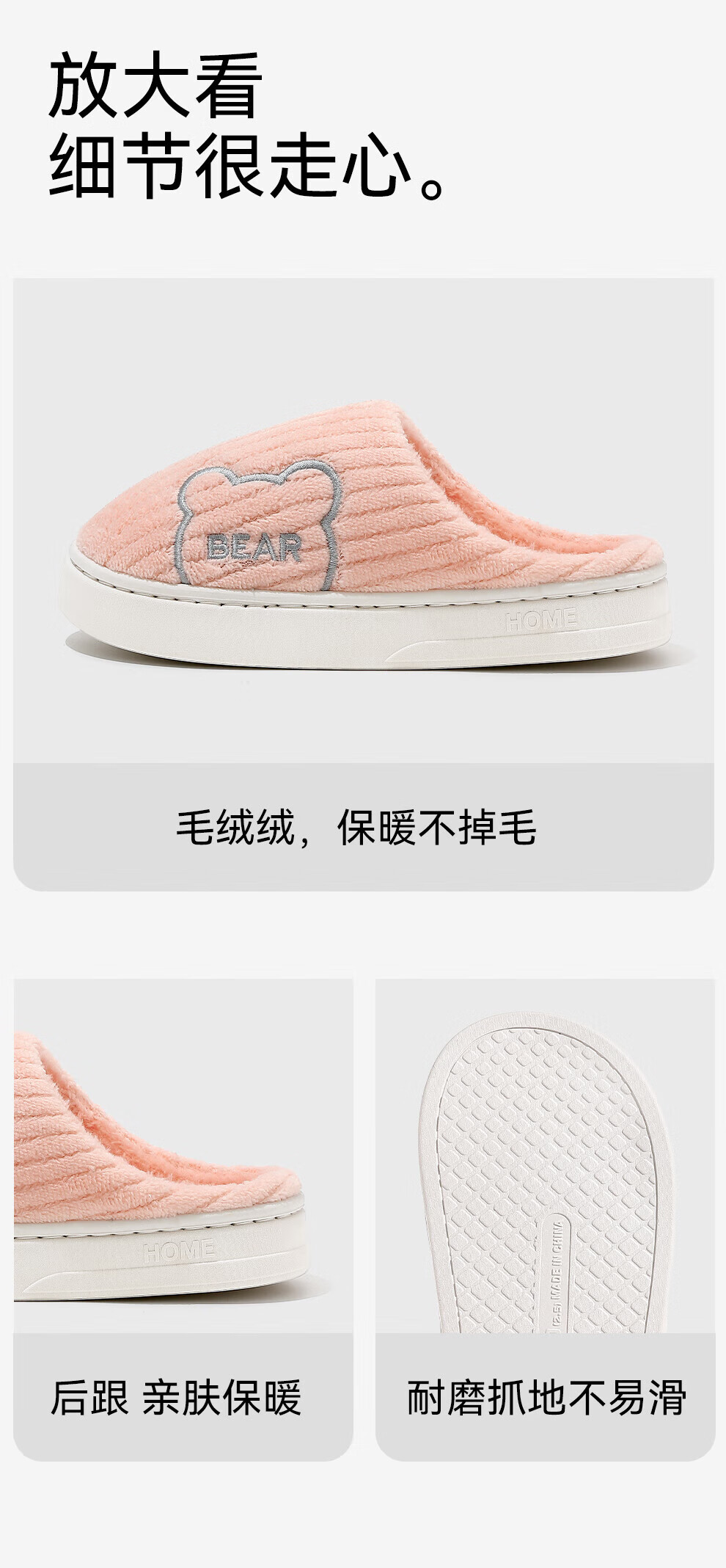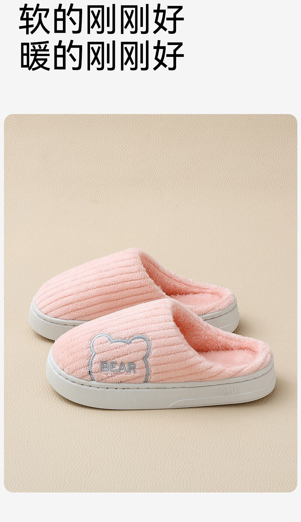FZT包跟棉拖鞋女2025秋冬新款防滑防臭室内家居简约毛绒绒棉鞋男外穿 粉色 38-39 适合37-38【内长235mm】