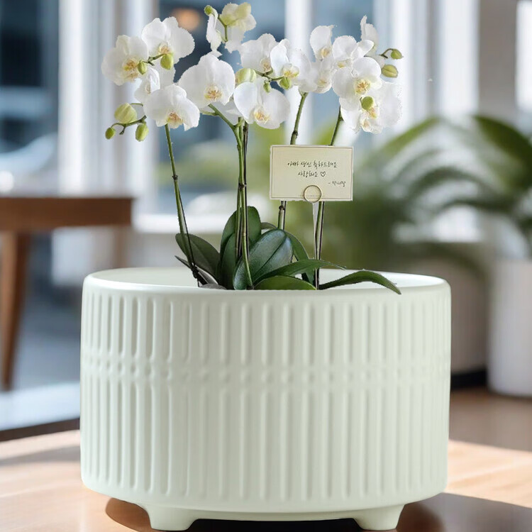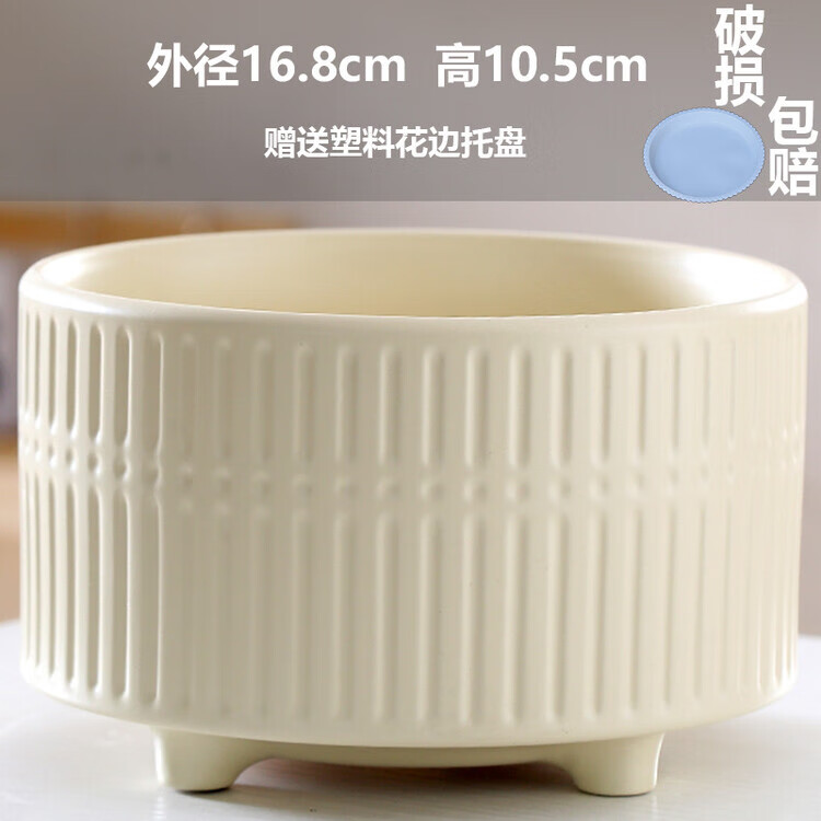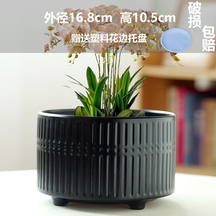 OYKTN批发陶瓷花盆欧式哑光带托盘蝴蝶兰专用盆发财树多肉花盆一件代发 四足大口径亚白-单个花盆无花