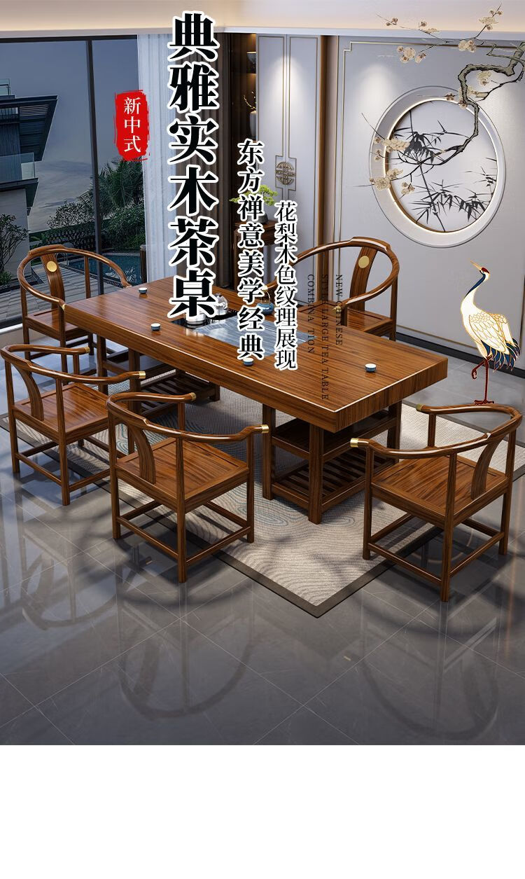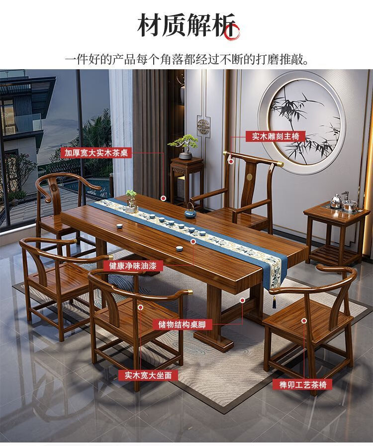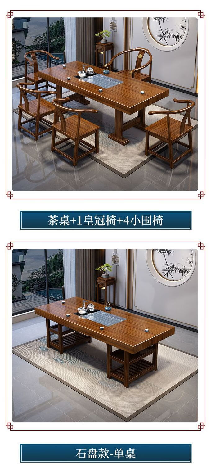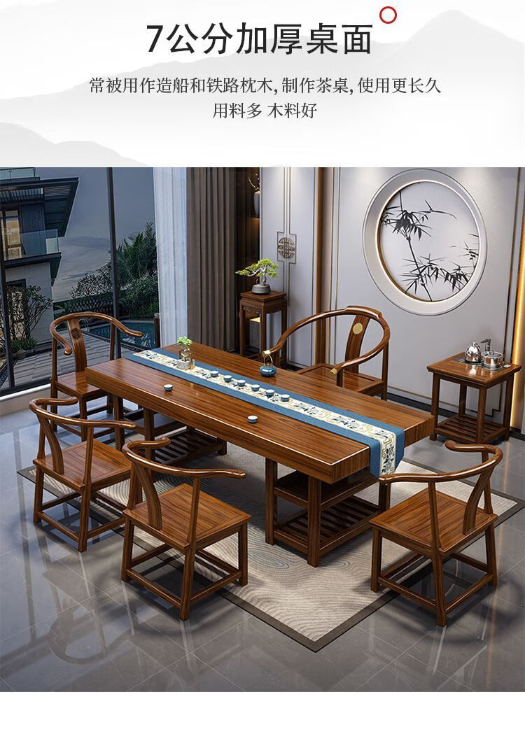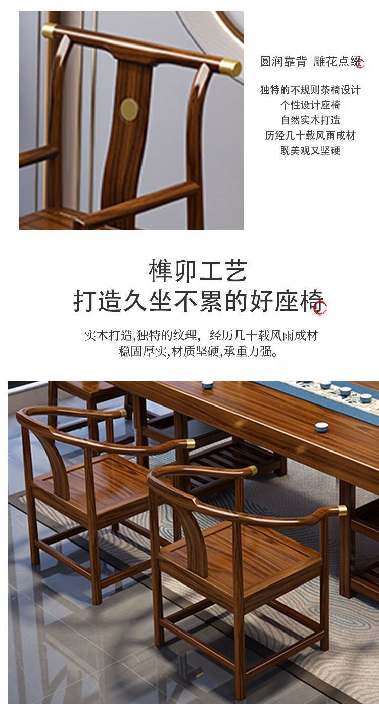 迈途森实木大板茶桌椅组合新中式简约茶几办公室古典功夫禅意家用泡茶台 平面款-工字脚 2.0米桌+1围椅+4月牙椅