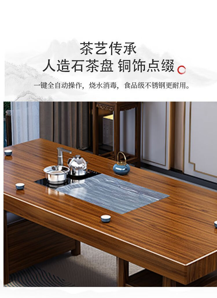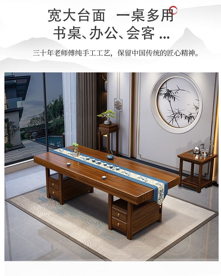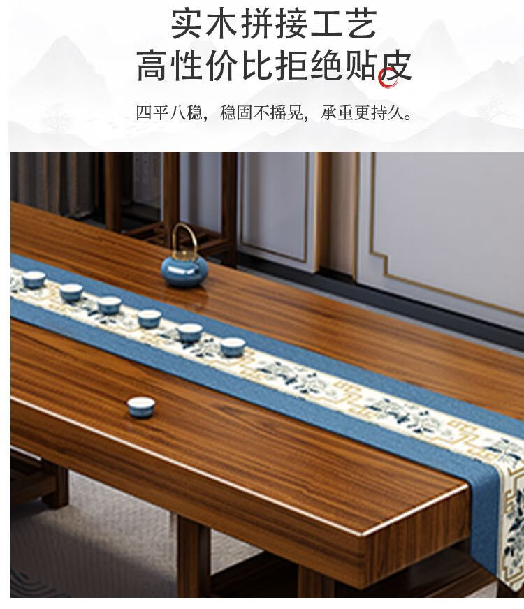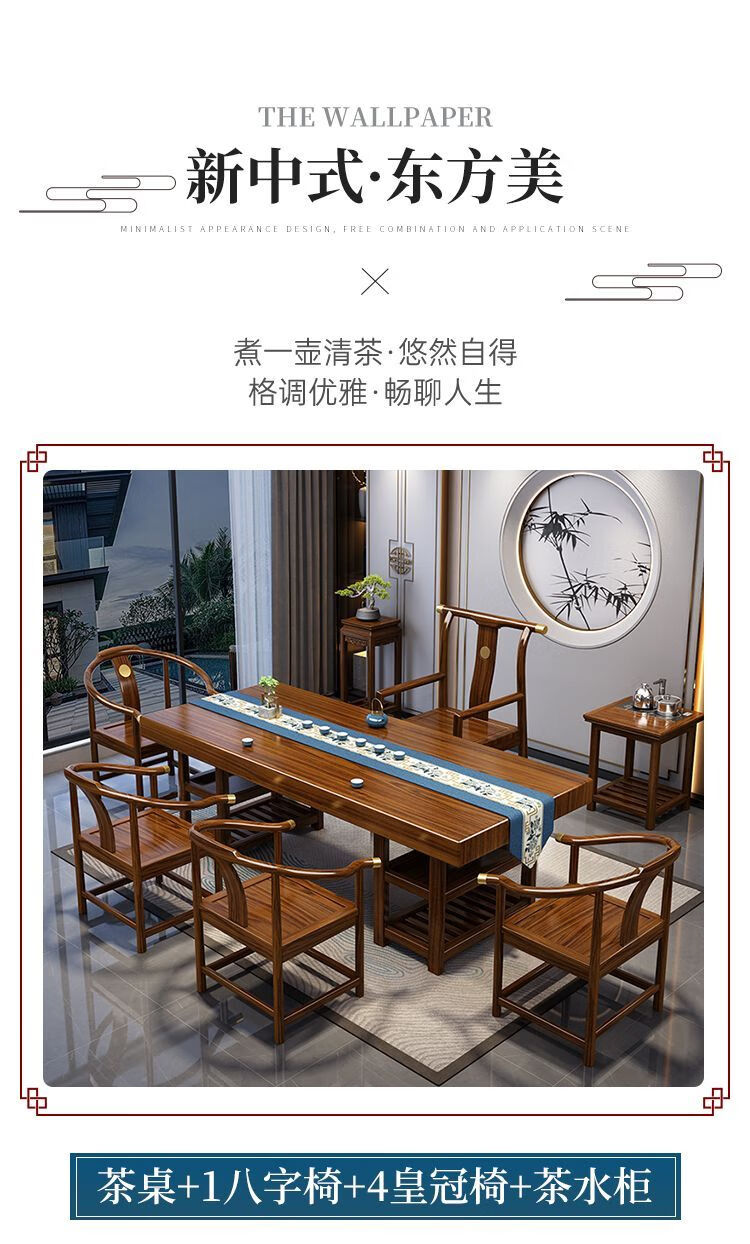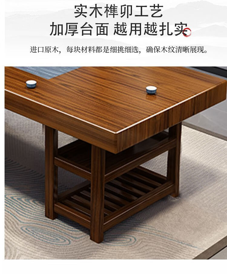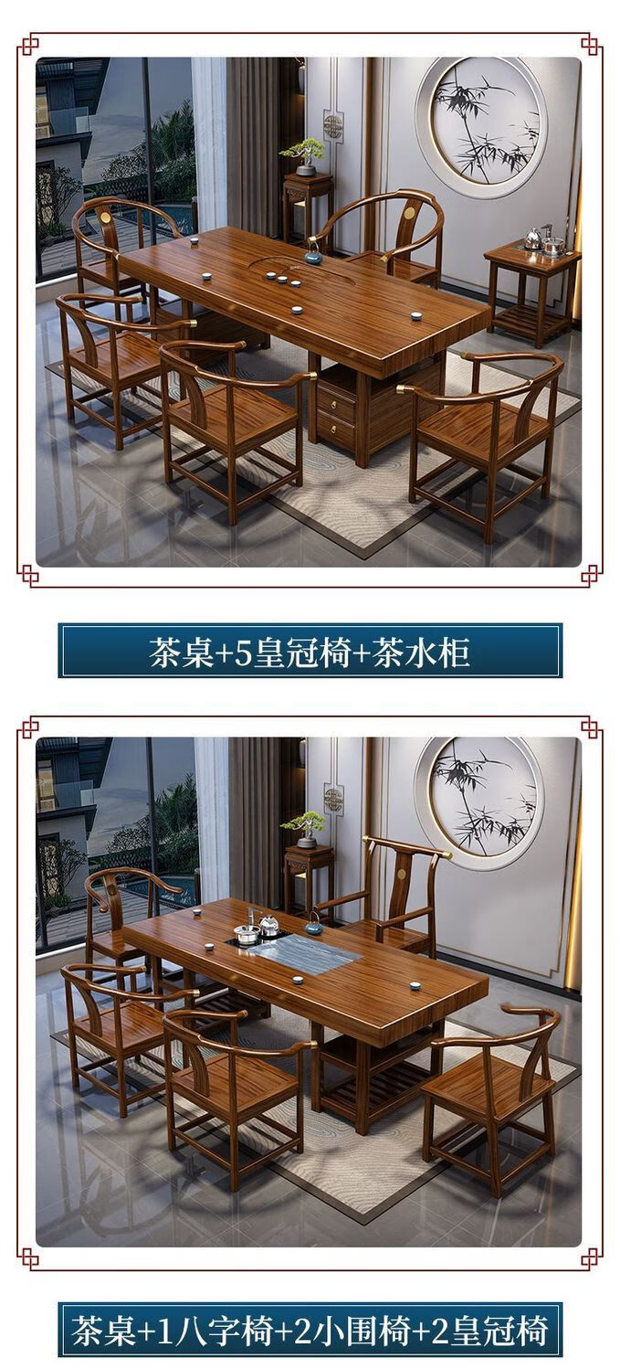 迈途森实木大板茶桌椅组合新中式简约茶几办公室古典功夫禅意家用泡茶台 平面款-工字脚 2.0米桌+1围椅+4月牙椅