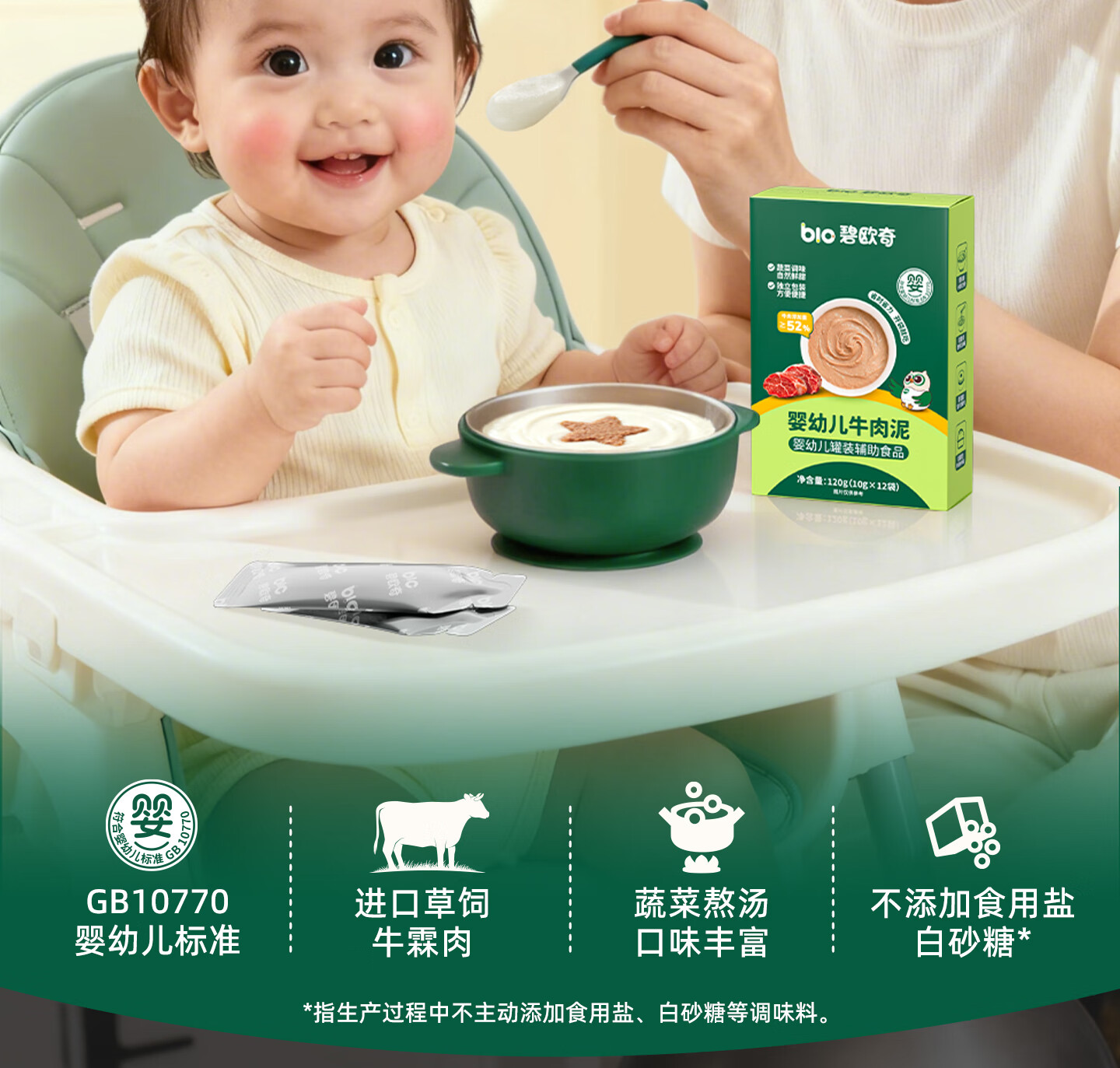 碧欧奇婴幼儿牛肉泥肝泥宝宝辅食营养拌饭酱泥 进口亚麻籽油150mL*2