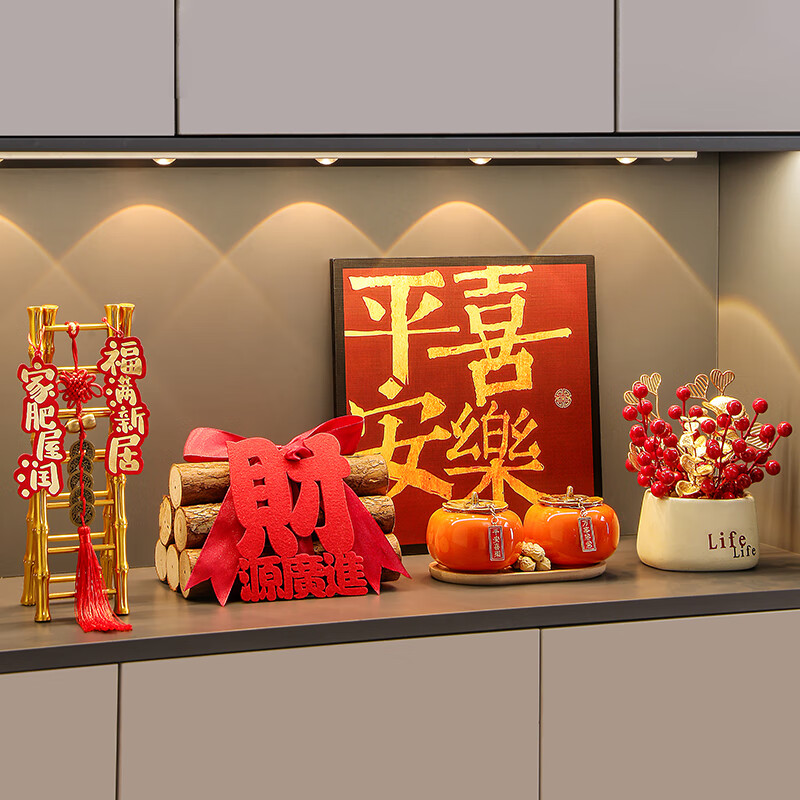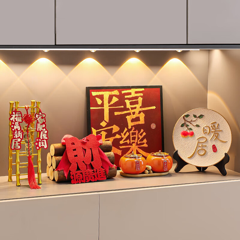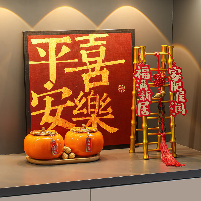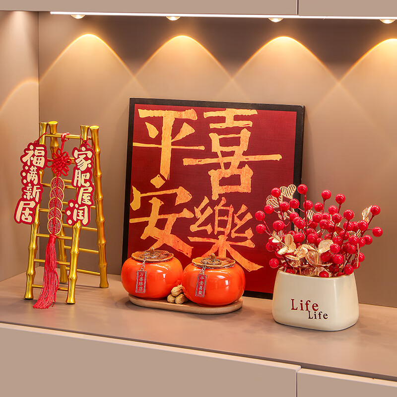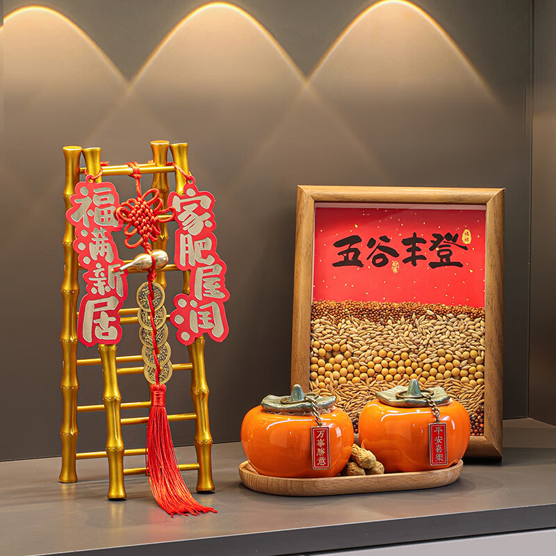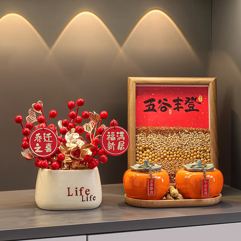 玺飞乔迁之喜装饰入户玄关摆件新居布置新家入宅仪式用品搬家礼物全套 当日发/平安喜乐+财源广进发财果+节节高升+红果盆栽