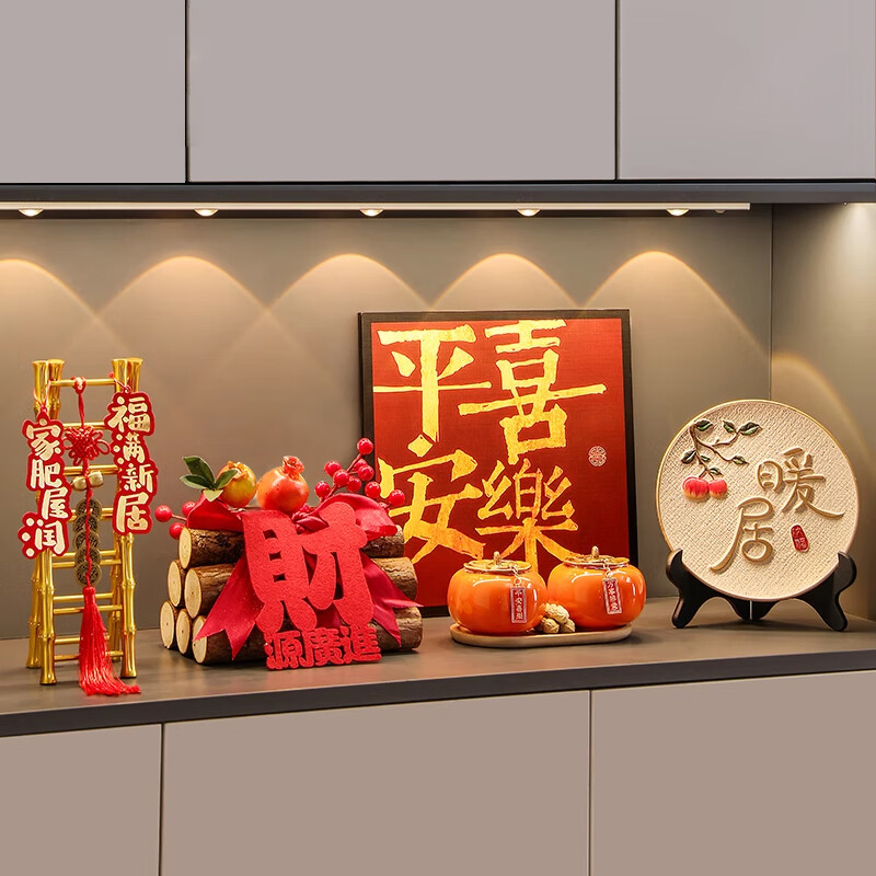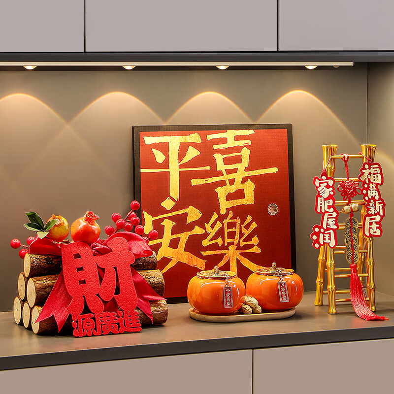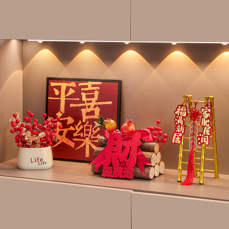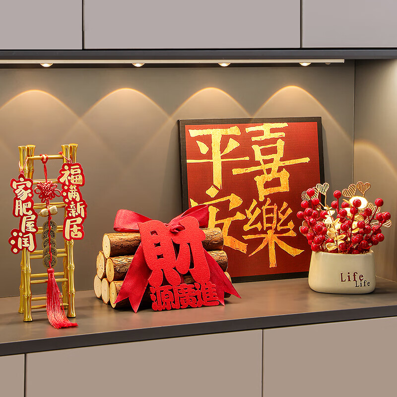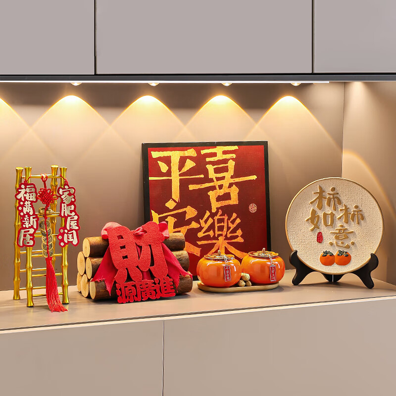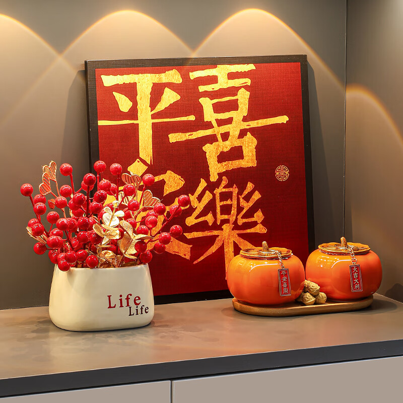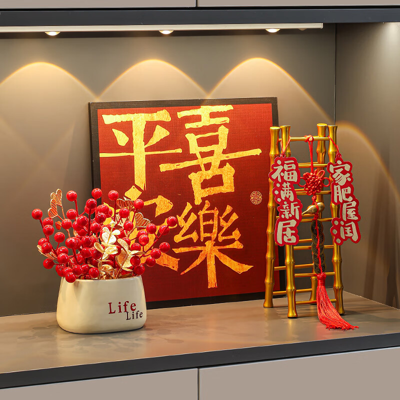 玺飞乔迁之喜装饰入户玄关摆件新居布置新家入宅仪式用品搬家礼物全套 当日发/平安喜乐+财源广进发财果+节节高升+红果盆栽