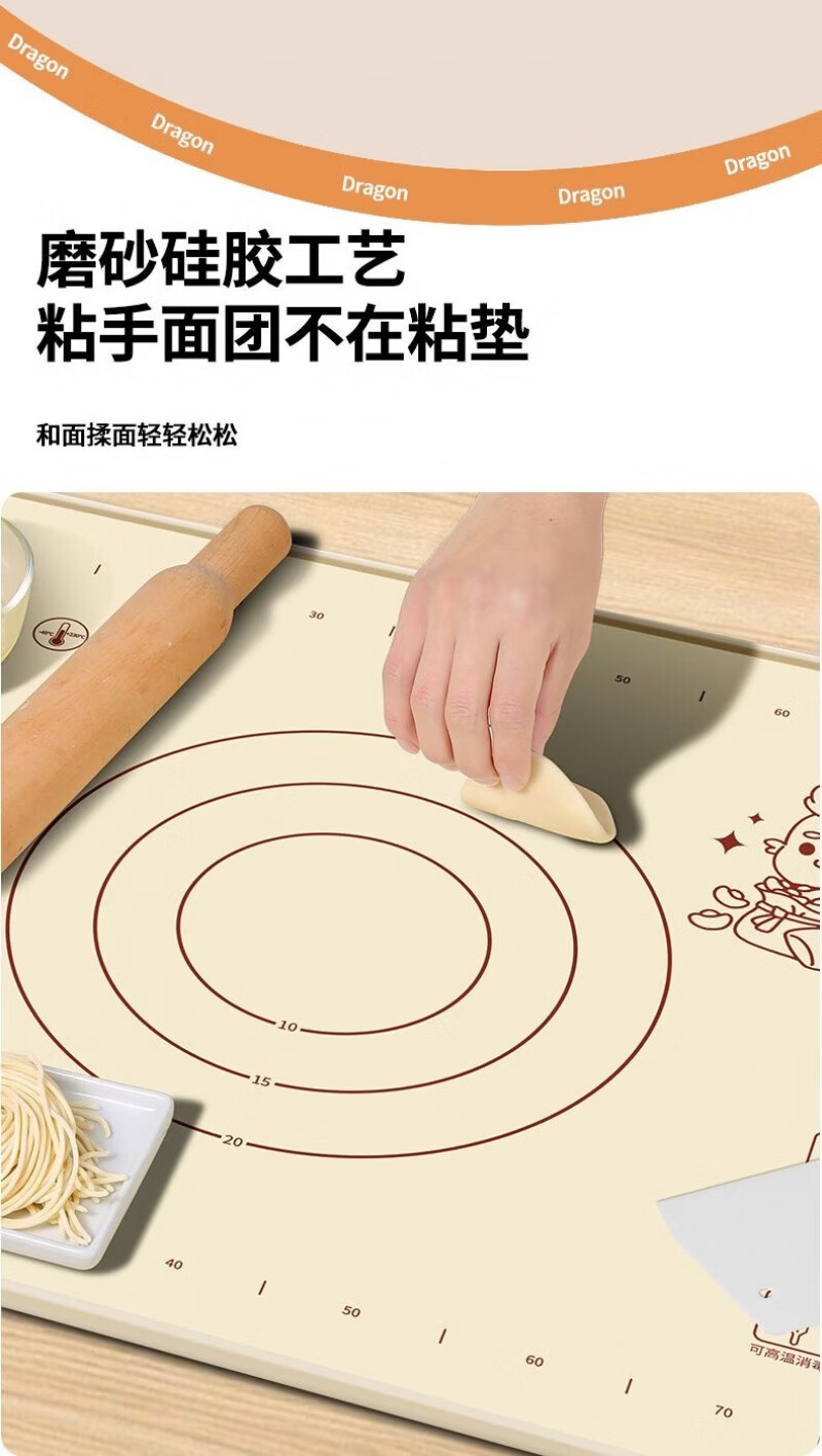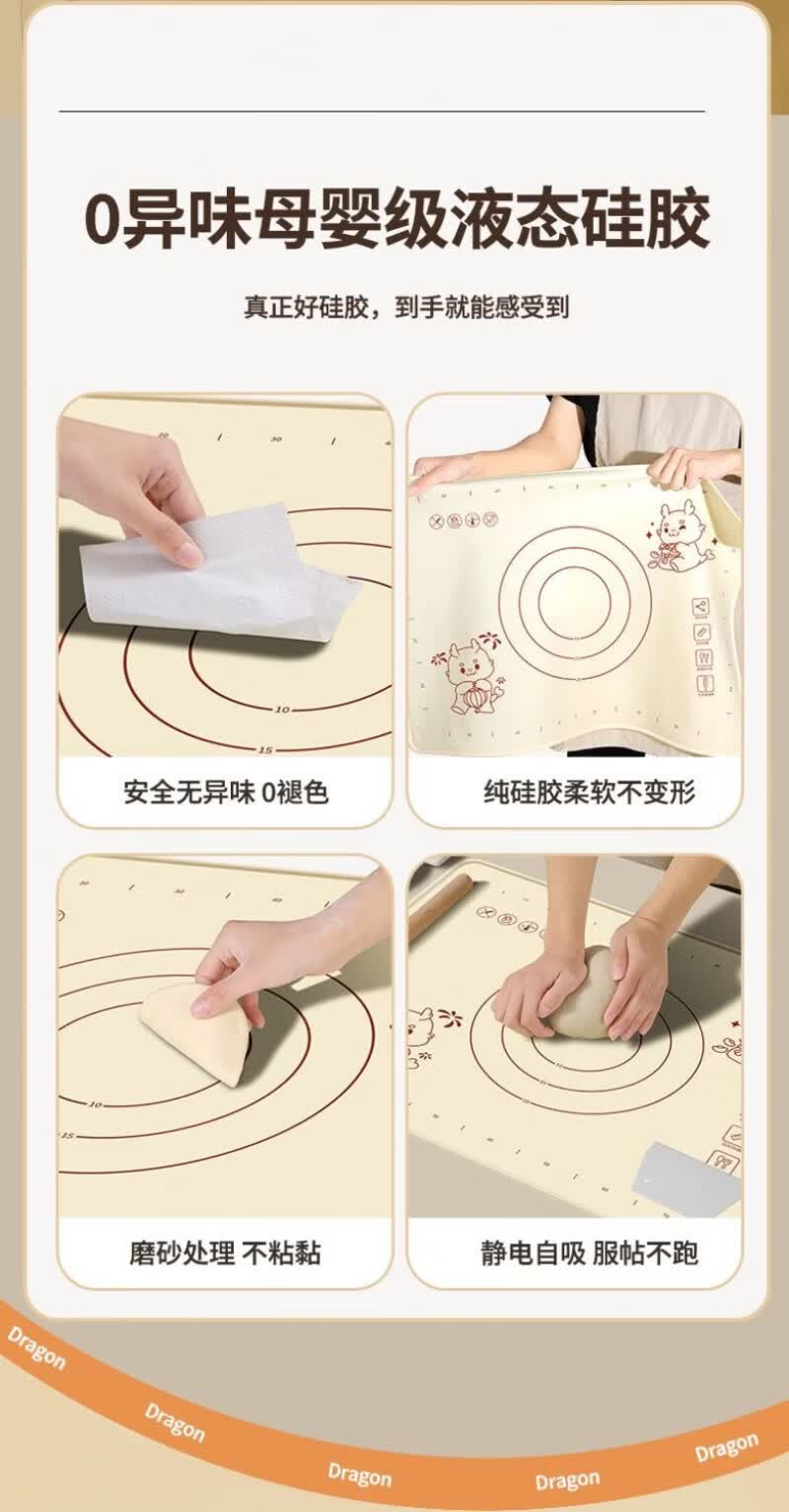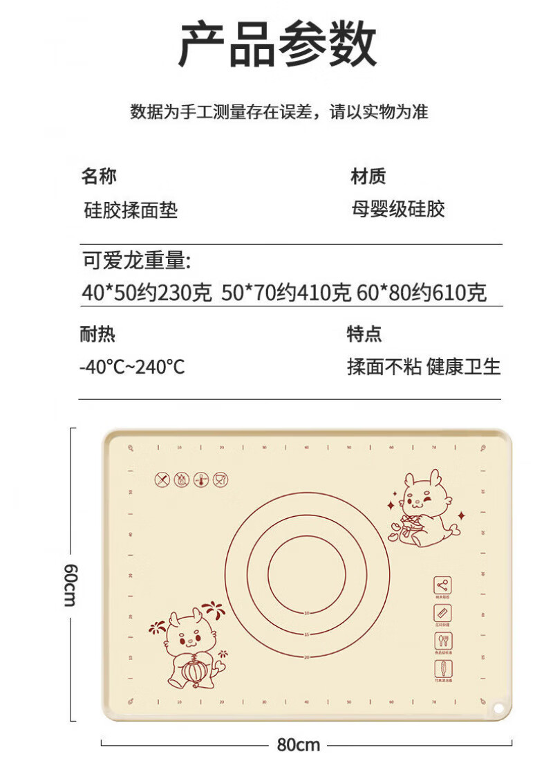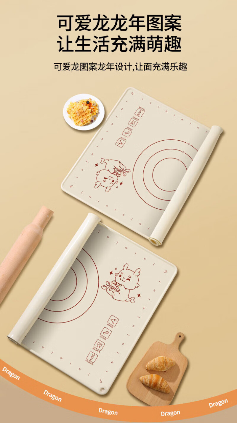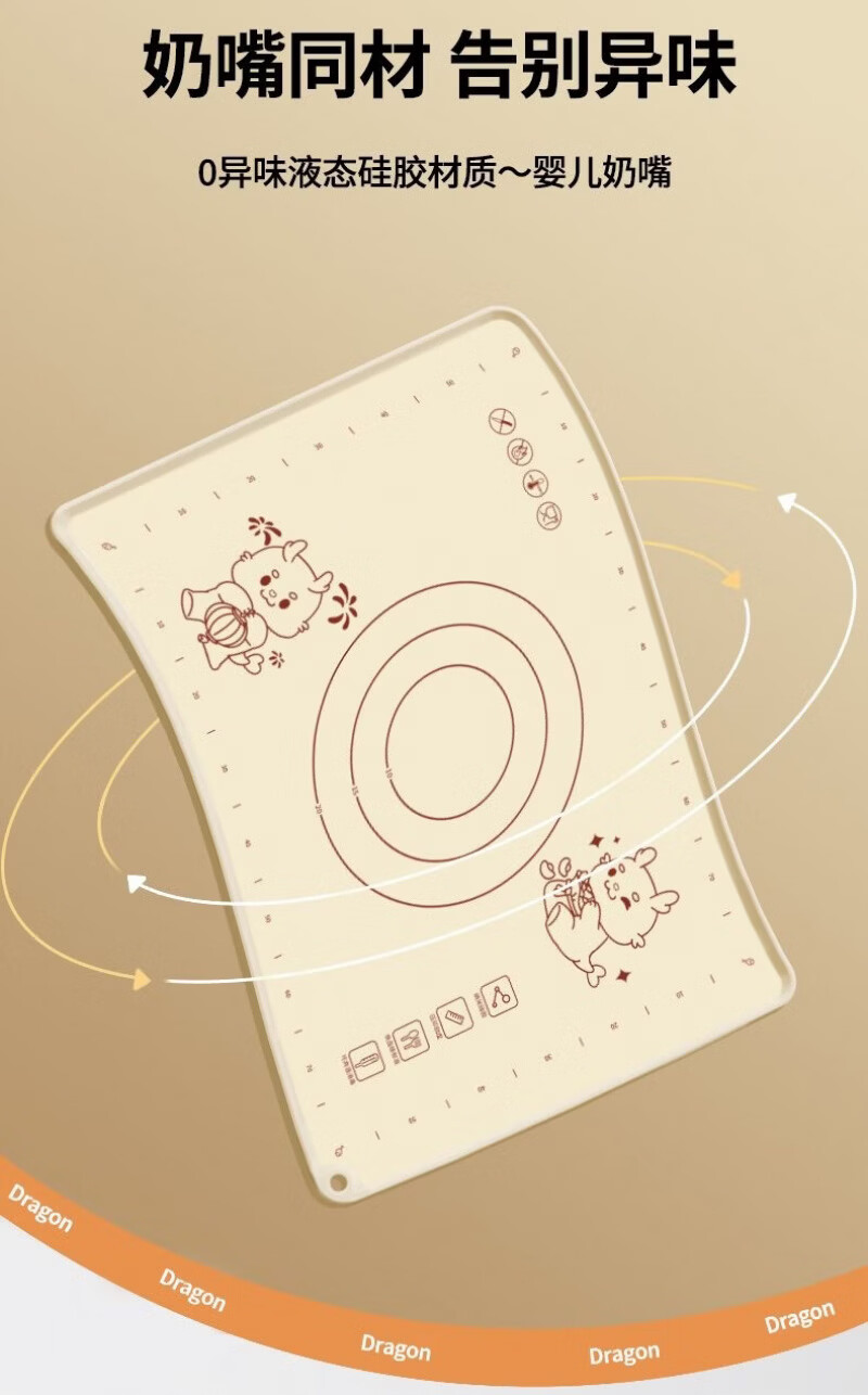 Lovefamily德国硅胶垫揉面垫食品母婴级面板硅胶加厚面垫案板垫烘焙防滑家用 【萌龙款】40*50+面刀+擀面杖+收纳袋