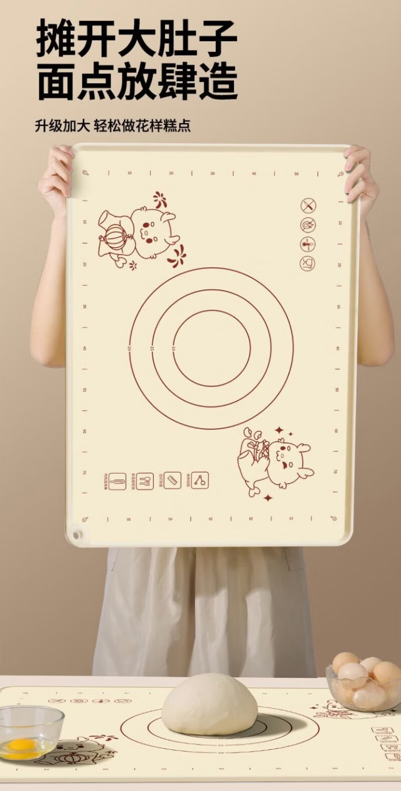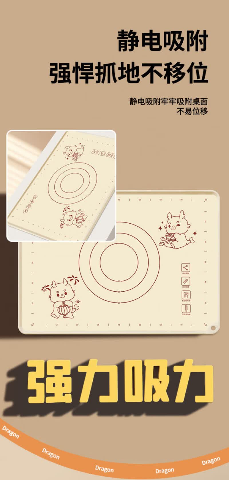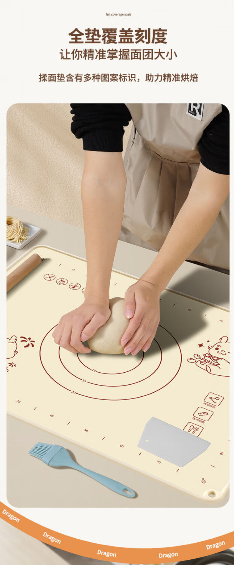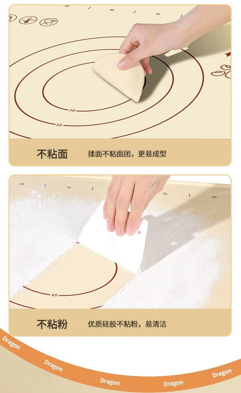 Lovefamily德国硅胶垫揉面垫食品母婴级面板硅胶加厚面垫案板垫烘焙防滑家用 【萌龙款】40*50+面刀+擀面杖+收纳袋