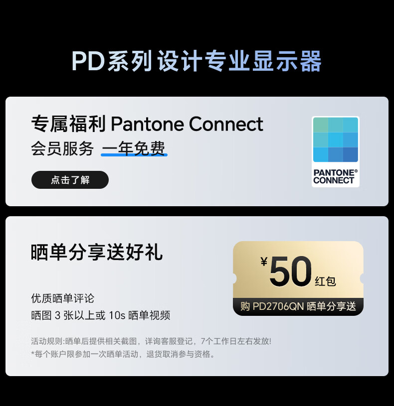 明基(BenQ)PD2706QN 27英寸2K100Hz HDR Type-C供电 双P3色彩模式 全链路色准设计修图电脑显示器
