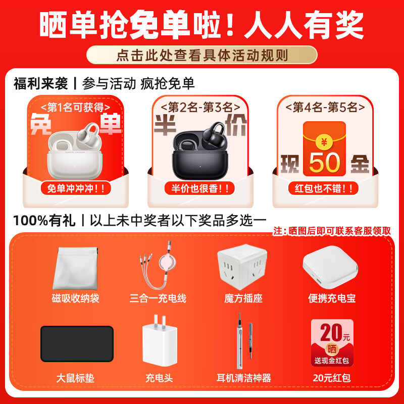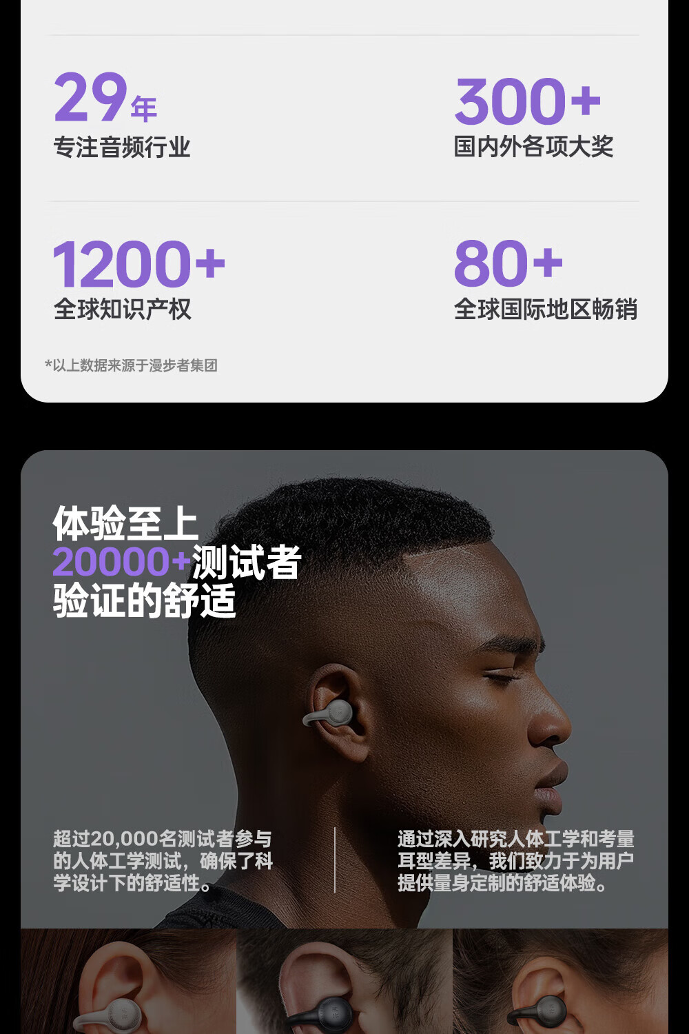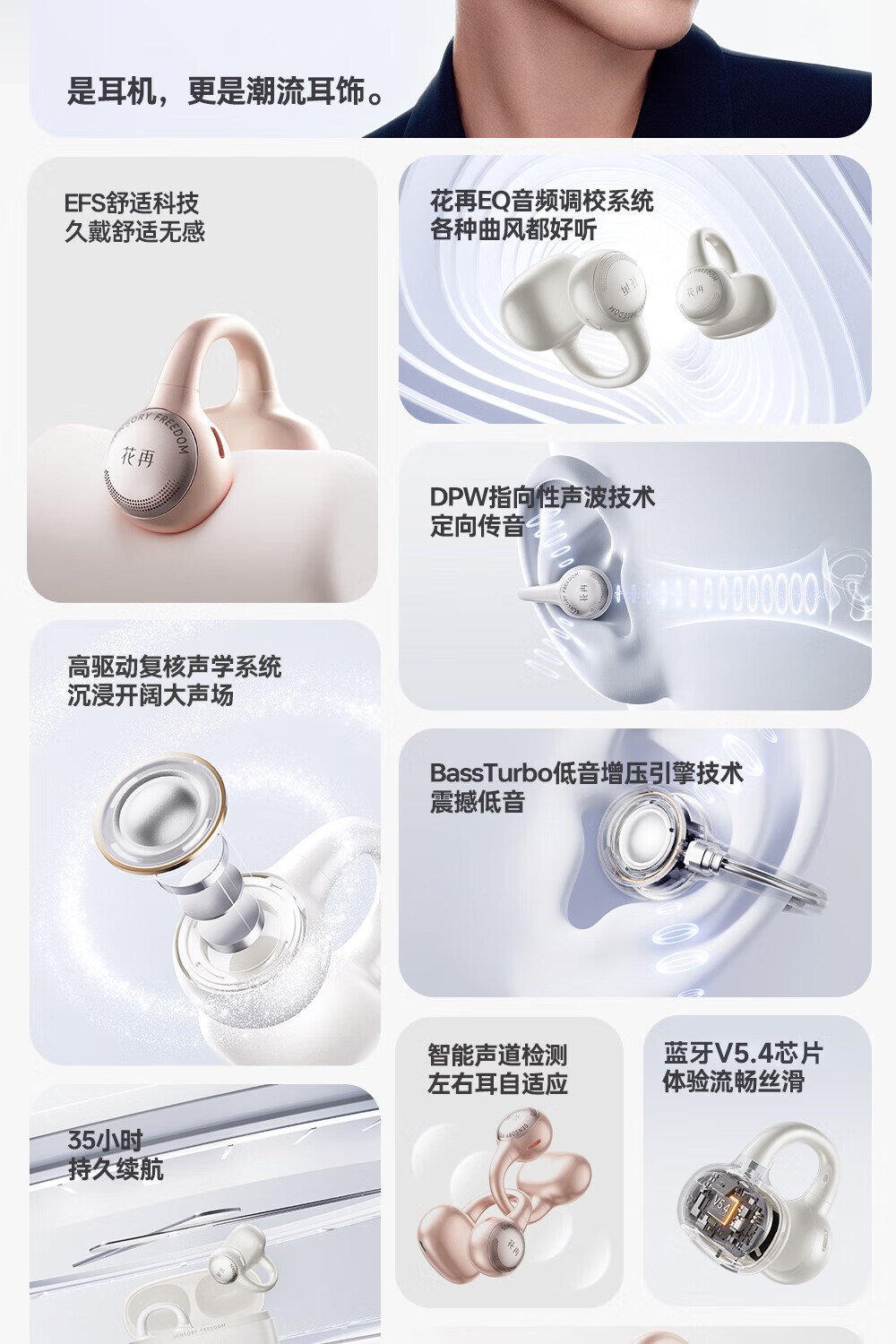 漫步者(EDIFIER)花再Zero Clip耳夹开放式真无线蓝牙耳机不入耳挂 骨传导概念运动跑步降噪适用于苹果Pro华为小米 琉璃黑+收纳袋+入会减5元