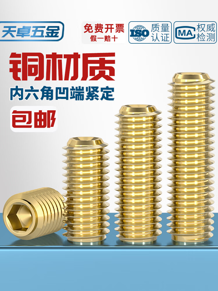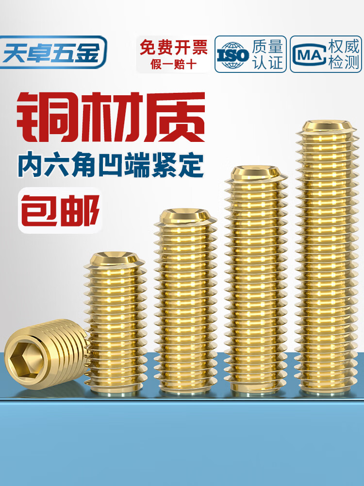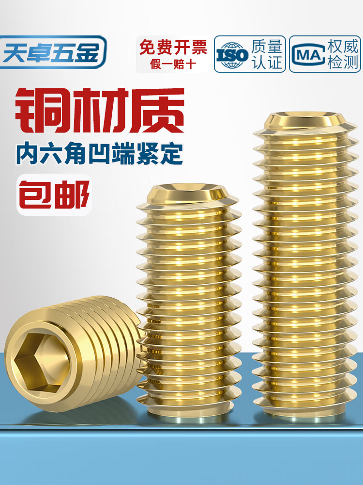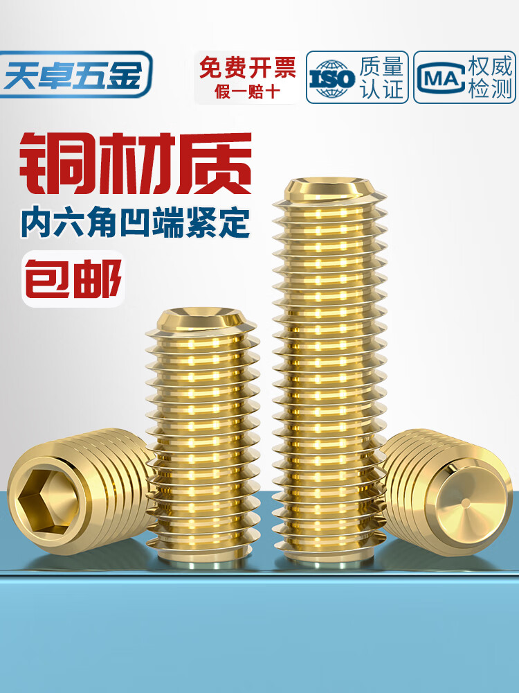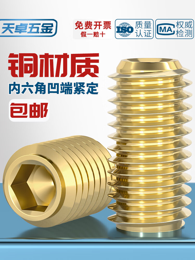 天卓五金国标纯黄铜凹端紧定螺丝无头内六角铜止付机米顶丝全3M4M5M6M8M10 M8*40【1个】