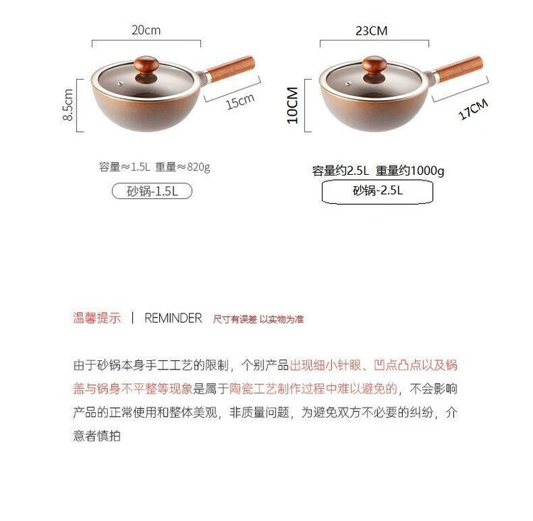 简漾一人食小砂锅土锅宝宝辅食锅煲仔饭陶土抗粘无涂层单手柄陶土锅 1.5L 适合1-2人 1ml