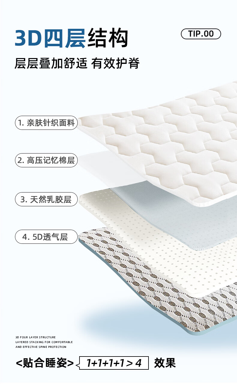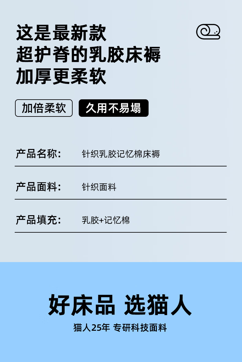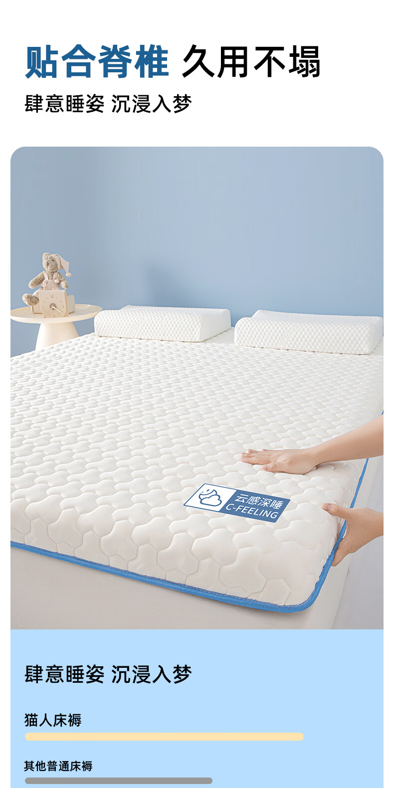 猫人(MiiOW)深睡记忆棉床垫遮盖物家用卧室软垫海绵垫子床褥子宿舍单双人租房 云感三棱白-蓝边-厚约9cm 180*200cm【0压深睡眠】