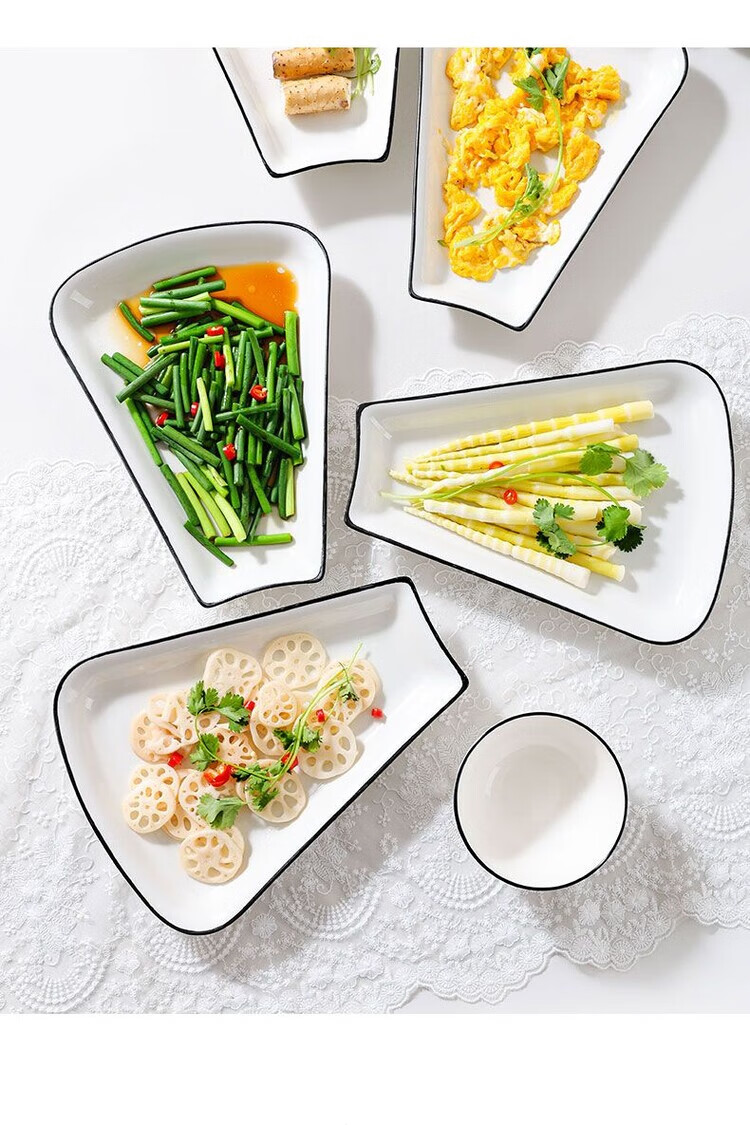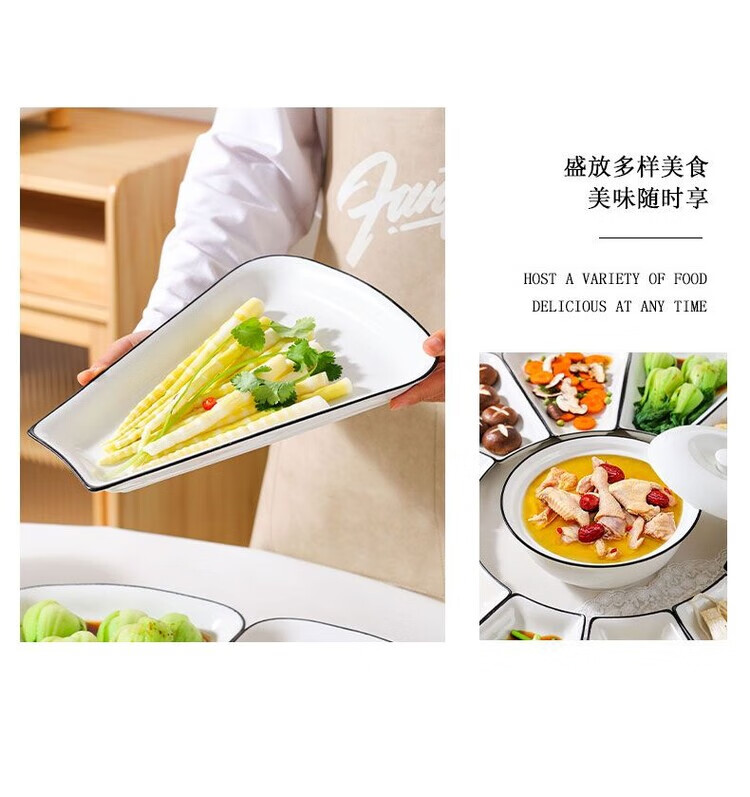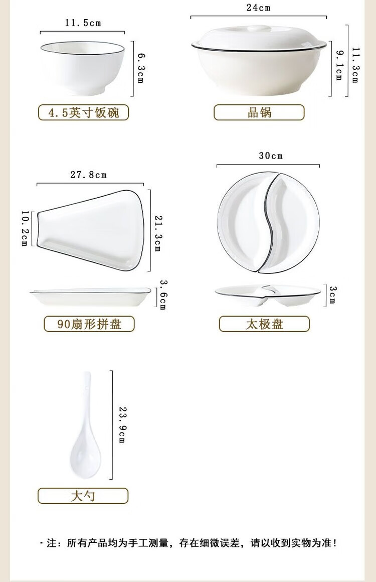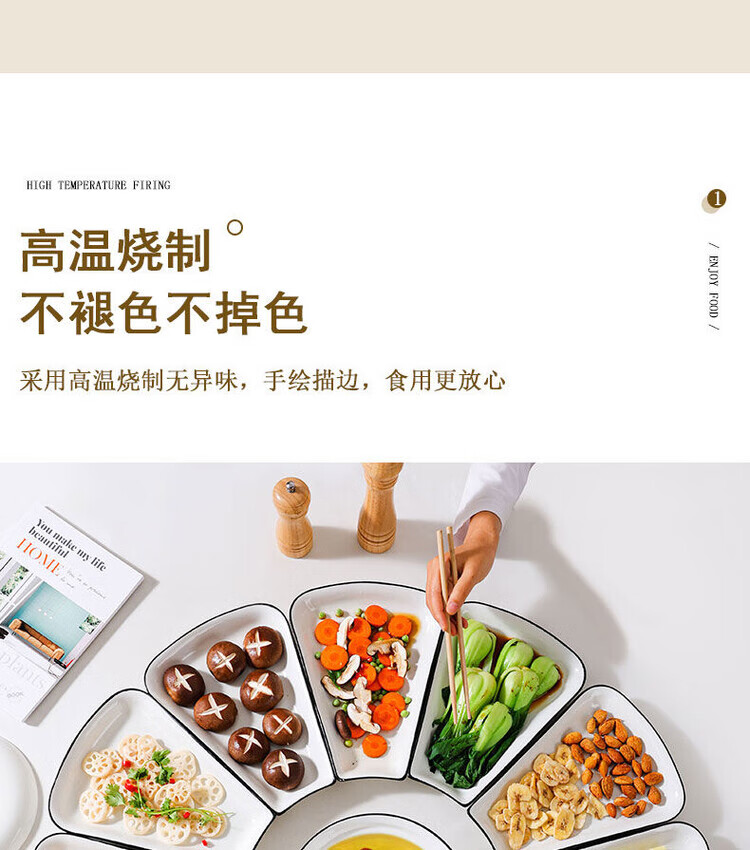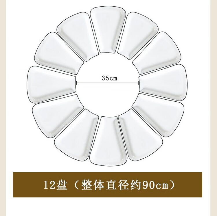 咏夏团圆拼盘餐具陶瓷组合家用过年套装创意聚餐扇形网红盘子菜盘碗碟 90扇形盘12盘+品锅+12小碗
