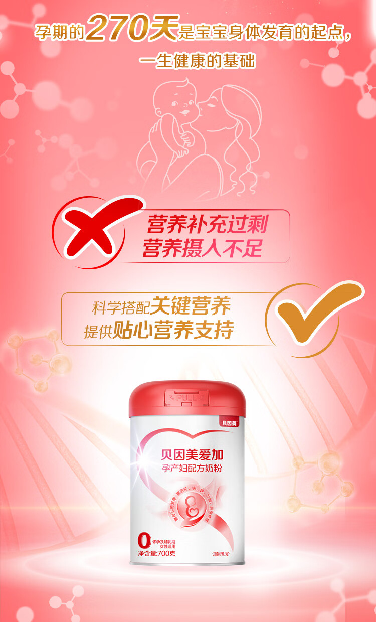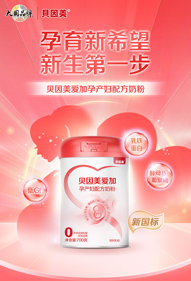 贝因美爱加低GI孕妇奶粉大罐700g 含乳铁蛋白膳食纤维 长胎不长肉补气血