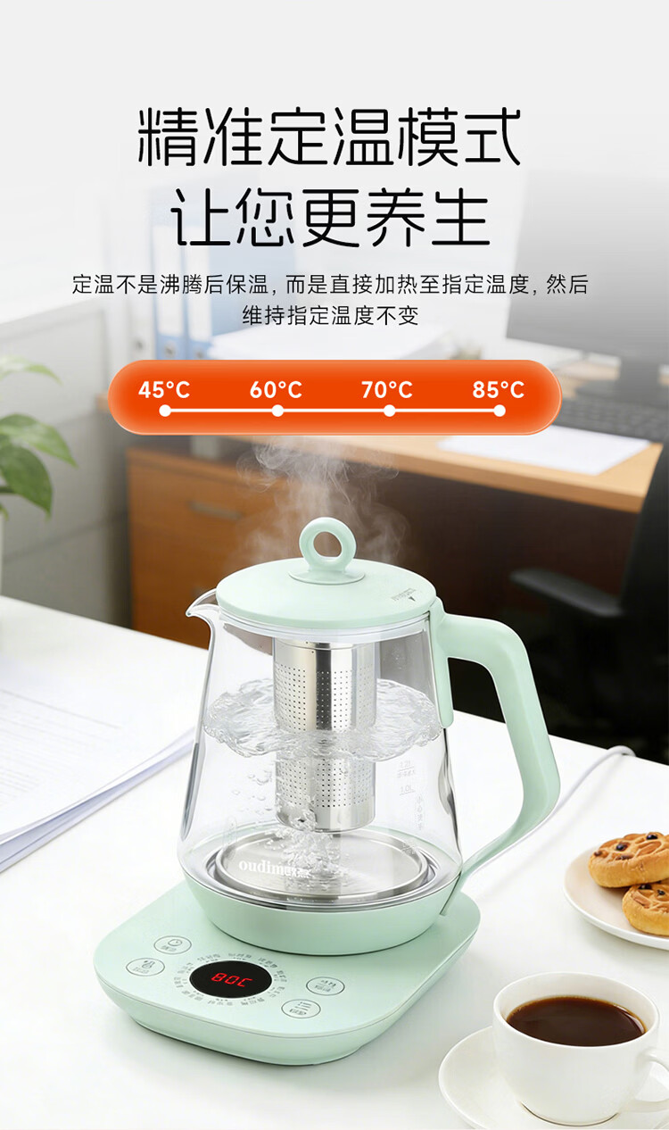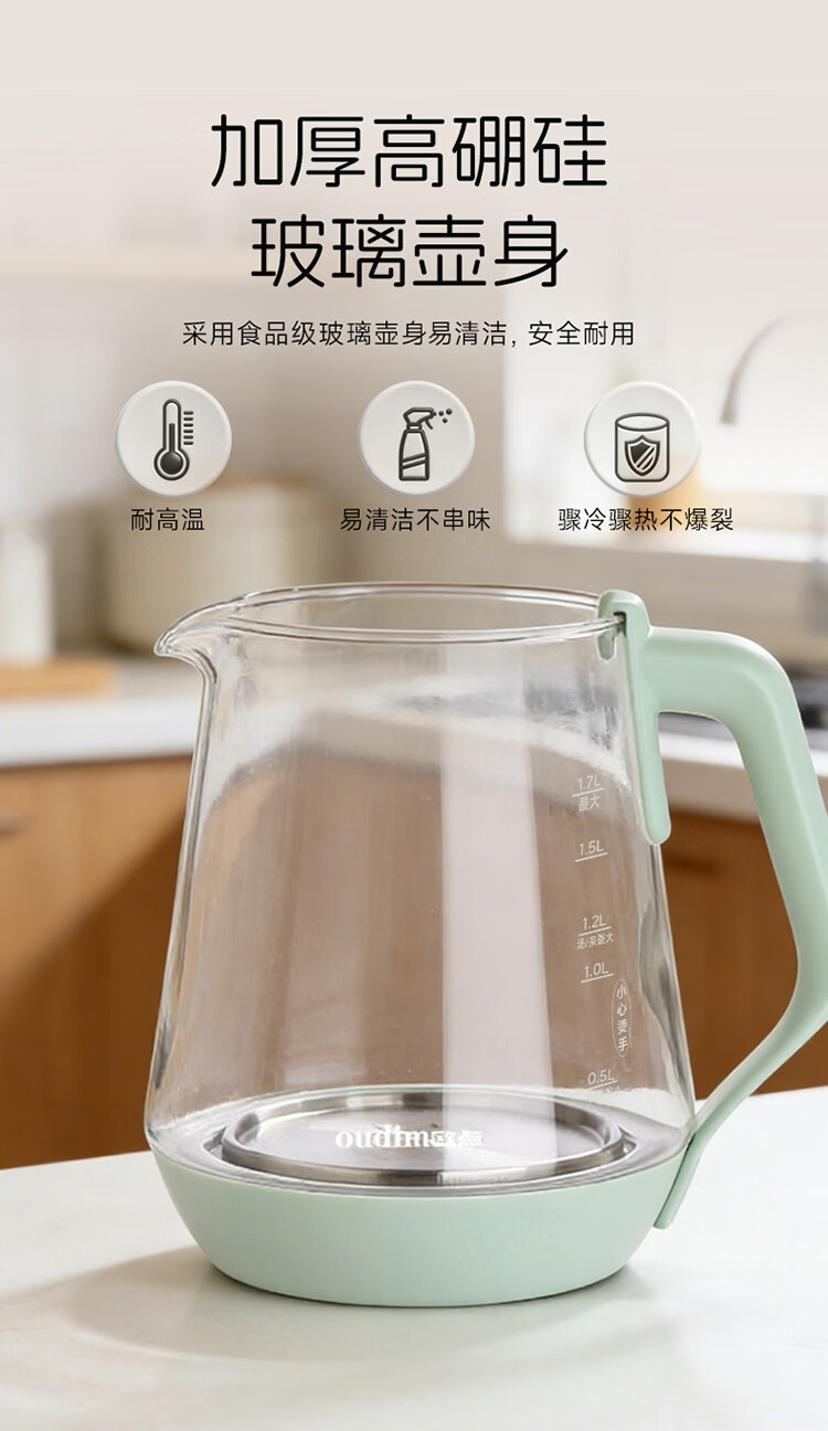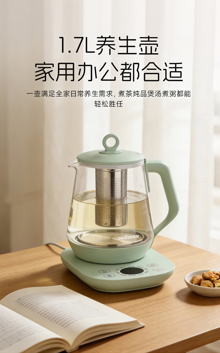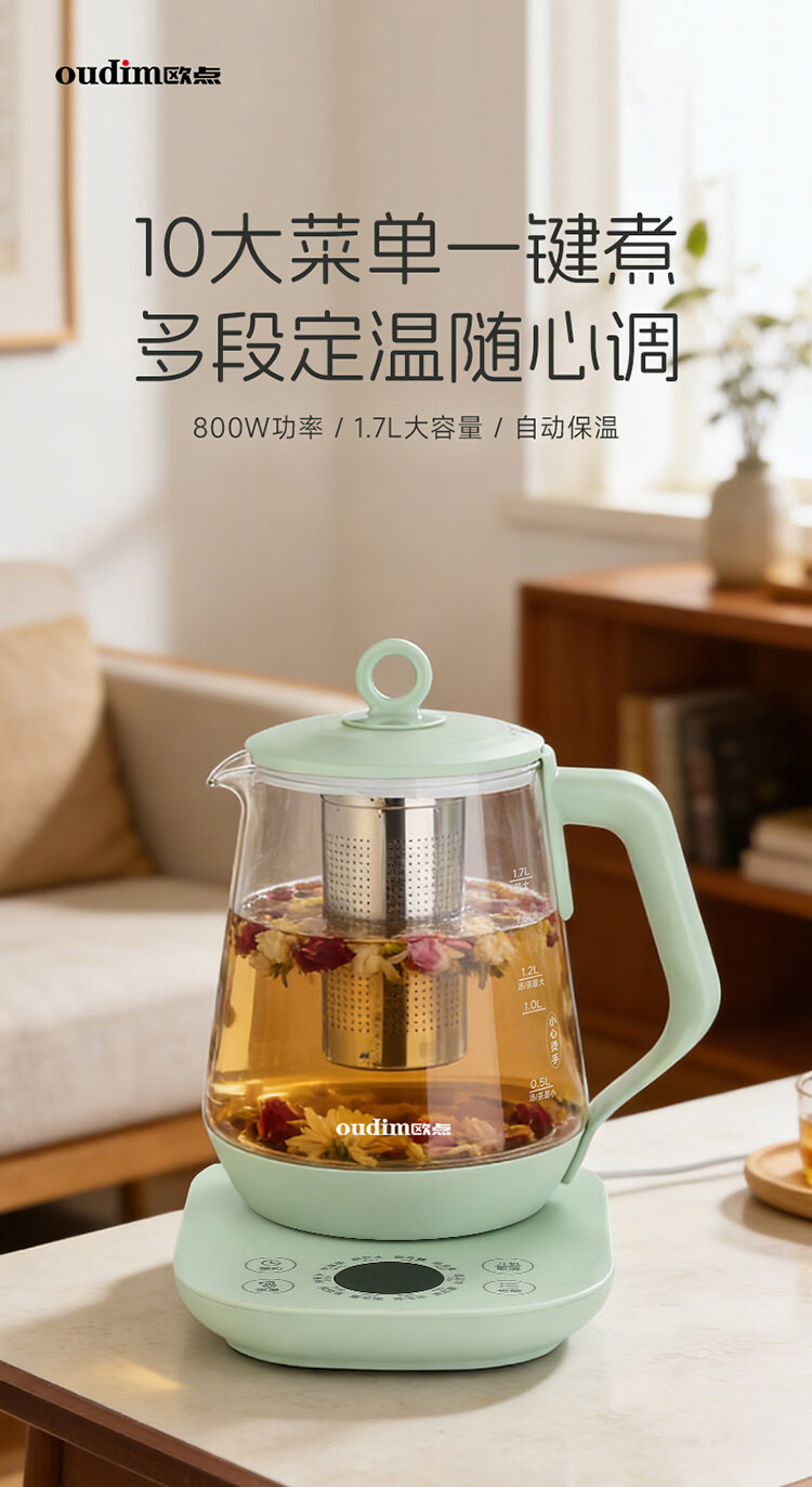 欧点 多功能养生壶玻璃煮茶器定温养身壶容量1.7L恒温壶全自动保温烧水壶温奶器泡茶器电热水壶 【温控款】定温|滤网| 1.7L