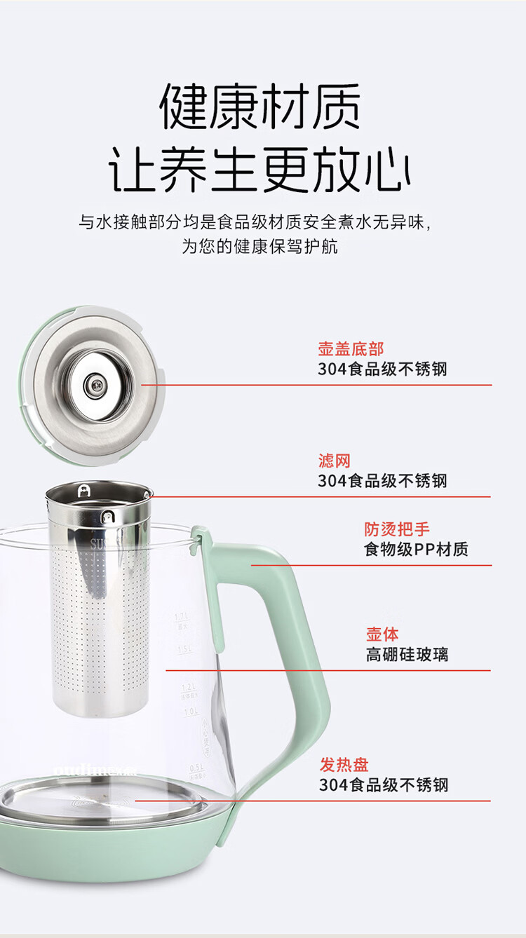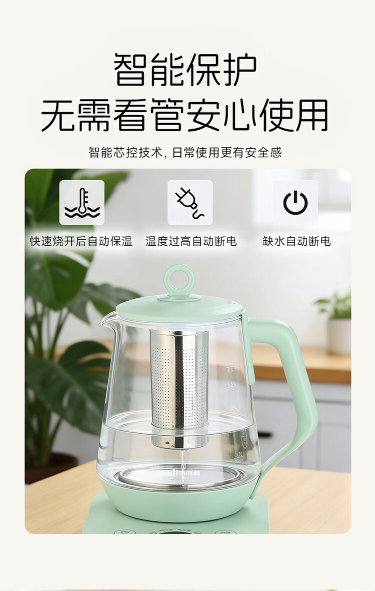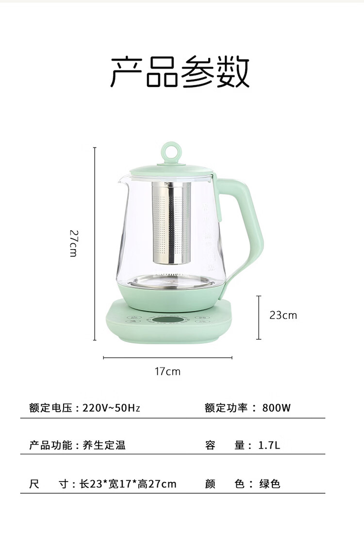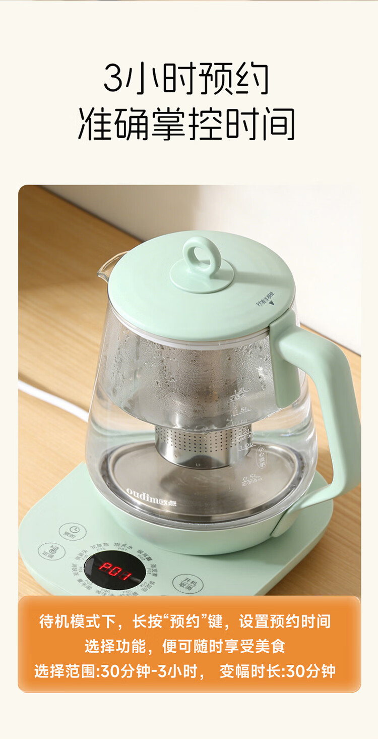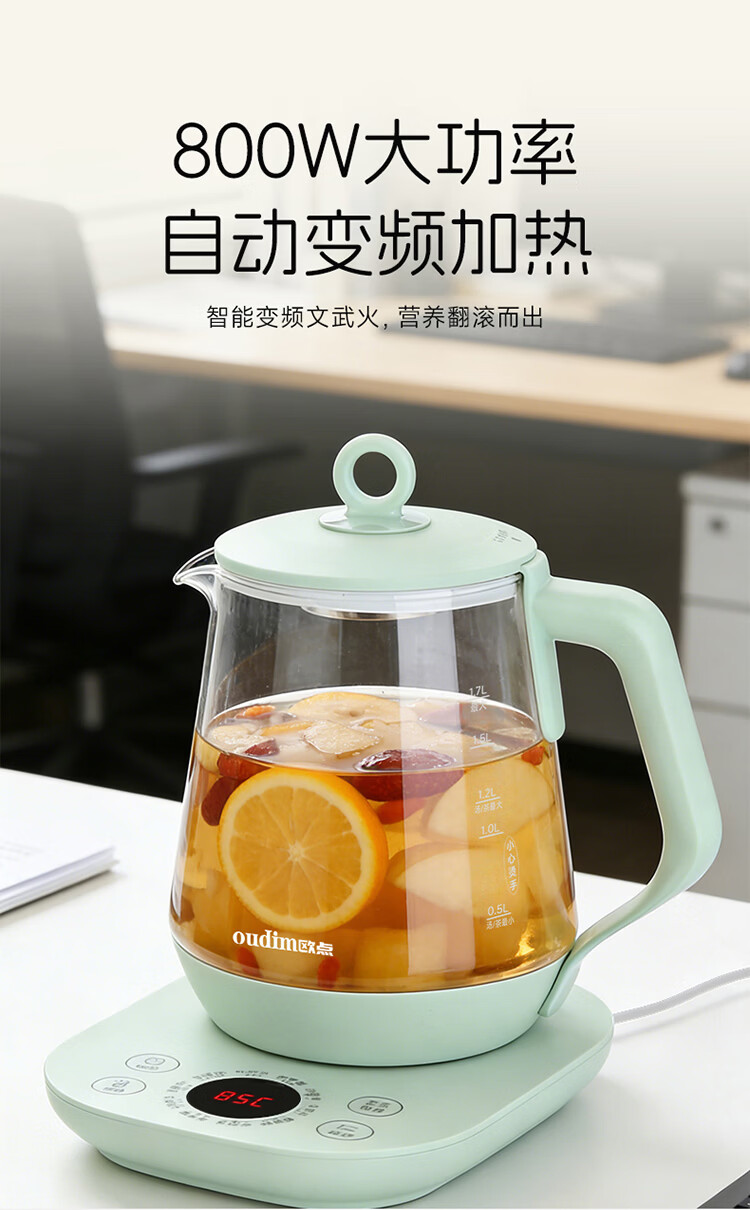 欧点 多功能养生壶玻璃煮茶器定温养身壶容量1.7L恒温壶全自动保温烧水壶温奶器泡茶器电热水壶 【温控款】定温|滤网| 1.7L