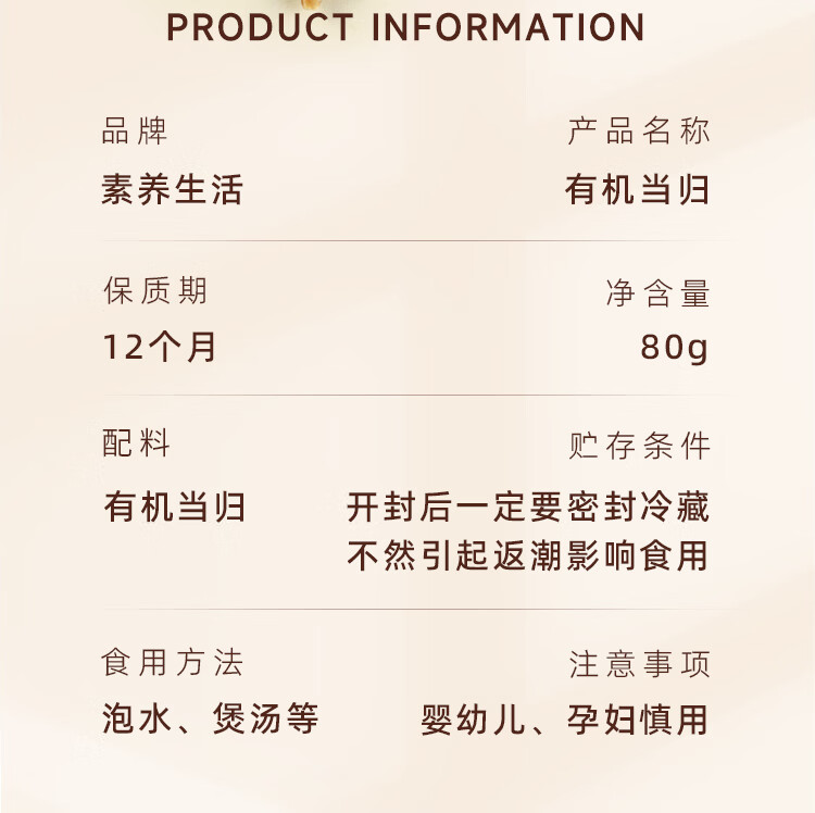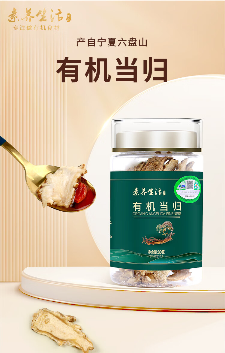 素养生活有机当归80g 当归片泡水煲汤食材补血调经可搭配黄芪枸杞党参滋补 80g*1罐