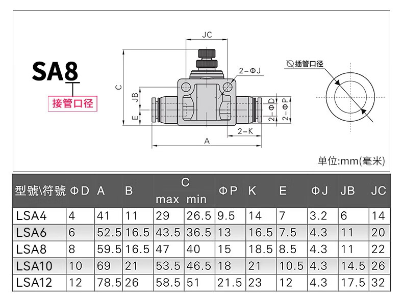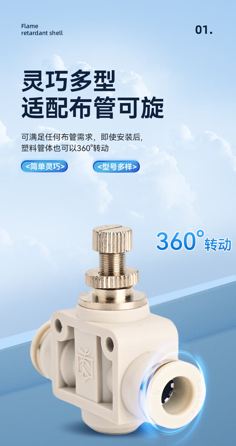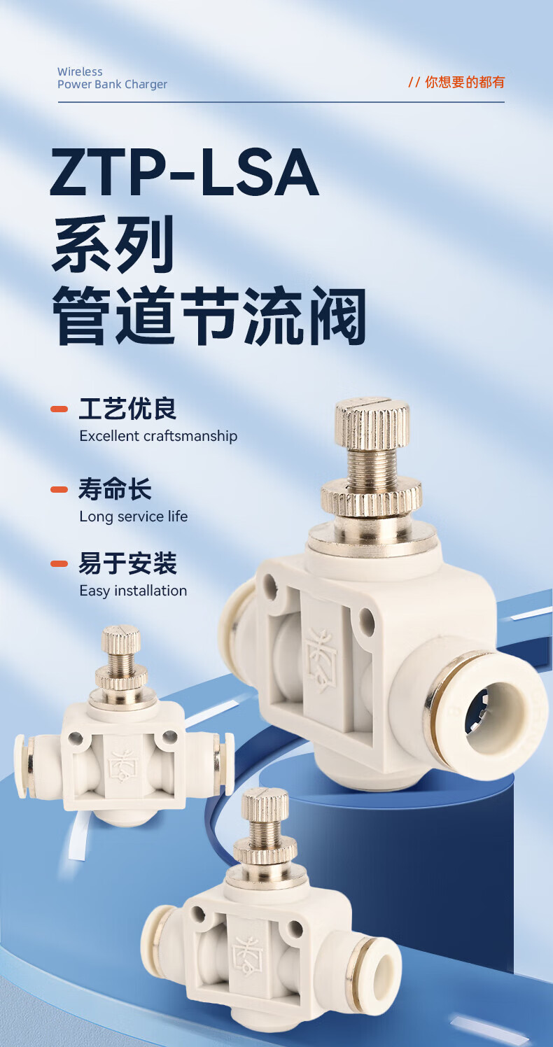 正泰(CHNT)节流阀LSA 气动调节限流阀门快速接头 8 4 6 10 12mm管道式 ZTP-LSA4
