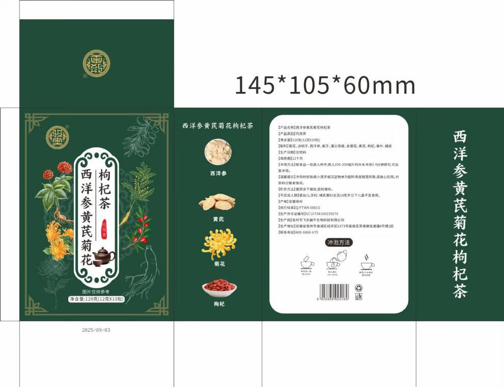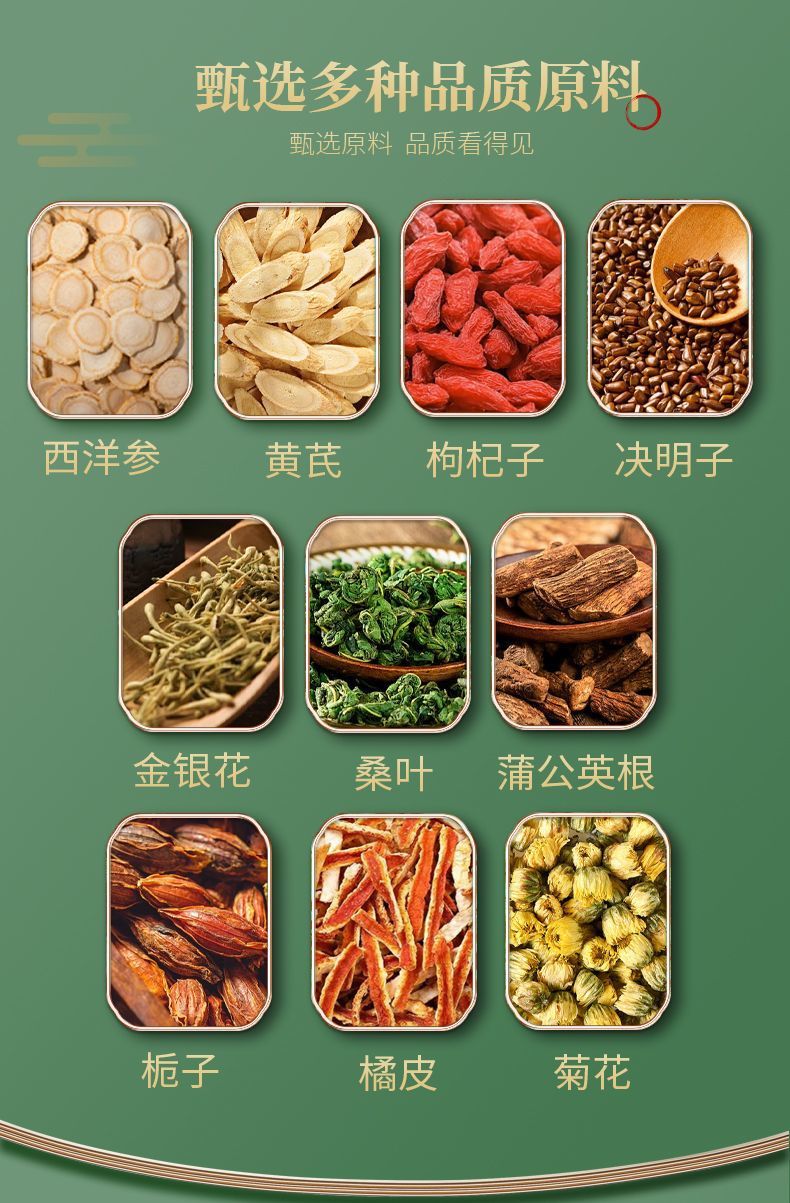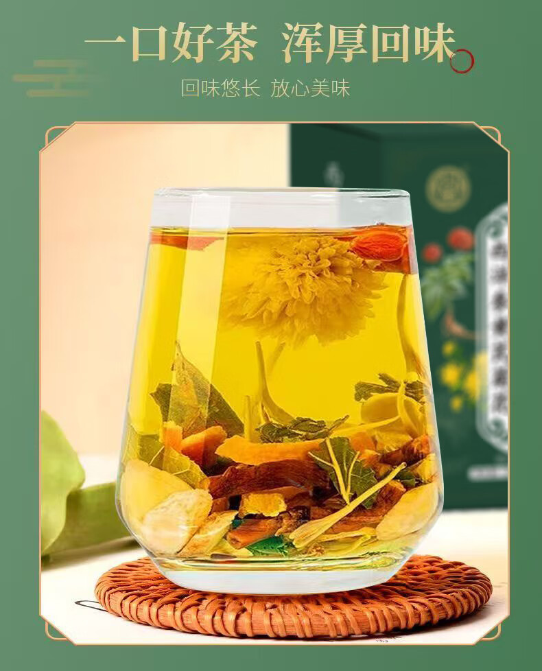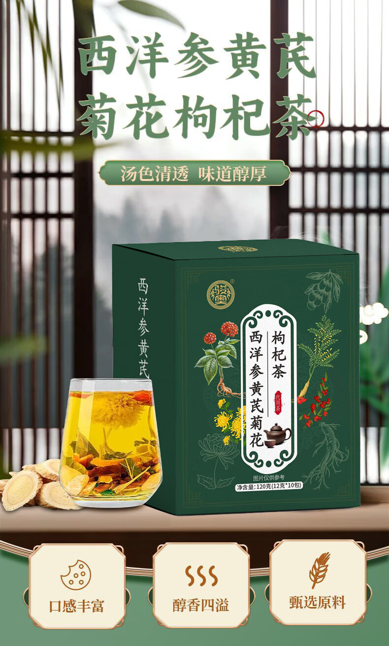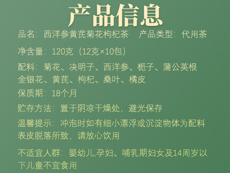 悠茗庭草酉洋参黄芪菊花枸杞茶菊花决明子西洋参栀子蒲公英根金银花组合茶 发1盒【12克×10包】120克