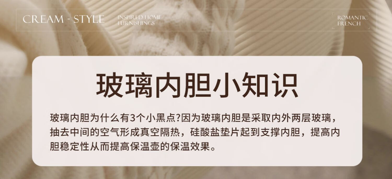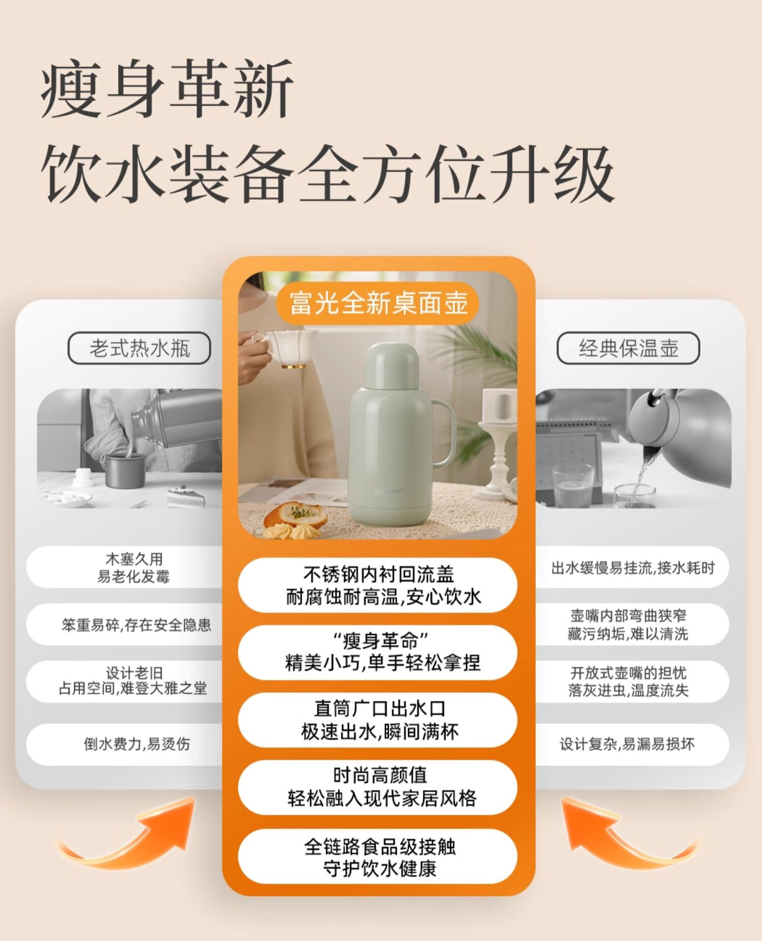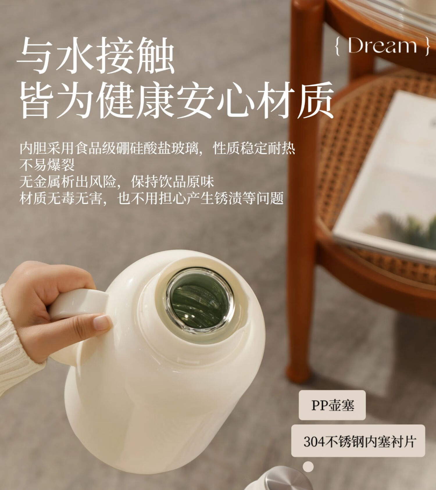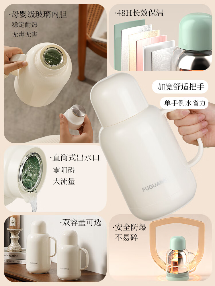 富光保温壶大容量保温水壶家用宿舍热水壶学生热水瓶办公室暖水壶 云纱白 1000mL 【48小时保温-母婴级玻璃内
