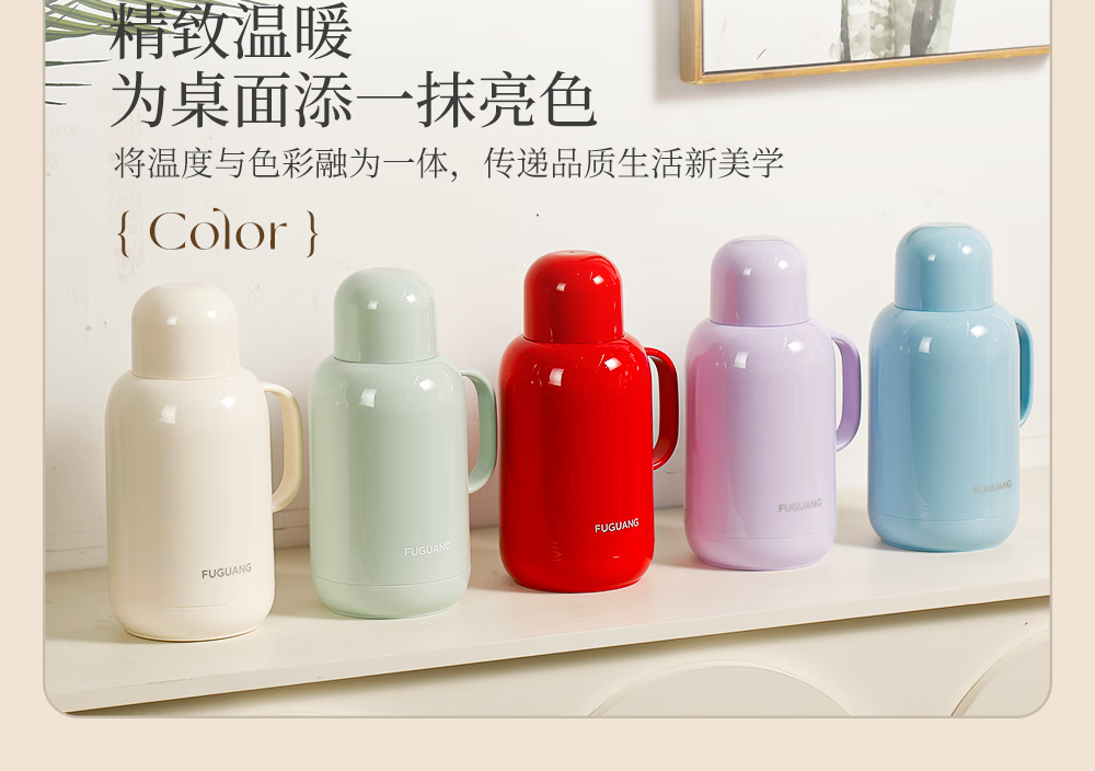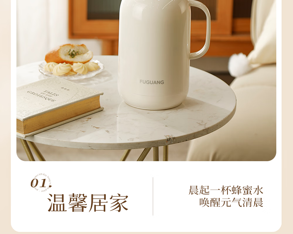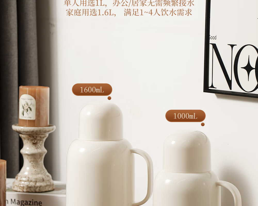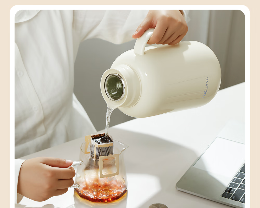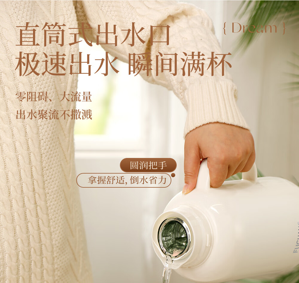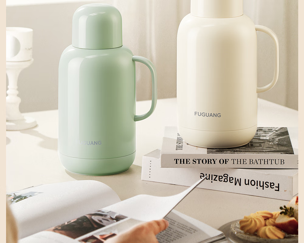 富光保温壶大容量保温水壶家用宿舍热水壶学生热水瓶办公室暖水壶 云纱白 1000mL 【48小时保温-母婴级玻璃内