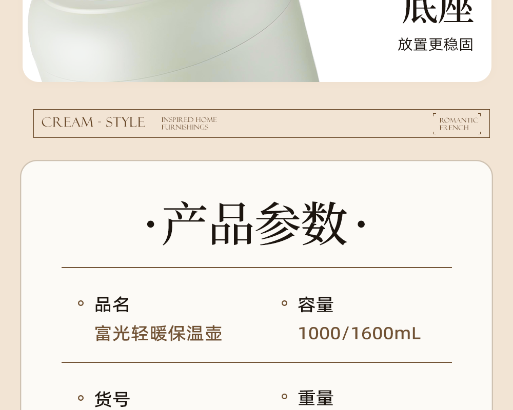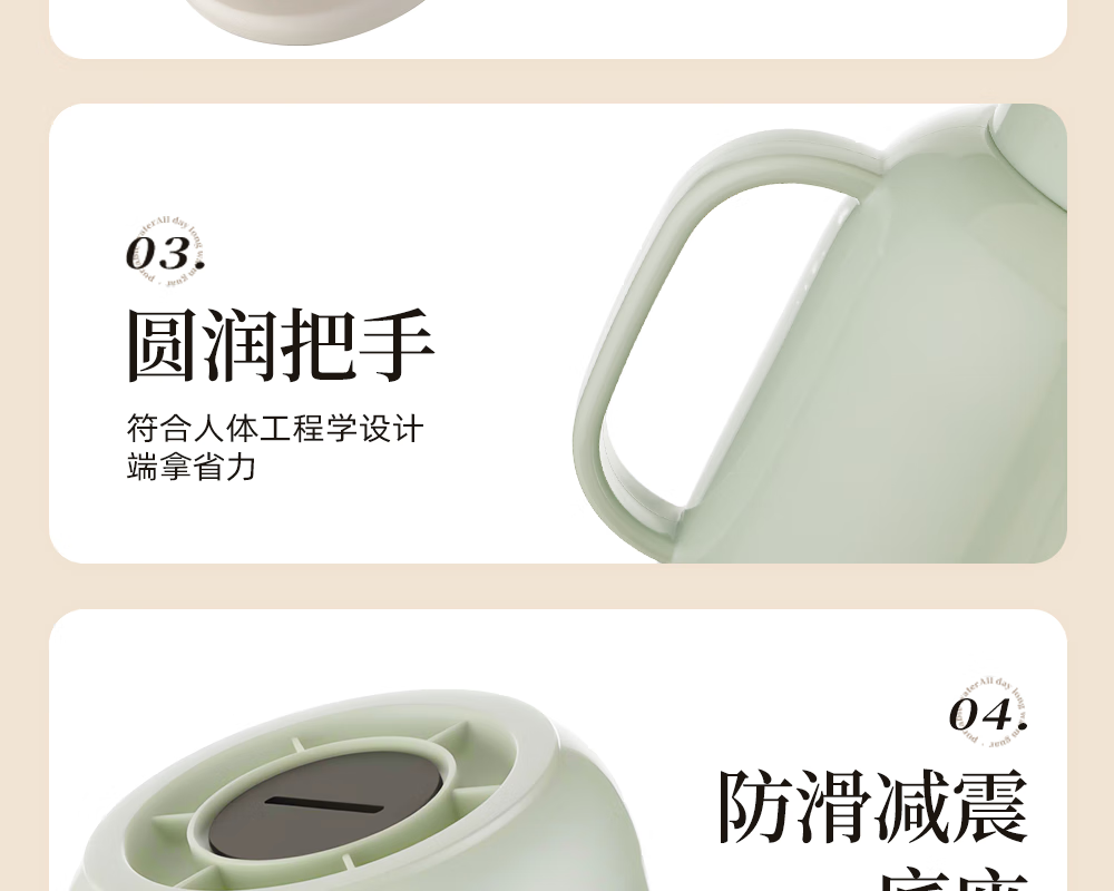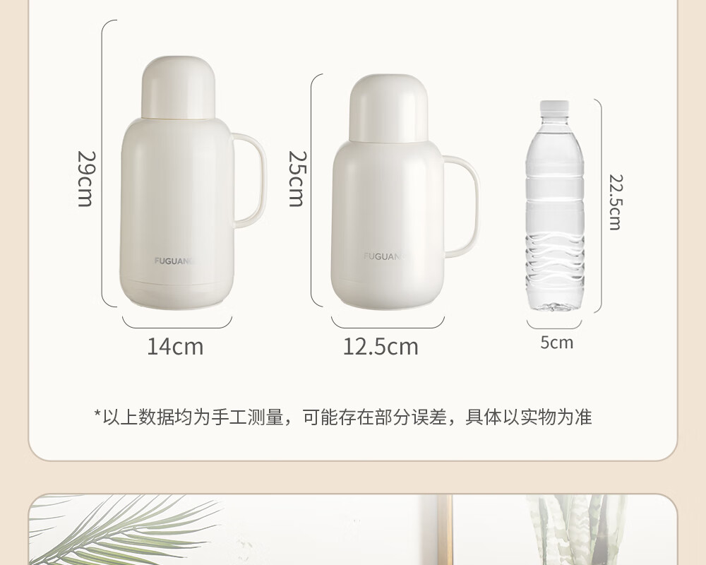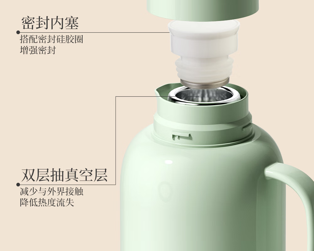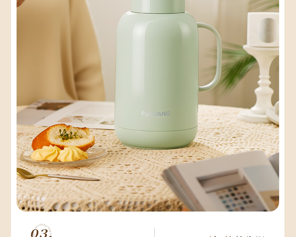 富光保温壶大容量保温水壶家用宿舍热水壶学生热水瓶办公室暖水壶 云纱白 1000mL 【48小时保温-母婴级玻璃内