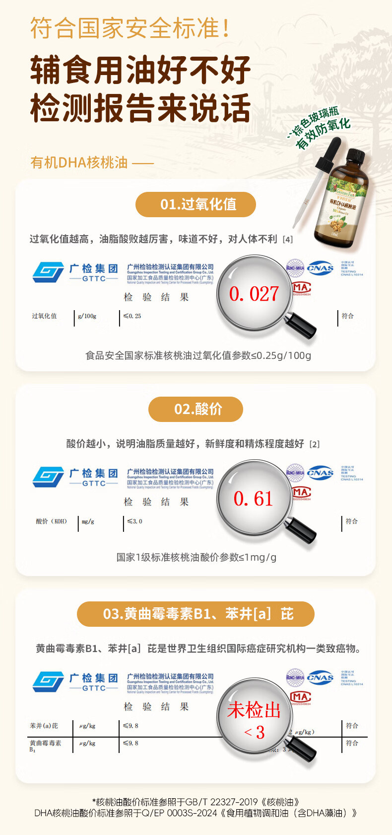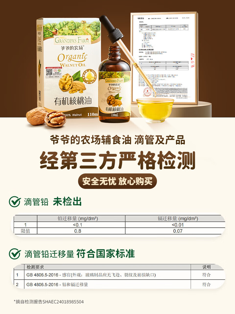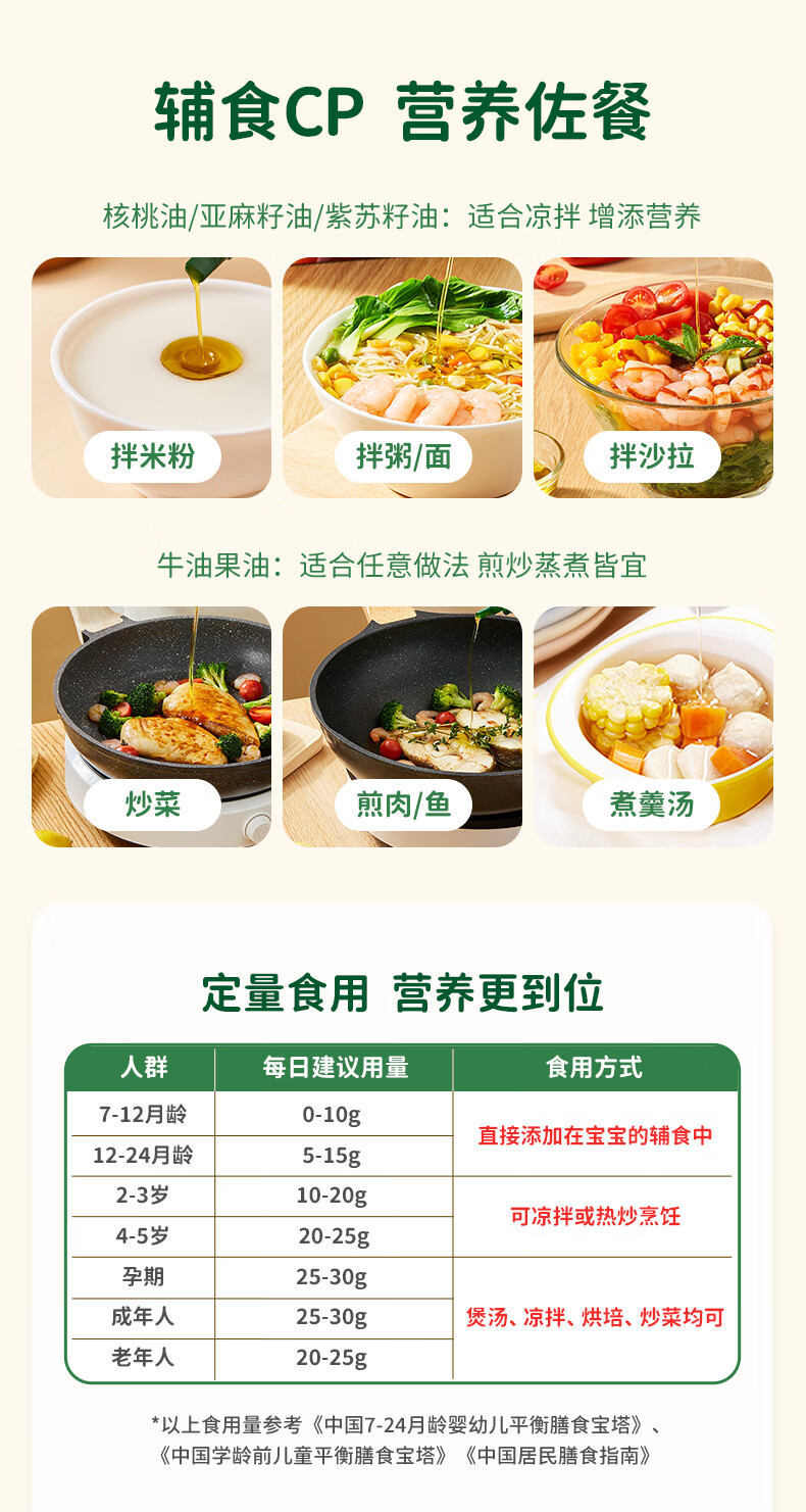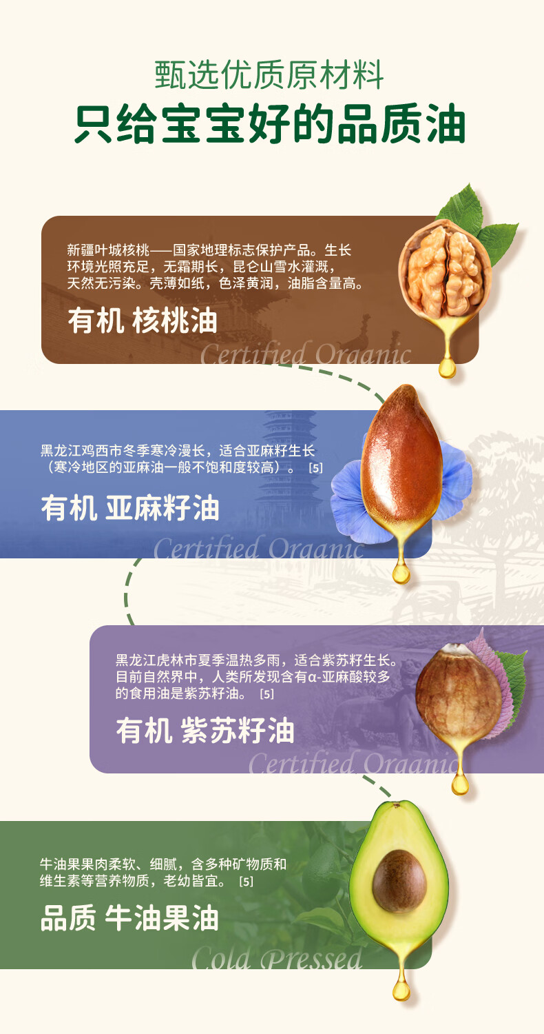 爷爷的农场核桃亚麻籽牛油果油宝宝辅食油热炒油 滴管小瓶营养食用油 DHA有机核桃油110ml