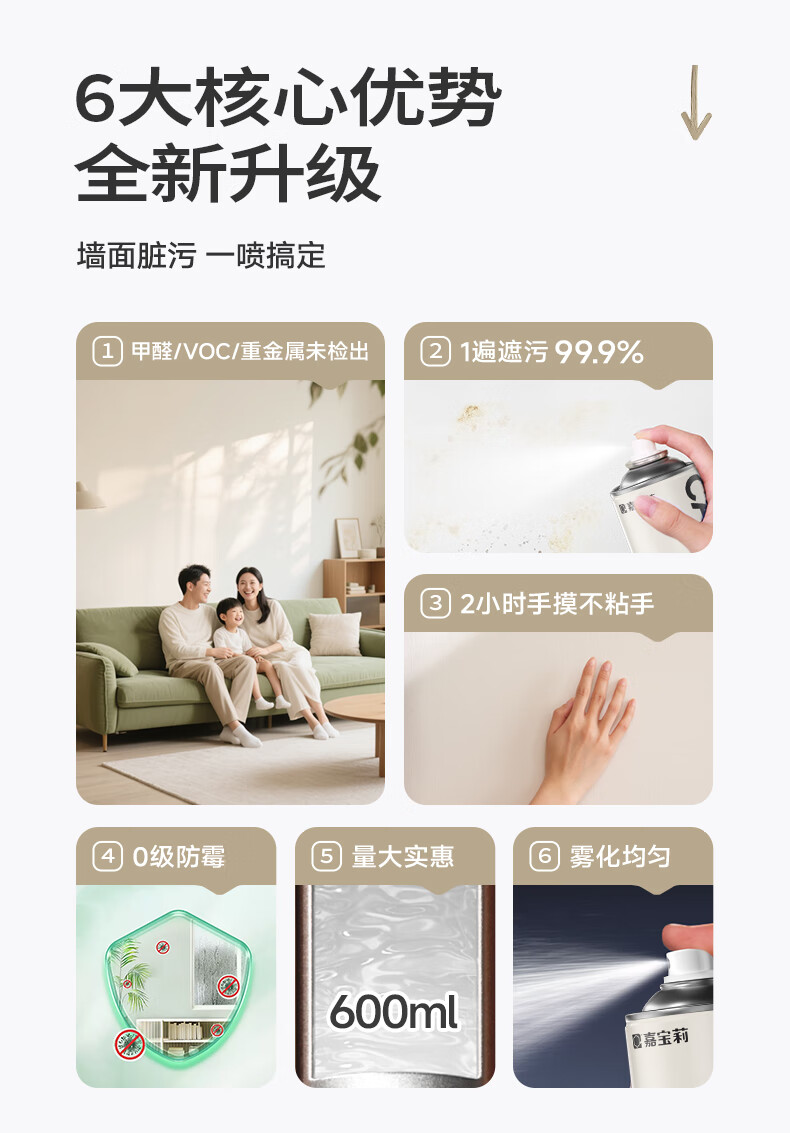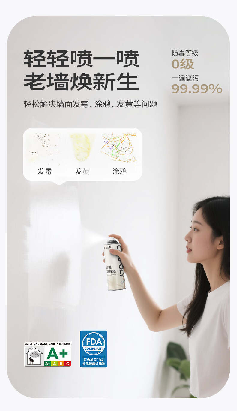 嘉宝莉墙面修复自喷漆补墙膏乳胶漆墙面修补膏白墙面去污修复神器白漆600ml