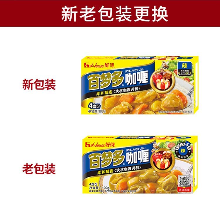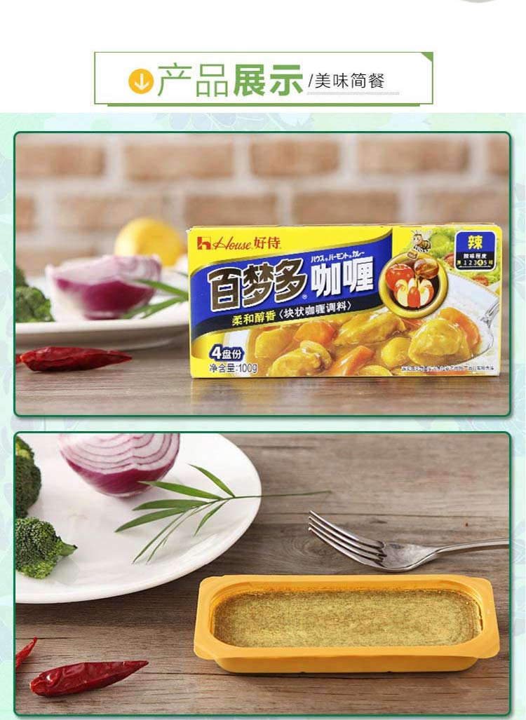 好侍(HOUSE)百梦多咖喱块 辣味 100g/盒 日式块状咖喱调味料 2-4人份