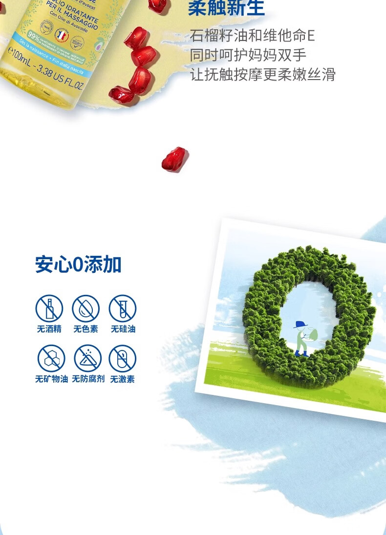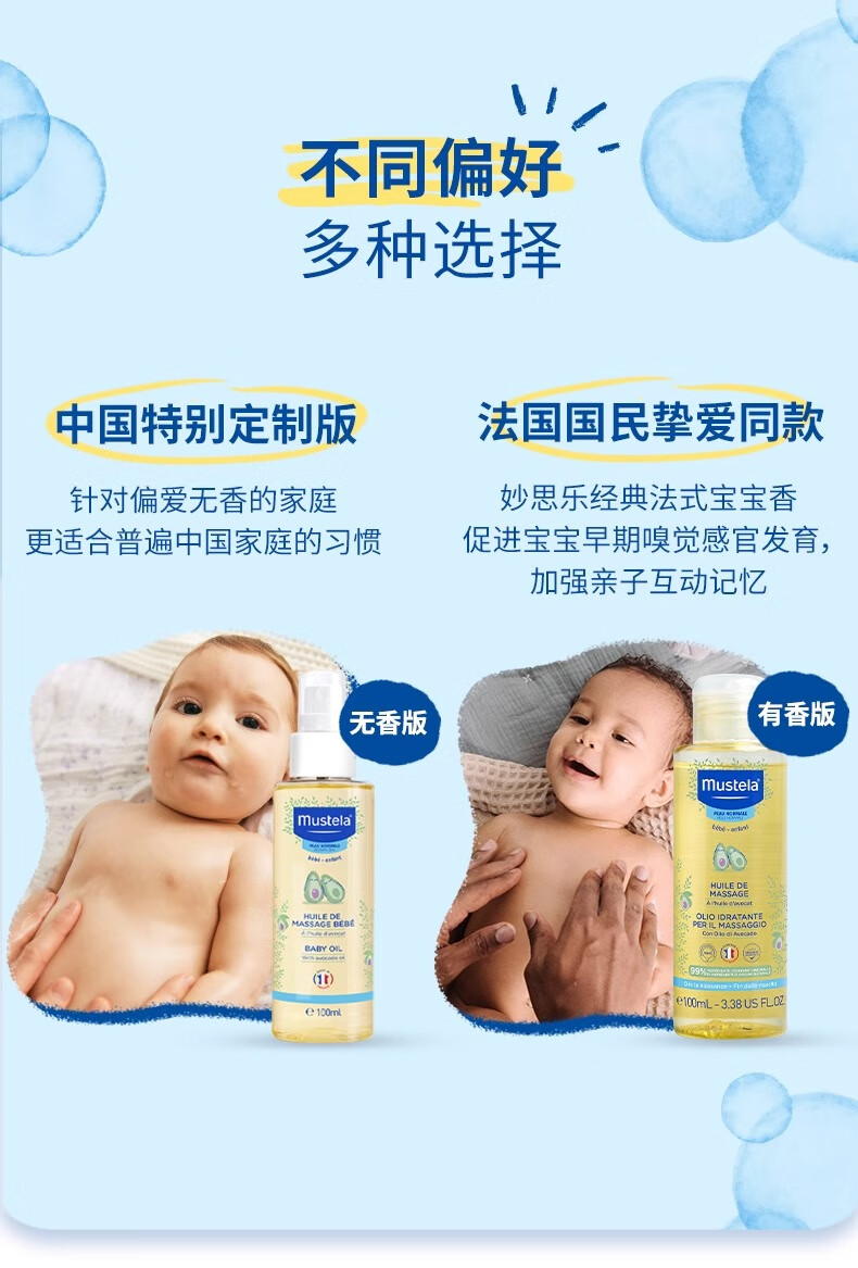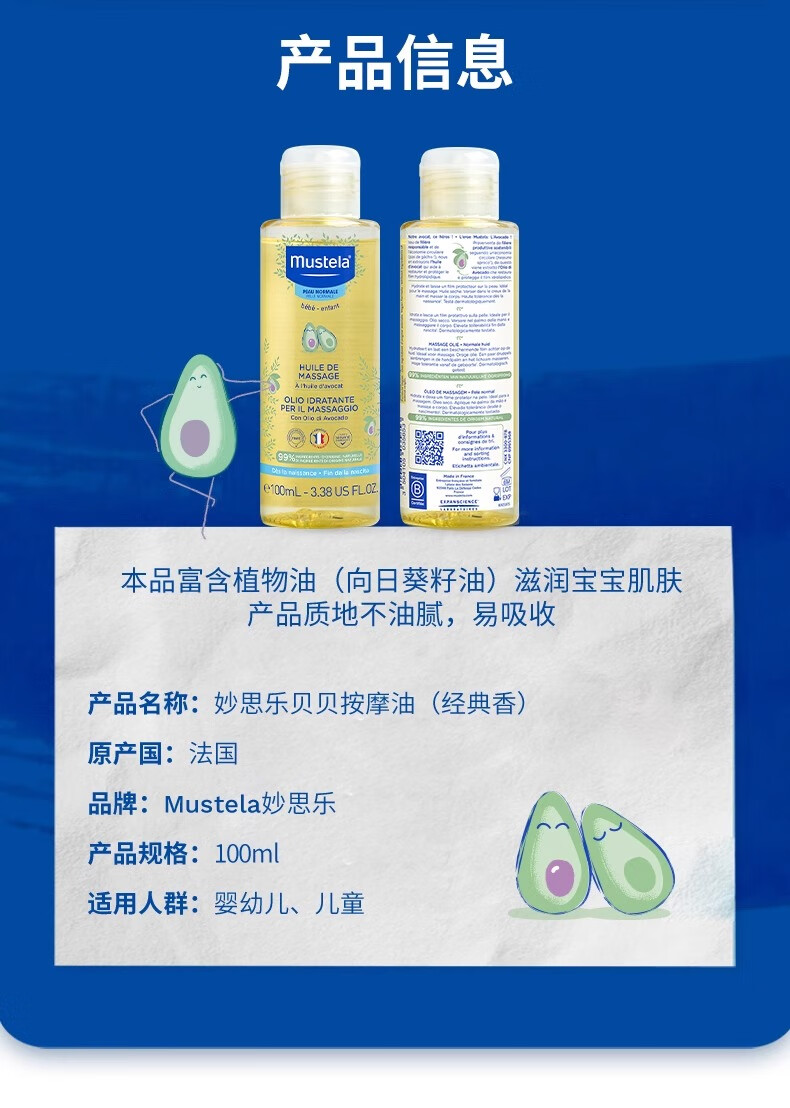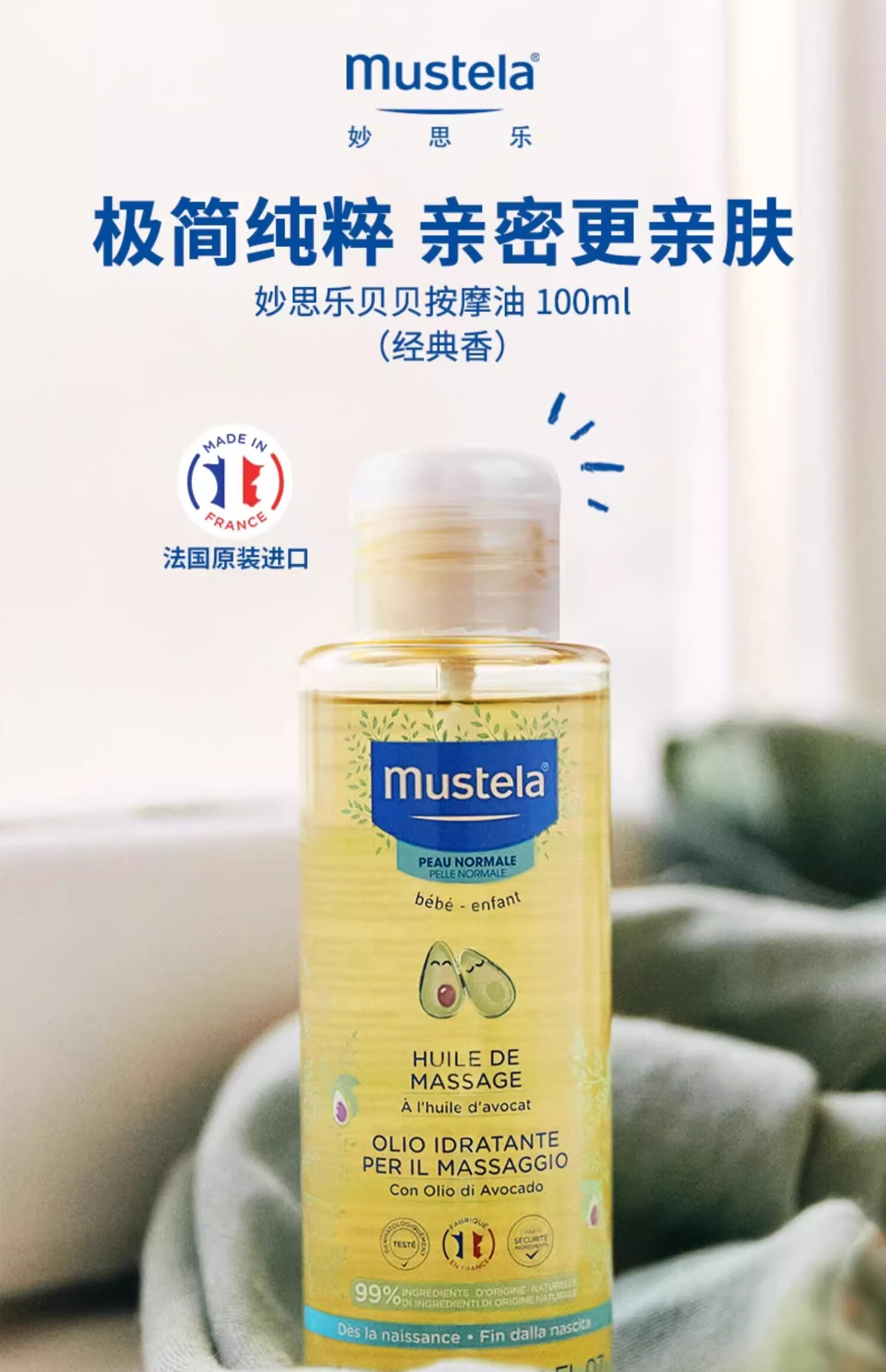 妙思乐(MUSTELA)法国进口 有香按摩油100ml婴儿润肤油新生儿抚触油 清爽不油腻