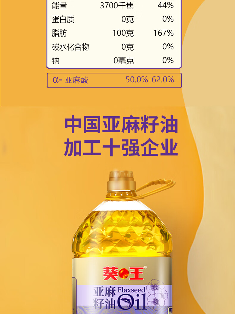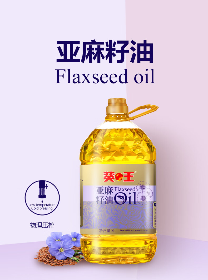 葵王冷榨亚麻籽油5L 物理冷榨一级 含亚麻酸 桶装食用油“南哥”必胜