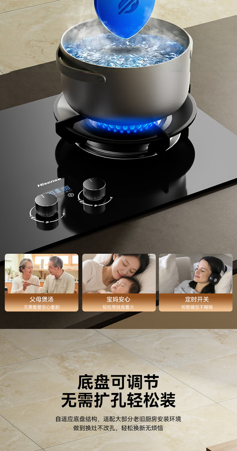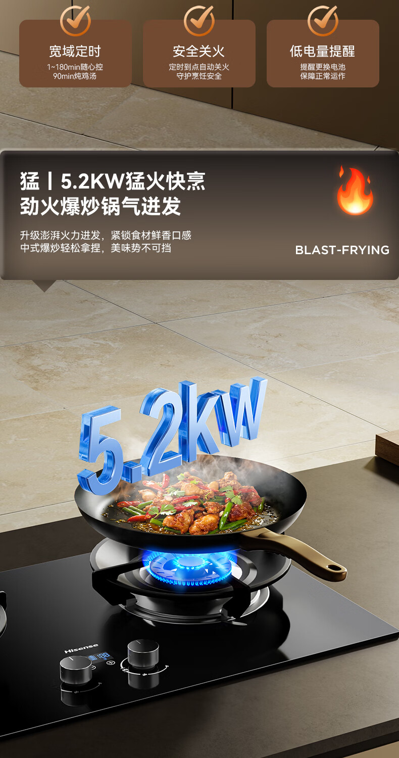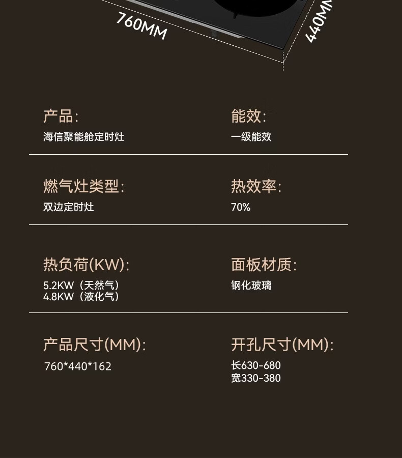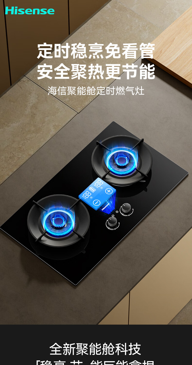 海信(Hisense)燃气灶天然气液化气煤气智能定时双灶 70%热效率5.2KW猛火灶具一级能效炉灶 【双边定时款】760大面板尺寸+加重聚能防风炉架 管道-天然气【上门安装】