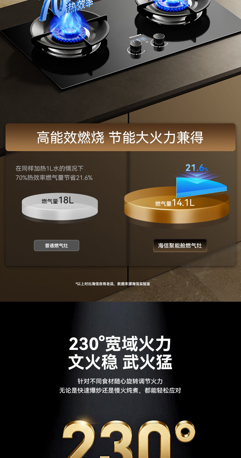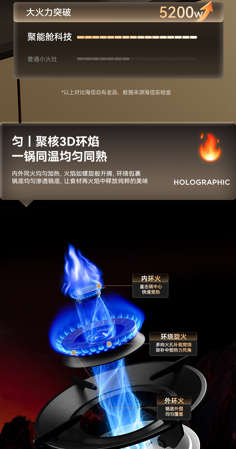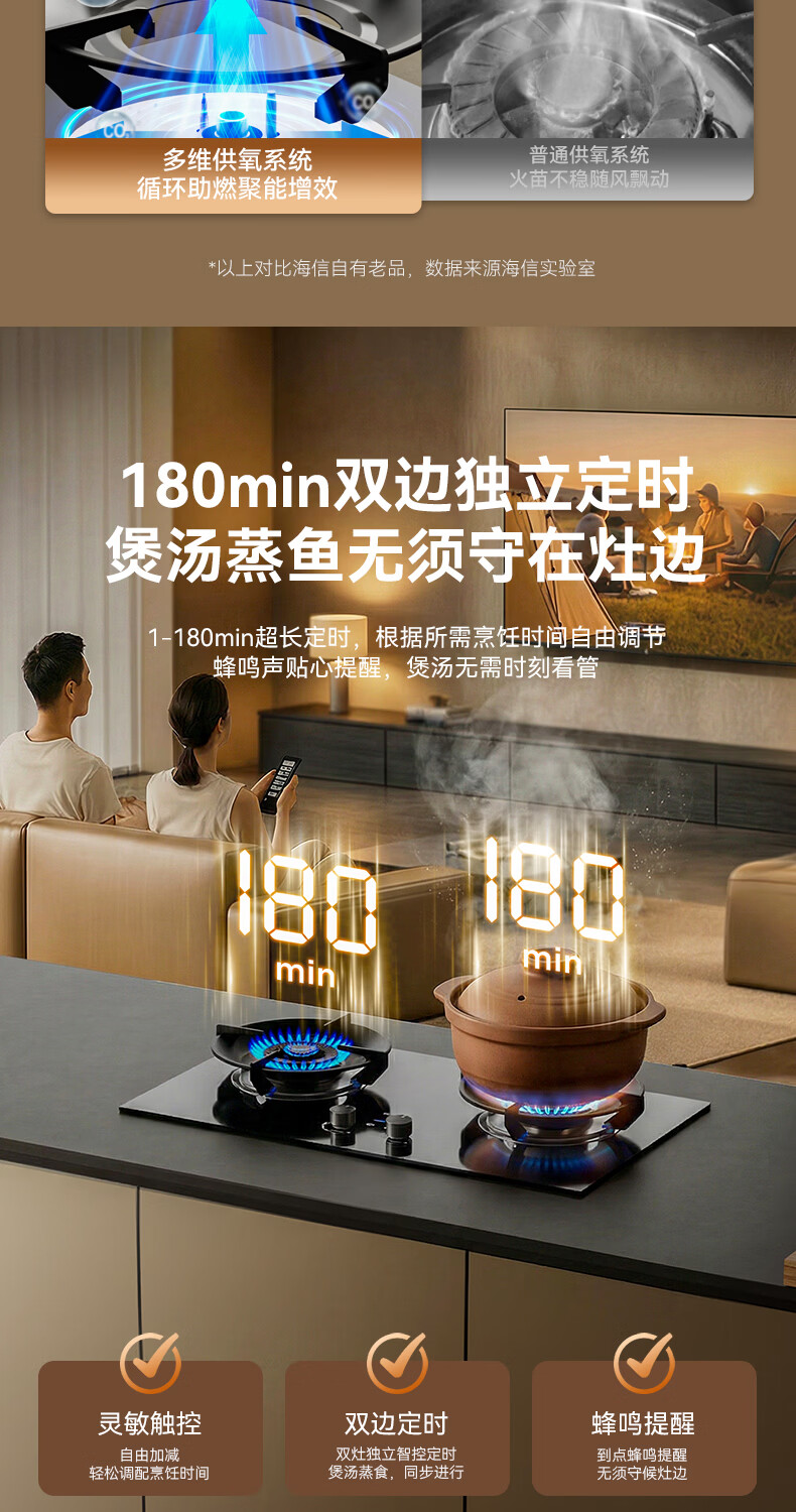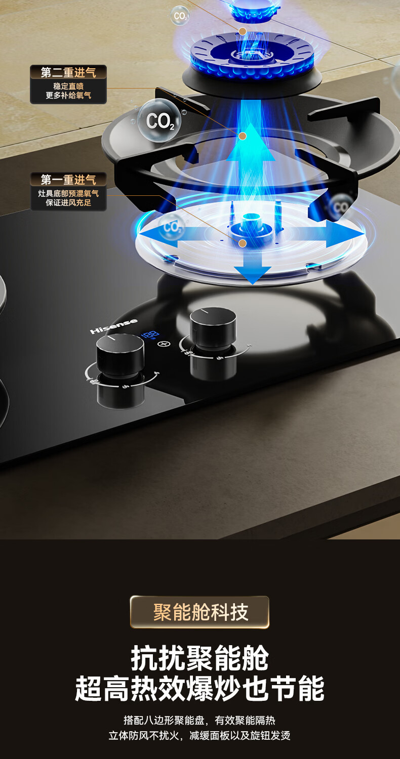 海信(Hisense)燃气灶天然气液化气煤气智能定时双灶 70%热效率5.2KW猛火灶具一级能效炉灶 【双边定时款】760大面板尺寸+加重聚能防风炉架 管道-天然气【上门安装】