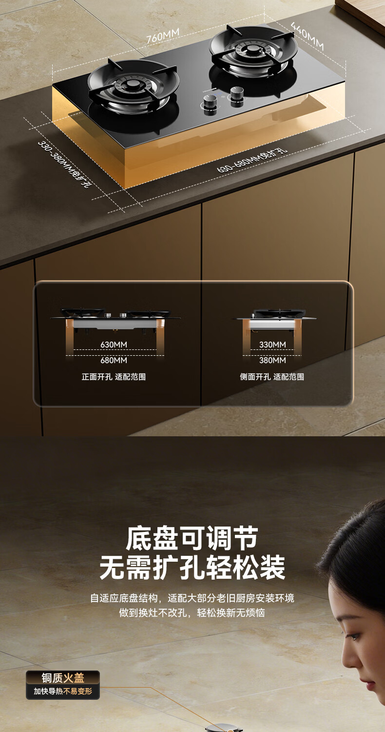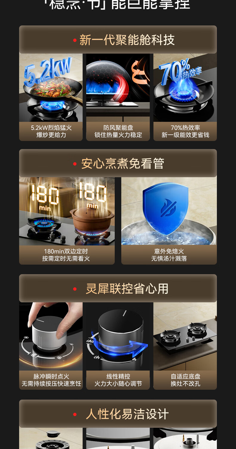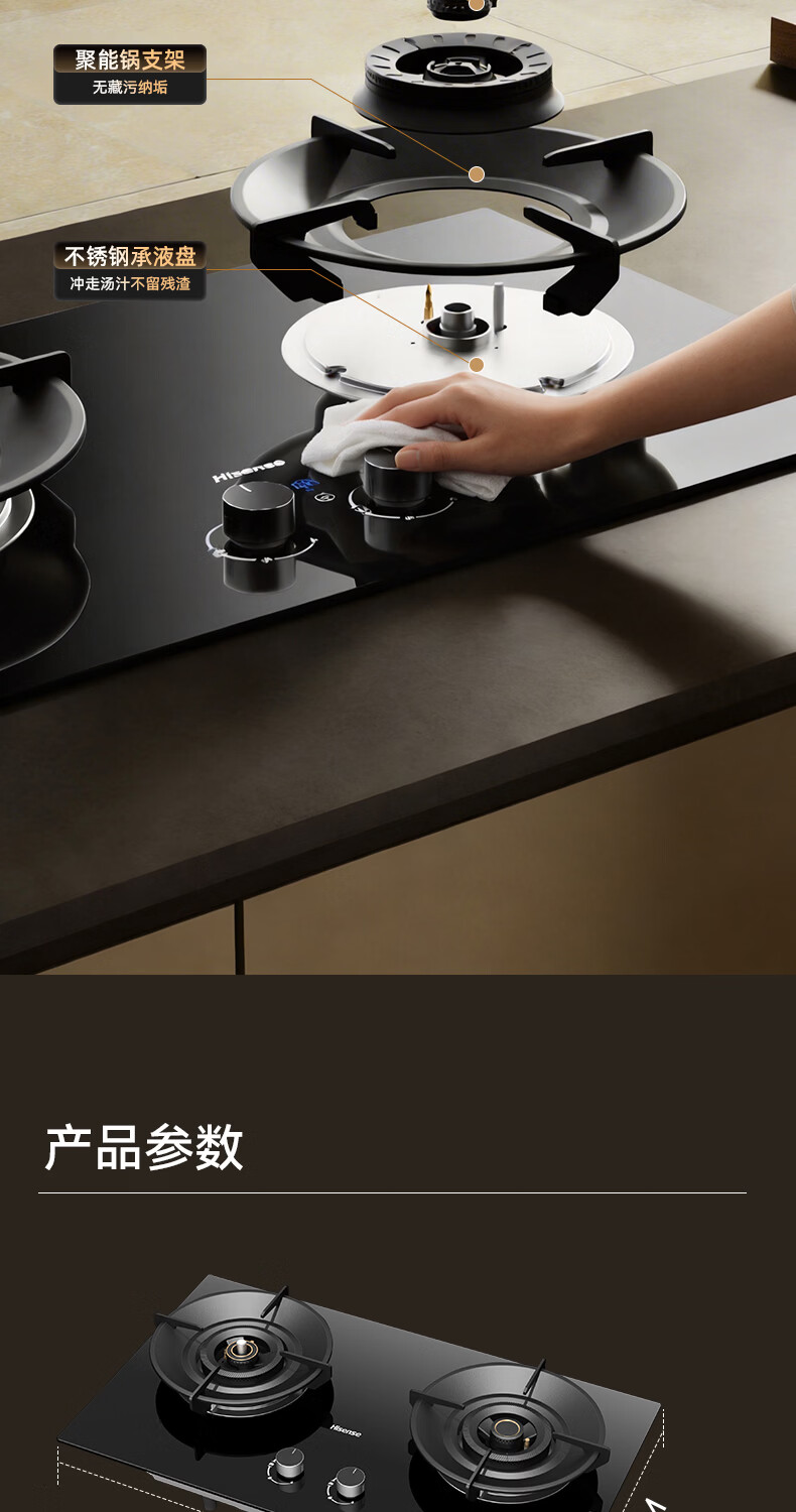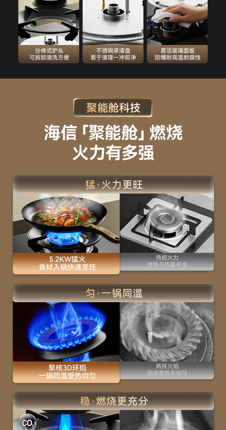 海信(Hisense)燃气灶天然气液化气煤气智能定时双灶 70%热效率5.2KW猛火灶具一级能效炉灶 【双边定时款】760大面板尺寸+加重聚能防风炉架 管道-天然气【上门安装】