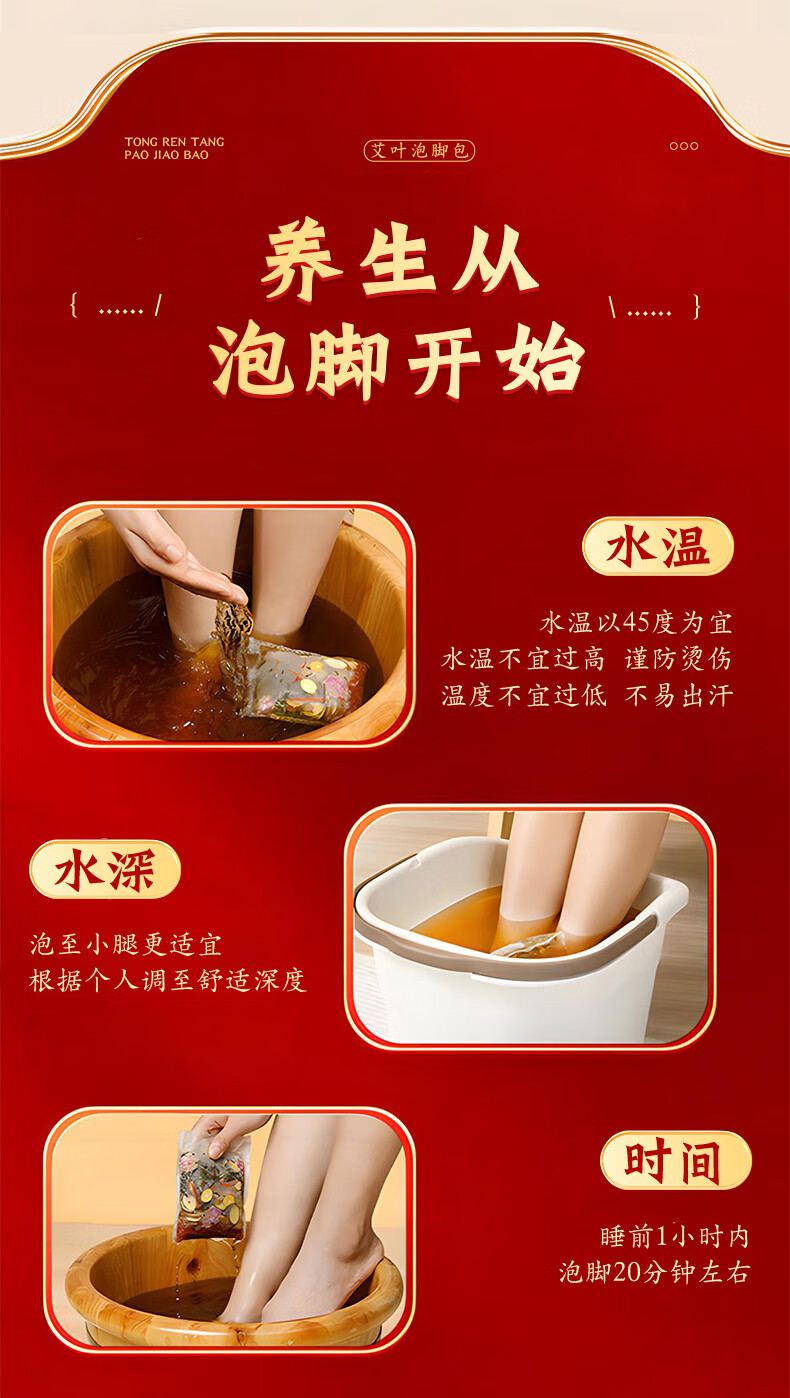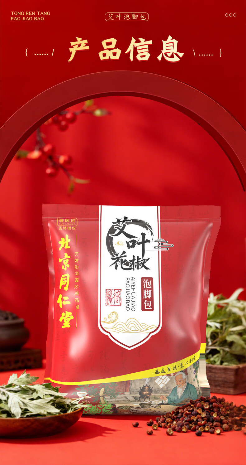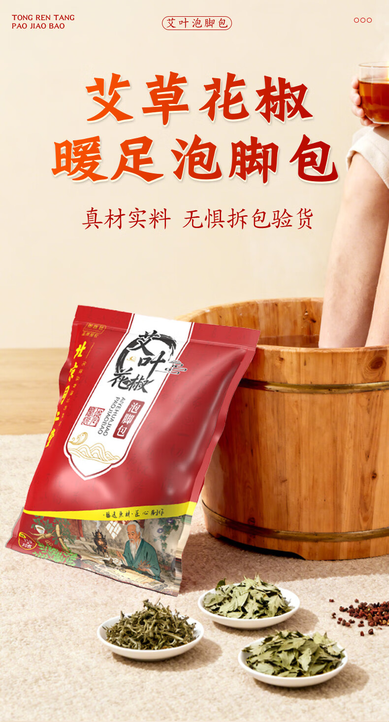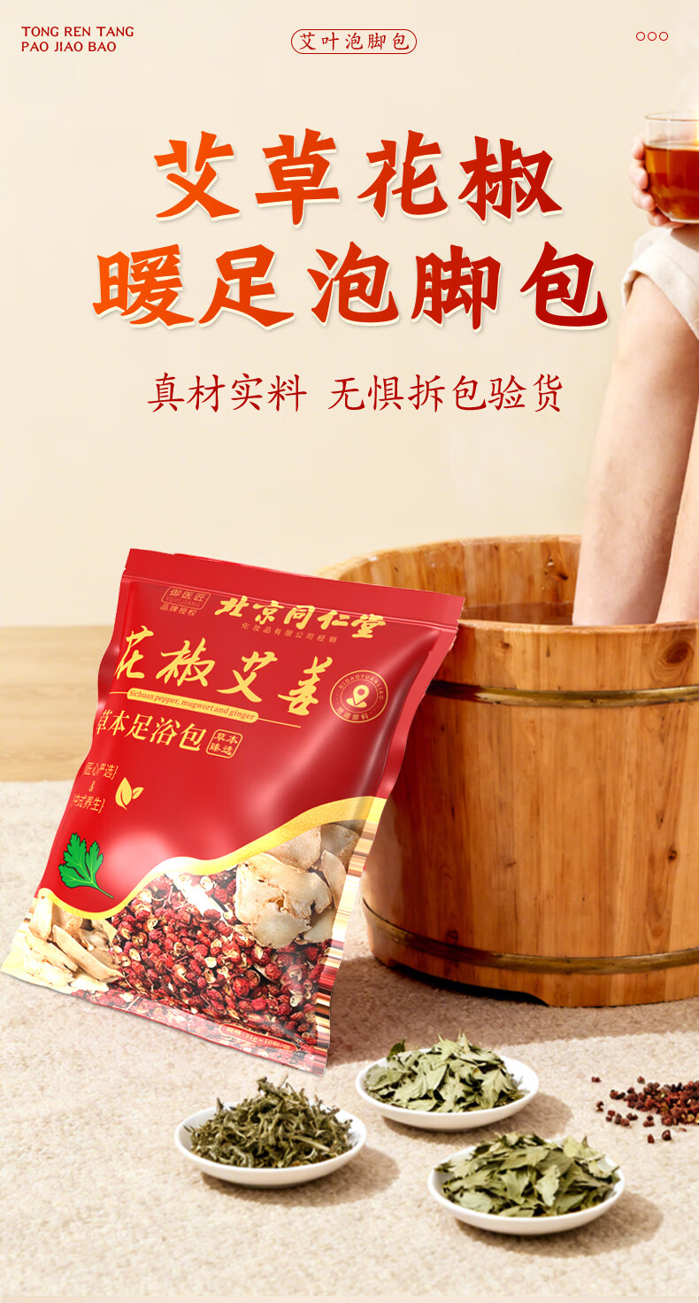 同仁堂(TRT)花椒艾叶生姜泡脚包去湿气排毒助睡眠艾草中药足浴药包 同仁堂艾叶花椒泡脚包310g*5