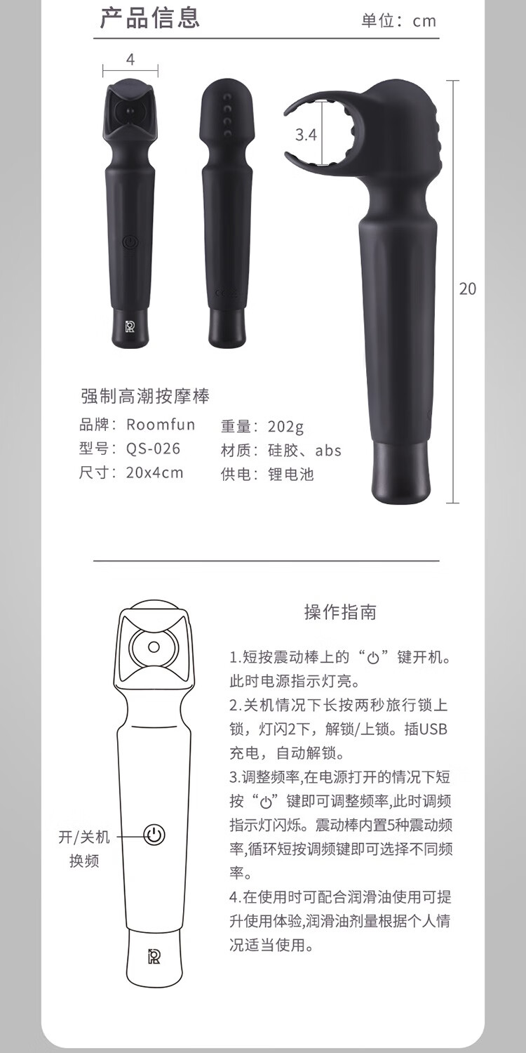 Roomfun房趣男用震动棒阴茎按摩器龟头训练器av棒情趣用品夫妻房事用品 【黑色款】5种模式+送情趣护理包