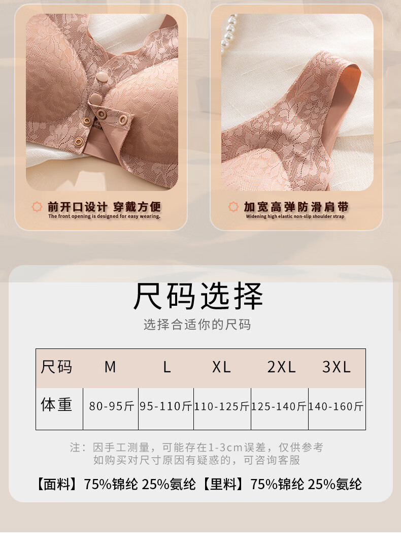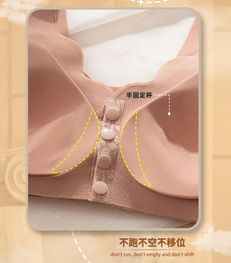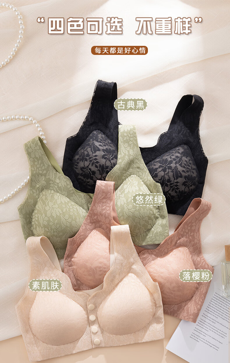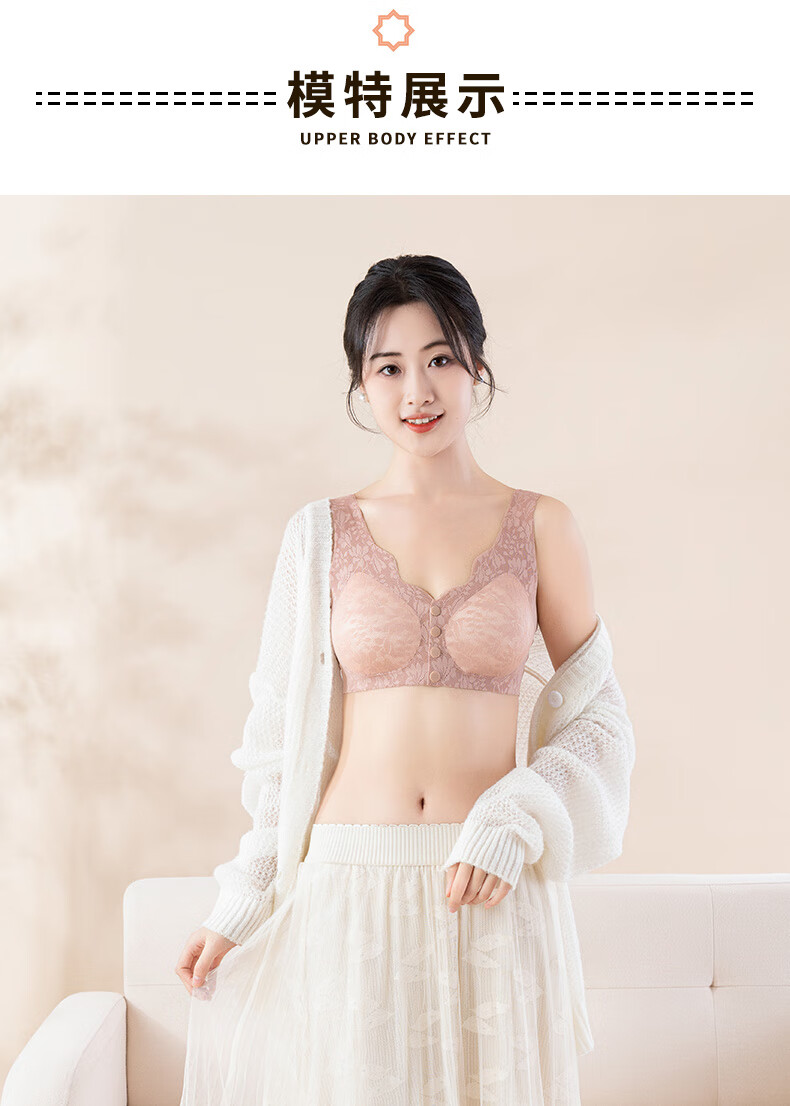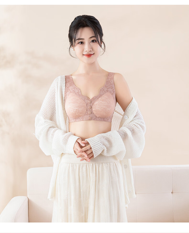 ROVO四扣前开扣哺乳内衣聚拢透气经典蕾丝波边领口半固定杯孕妇文胸罩 豆沙红+肤色 2XL【适用于125-140斤】