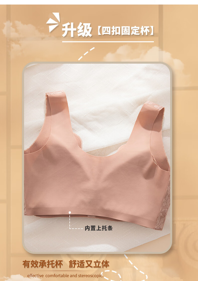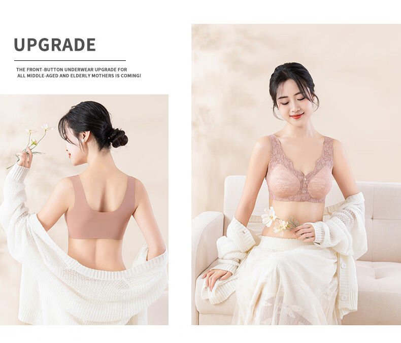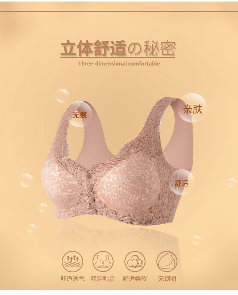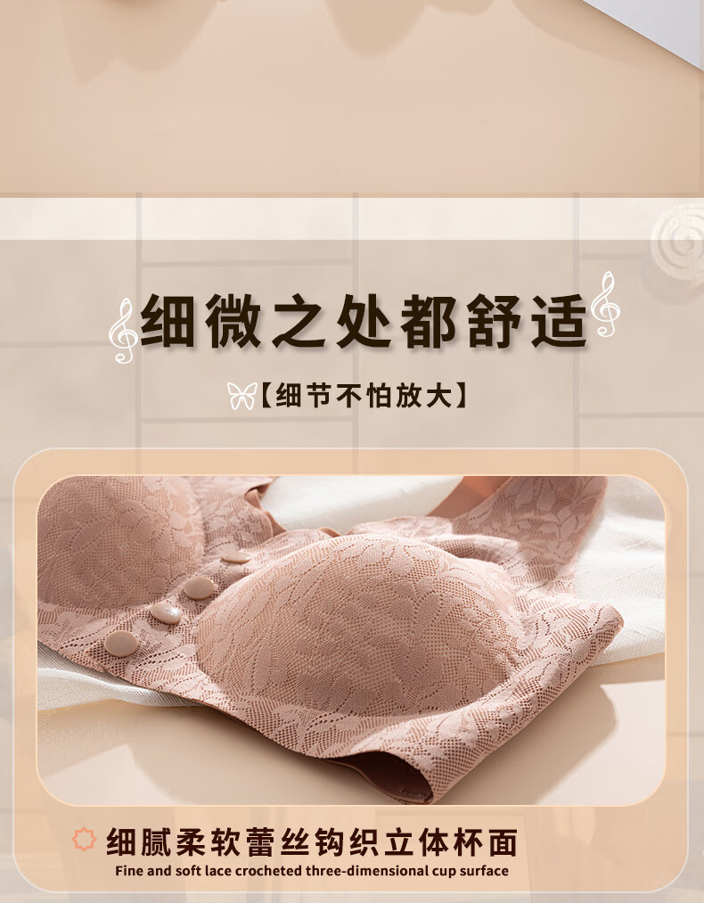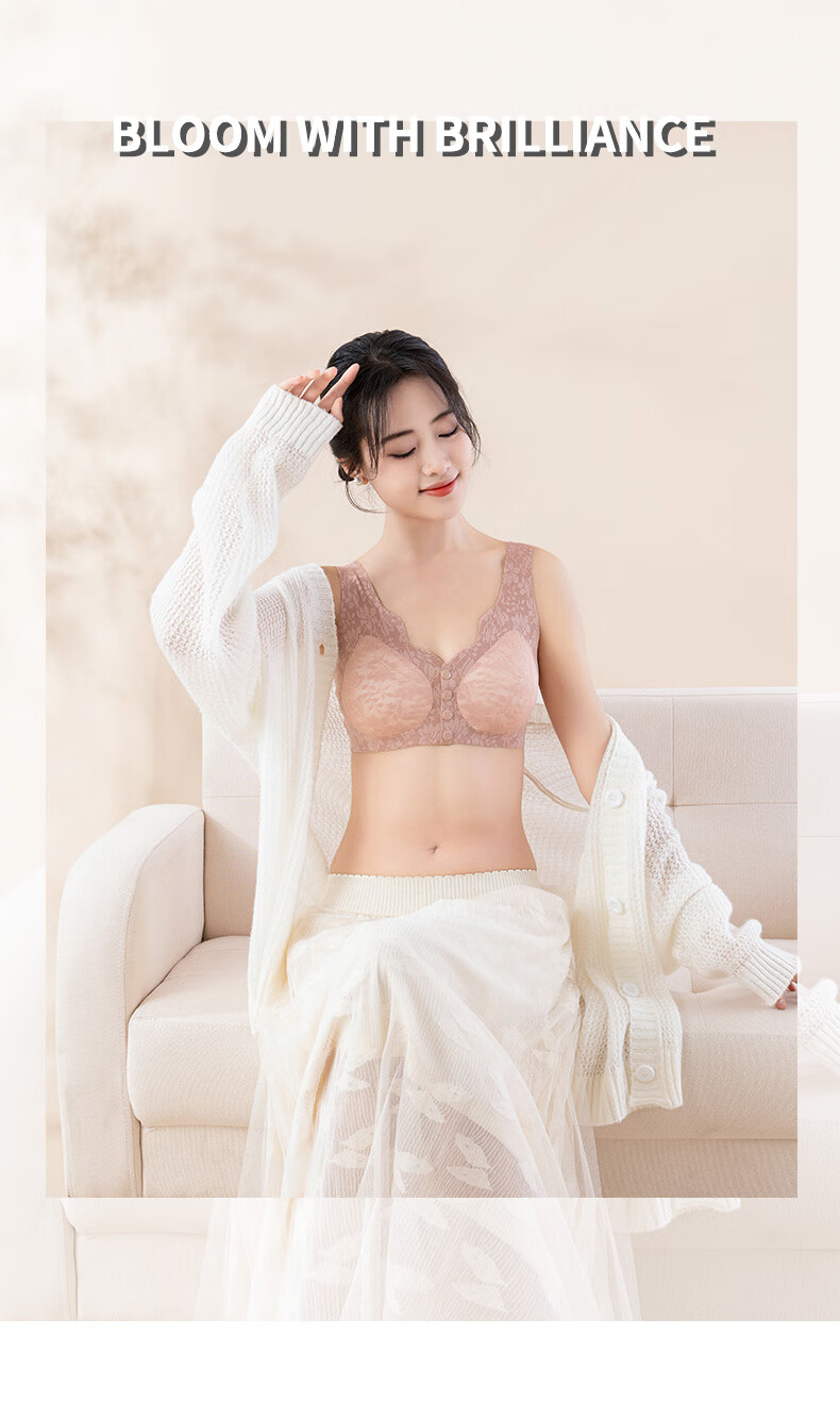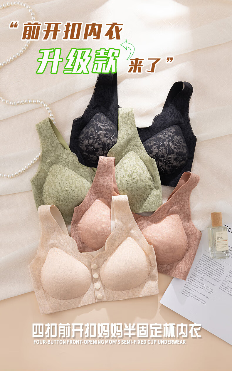 ROVO四扣前开扣哺乳内衣聚拢透气经典蕾丝波边领口半固定杯孕妇文胸罩 豆沙红+肤色 2XL【适用于125-140斤】