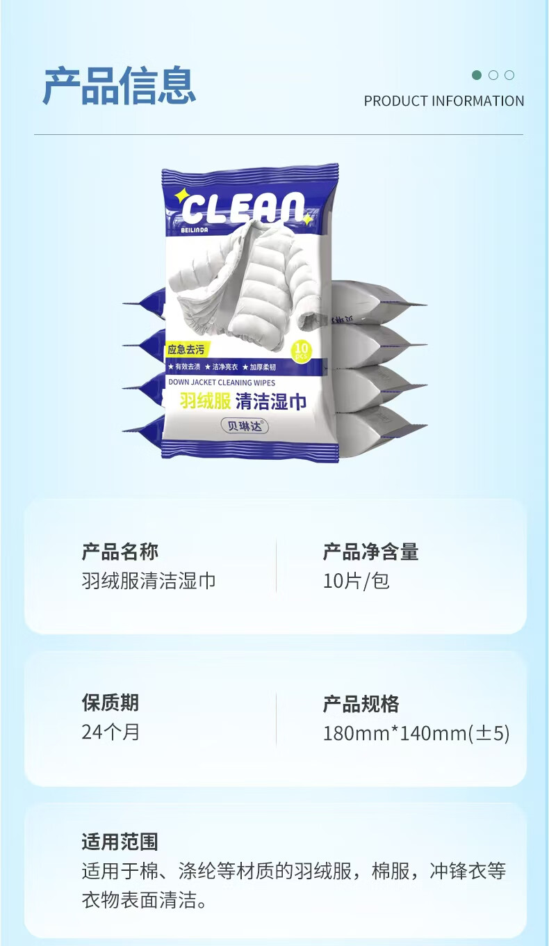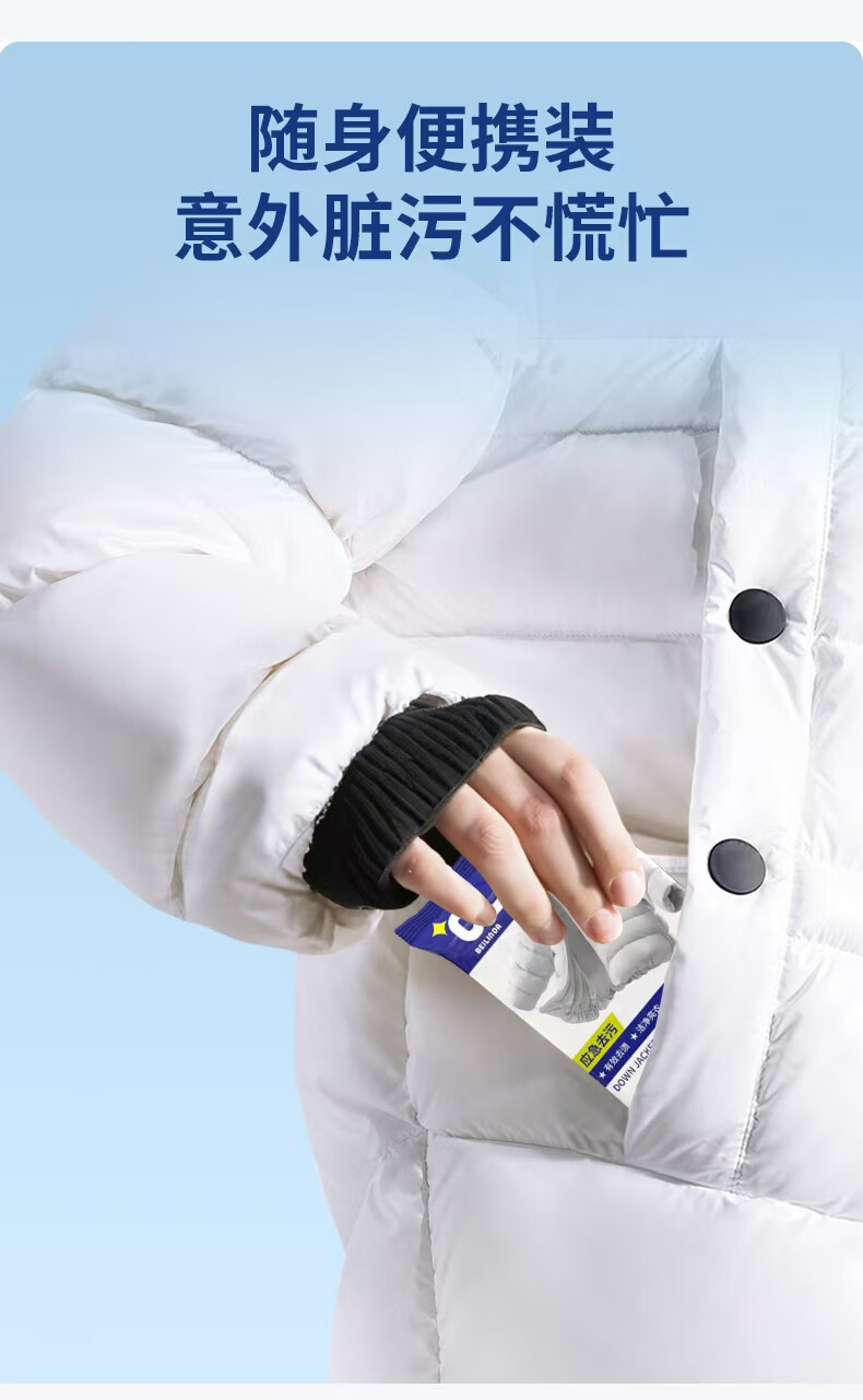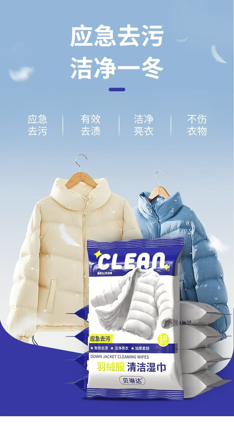 贝琳达羽绒服清洁湿巾应急去渍免洗去油污清洁小包装衣物去渍湿巾免水洗 10抽 10包 【应急去污】羽绒服便携清洁湿巾